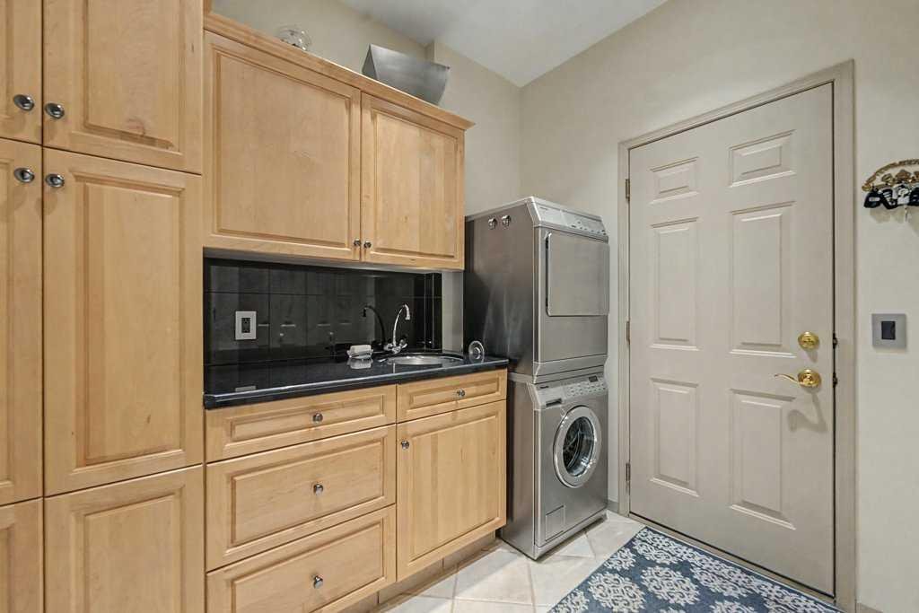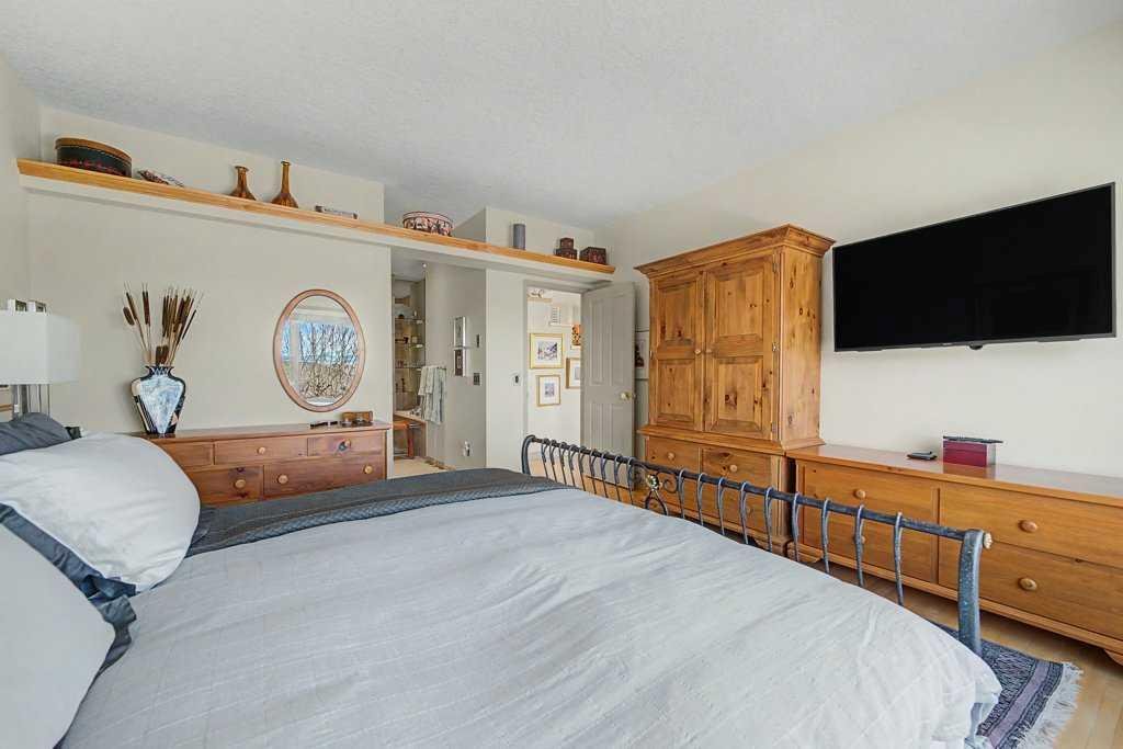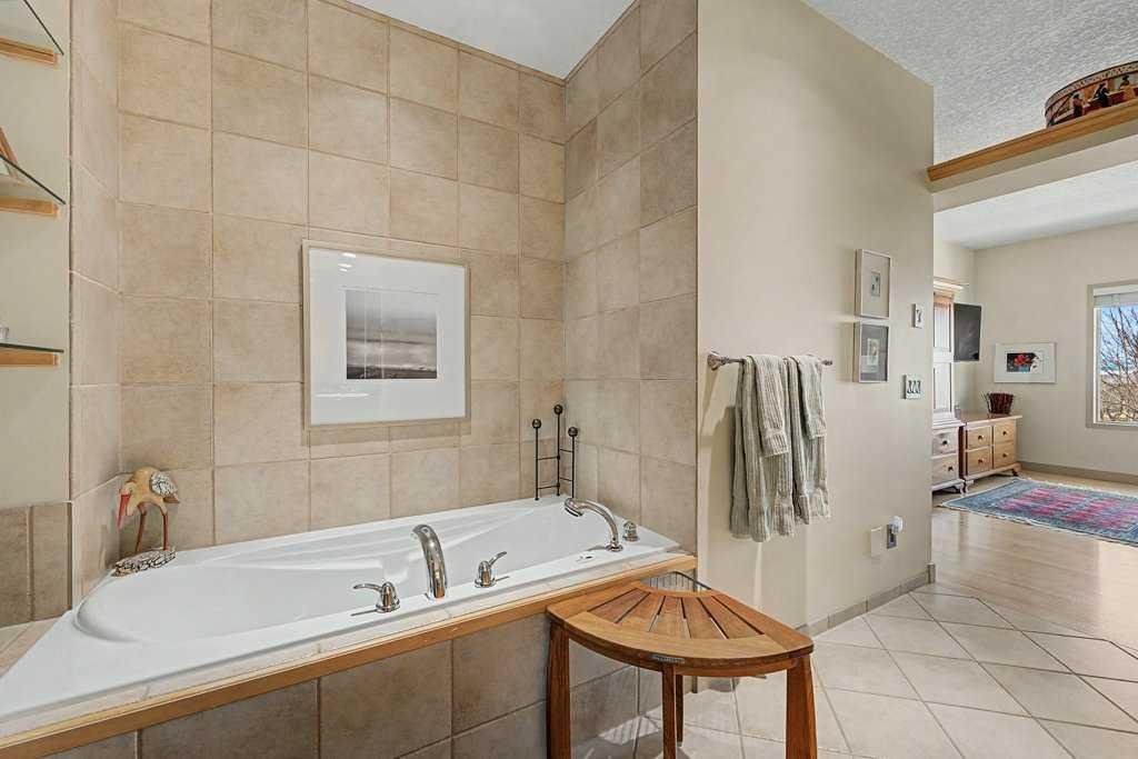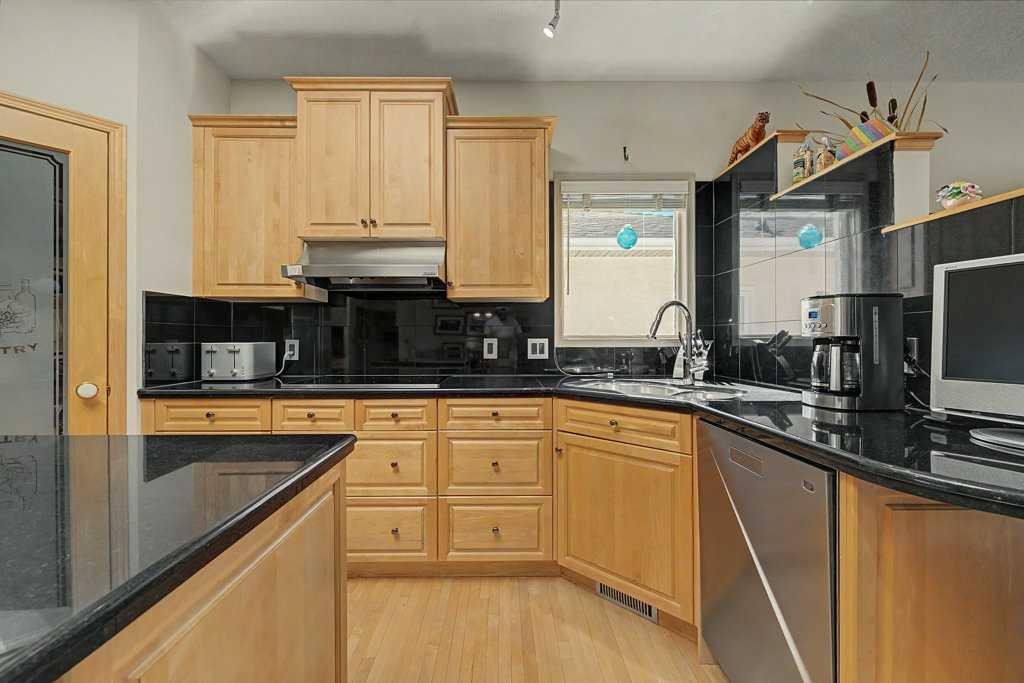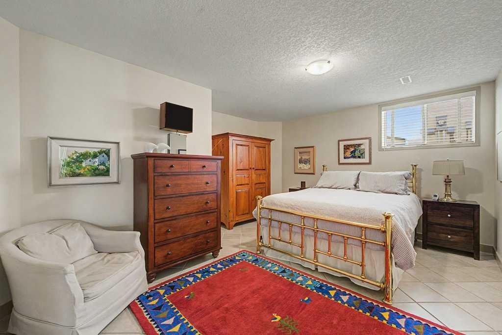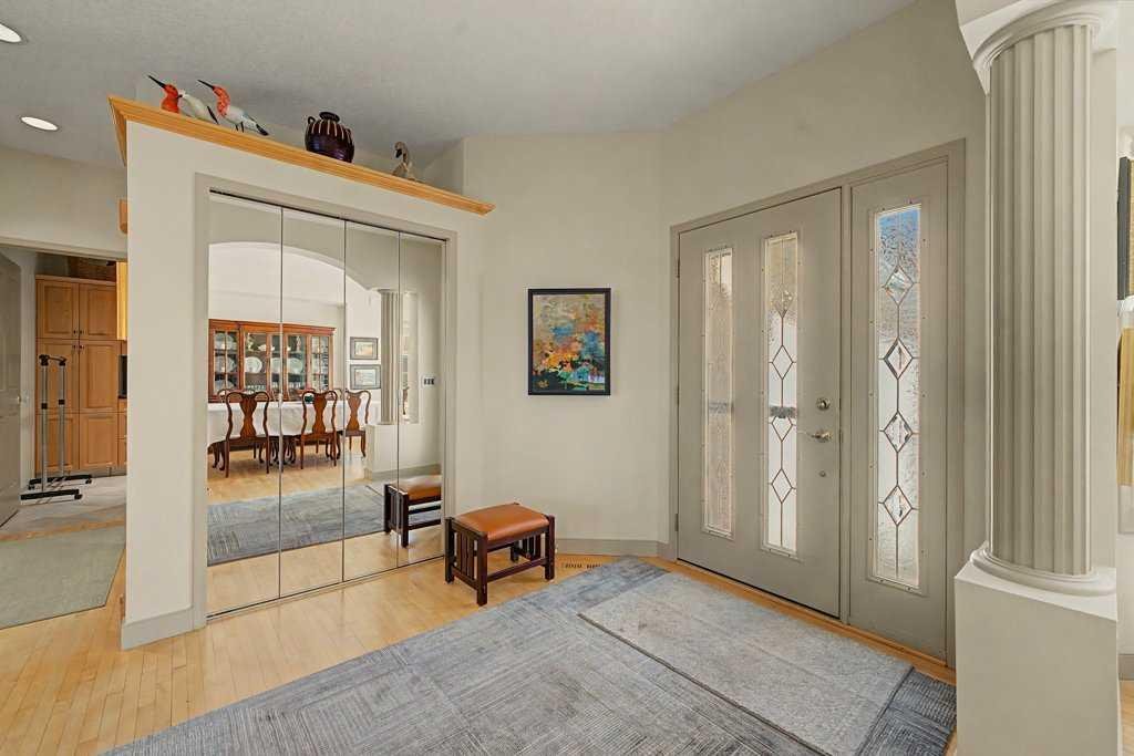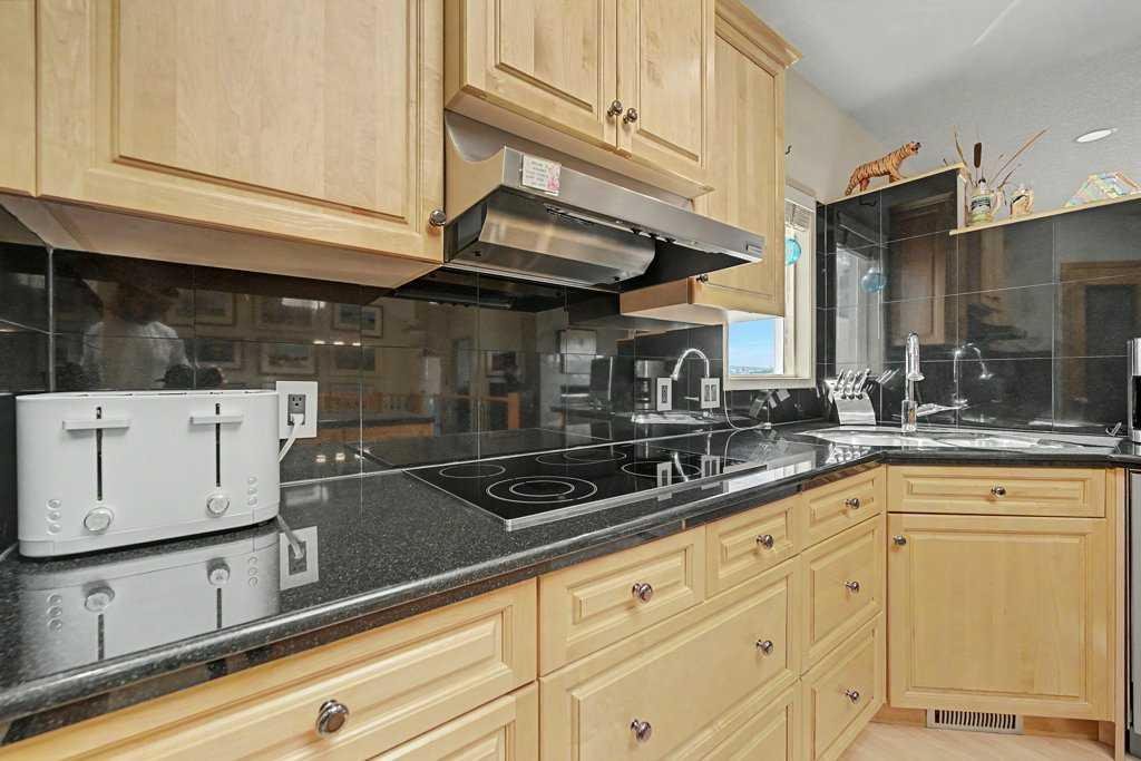 ABSOLUTELY GORGEOUS WALKOUT VILLA! ONE OF THE LARGEST FLOORPLANS! Is it time to throw away the snow shovel and the lawnmower? MORE FUN, LESS WORK! Do you love GOLF or TRAVELLING more than outside chores? How about a WALKOUT BUNGALOW VILLA with a FINISHED BASEMENT and GORGEOUS VIEWS, located very close to the ‘Links of Gleneagles’? Come see 18 Eagleview Gate! Impeccable from start to finish! PARK YOUR CAR(S) IN YOUR INSULATED DOUBLE GARAGE (with RADIANT HEATER)! From the garage, step into the clean and tidy ‘mudroom’ (which doubles as a laundry room with built-in cabinets and sink). Nice curb appeal with BAY WINDOW & BRICK DETAILING. At the front entry, your guests will be greeted by a decorative front door with matching sidelight! Plenty of room in the foyer to welcome a whole group at once! They’ll step in the door and say ‘Wow’! This villa is full of natural light, thanks to abundant windows! The home immediately feels elegant because the DINING ROOM is exactly that – an ELEGANT SPACE for all your special family gatherings! This villa is very well-appointed! EXTENSIVE HARDWOOD FLOORING and MANY UPGRADES and thoughtful touches! Find your way to the kitchen. You will love this KITCHEN WITH ADJOINING EATING AREA! The skylight gives the kitchen a view to the sunshine (or stars) above! Beautiful cabinetry! SOLID MAPLE DOORS (and even solid maple end panels)! BUILT-IN WINE RACK AND BUILT-IN APPLIANCES! No more reaching down to floor level to open the oven (or into cabinetry, thanks to plenty of pull-out storage in lower cabinets). Shiny STAINLESS-STEEL appliances (SUB-ZERO and MIELE) and shimmering STONE COUNTERTOPS! The microwave doubles as a second oven so you can COOK TURKEY AND HAM AT THE SAME TIME! After dinner, sit down with your guests in a LIVING ROOM WITH A VIEW (and a GREAT FIREPLACE)! THE ROCKY MOUNTAINS and the SUNSETS ARE SPECTACULAR! STAY COMFORTABLE any time of year with 2 GAS FIREPLACES, SLAB HEAT IN THE BASEMENT, AND CENTRAL AIR CONDITIONING! Step out to the back deck (with a gas line) for a summer BBQ and enjoy the sunny SW exposure! MAPLE & IRON railing will lead down to the lower WALKOUT LEVEL, where you will find another spacious bedroom, a hobby room (with countertop and plenty of upper storage cabinets), a full bathroom (with shower tile to the ceiling), and a rec room with a corner fireplace (brick-faced with matching maple mantle)! SLAB HEAT keeps the basement temperature very consistent and very comfortable on the feet! The lower patio is enclosed (by aluminum railing with glass inserts, and a little gate to take the puppy or the grandkids for a walk). Fantastic basement bar (with a maple-paneled SUB-ZERO bar fridge, more wine storage, and display cabinets)! At the end of a busy day, enjoy SOAKING IN YOUR SPA-LIKE ENSUITE BATHROOM! The ensuite shower is fully tiled, with high gauge glass. The AIR-JET TUB will soothe your achy muscles! Double sinks, and a walk-in closet. A perfect retirement villa!