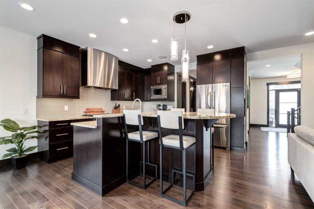 With 3,317 SF of beautifully designed living space, a rare OVERSIZED double garage (28′ x 22′) and situated on the largest lot on Murmansk Way, this home is sure to impress! This exceptional custom home offers 2,507 SF above grade plus 810 SF in the fully developed basement, delivering a rare combination of scale, craftsmanship, and modern design updates. Built in 2010 with over $100,000 in custom upgrades, the home showcases 10-foot ceilings on the main and upper floors and 9-foot ceilings in the basement, creating an airy, open feel rarely found in comparable homes. The main level is designed for both elevated everyday living and entertaining. Custom built-ins including a dedicated office workspace, front entry bench, and feature fireplace wall add both sophistication and practicality. At the heart of the home is a chef-inspired kitchen featuring a Viking 6-burner dual-fuel range, custom hood fan, Miele dishwasher, and extensive cabinetry, all flowing seamlessly into the dining and living spaces. From here, step outside to the oversized deck overlooking the backyard, perfect for summer gatherings and outdoor living. A mud room with built-ins and powder room complete this space. Upstairs, the home continues to impress with a luxurious primary retreat with walk-in closet and a spa-inspired ensuite featuring in-floor heated flooring, dual vanities, soaker tub and separate shower. A spacious laundry room, 2 additional and generously scaled guestrooms which share a 5 piece bathroom are also found on this level. The finished basement comes complete with a family room, den, 4th bedroom and 4 piece bathroom. A built-in Tannoy speaker system provides integrated sound throughout the main level, primary suite, ensuite, and basement. Recent design improvements include a 2022 interior refresh by Ana Interiors, introducing updated paint, lighting, wallpaper and a beautifully reimagined powder room that elevates the home’s modern aesthetic. Mechanical upgrades include a tankless hot water system and Kinetico water system, while professional furnace, duct, and carpet cleaning was completed in March 2026 and ensures the home is move-in ready and demonstrates continued pride of ownership. Within walking distance to several playgrounds, minutes to an array of private and public schools, short driving/cycling distance to Marda Loop, North Glenmore Park and Sandy Beach. Book your showing today!