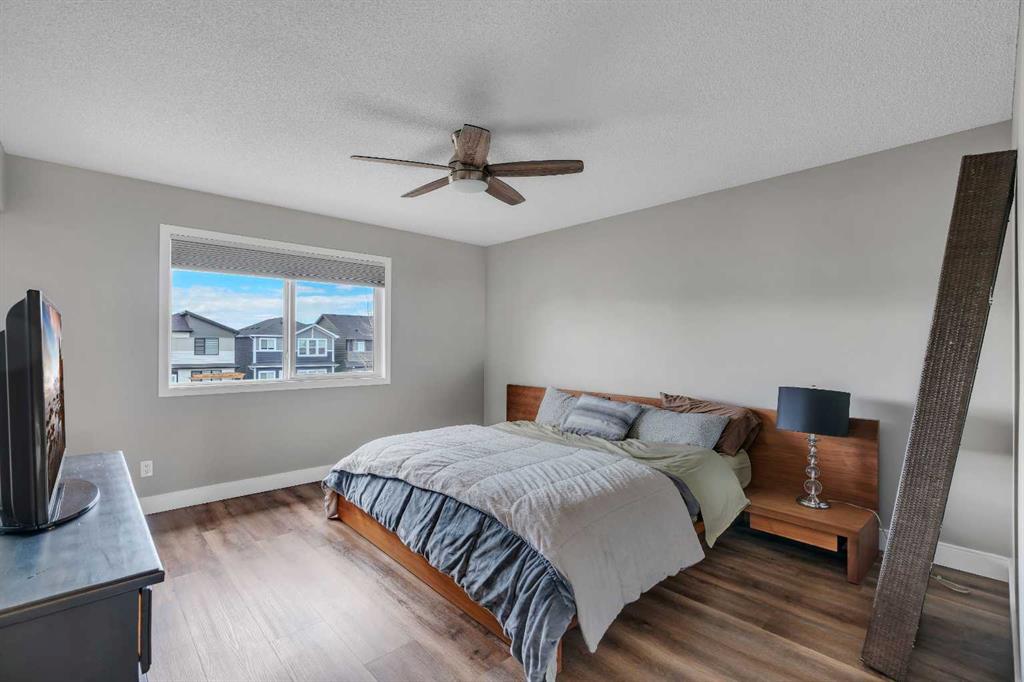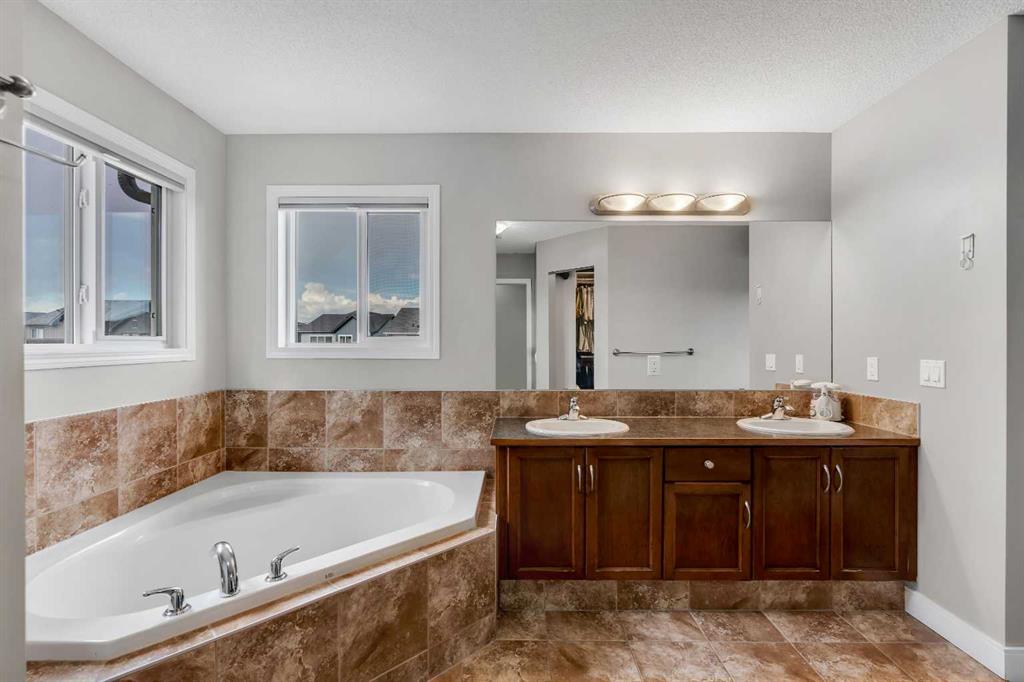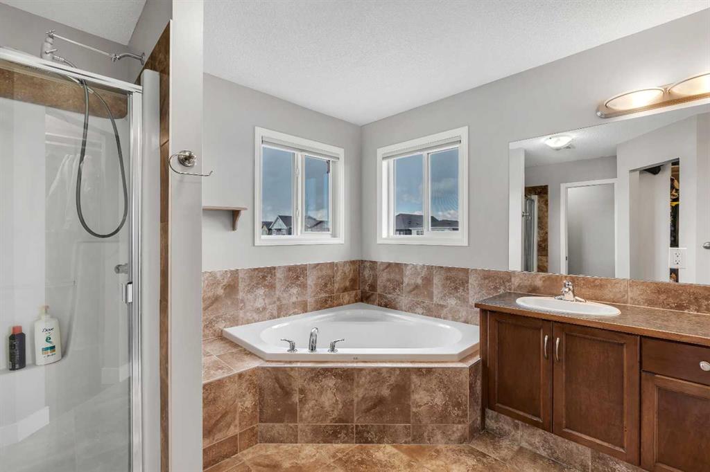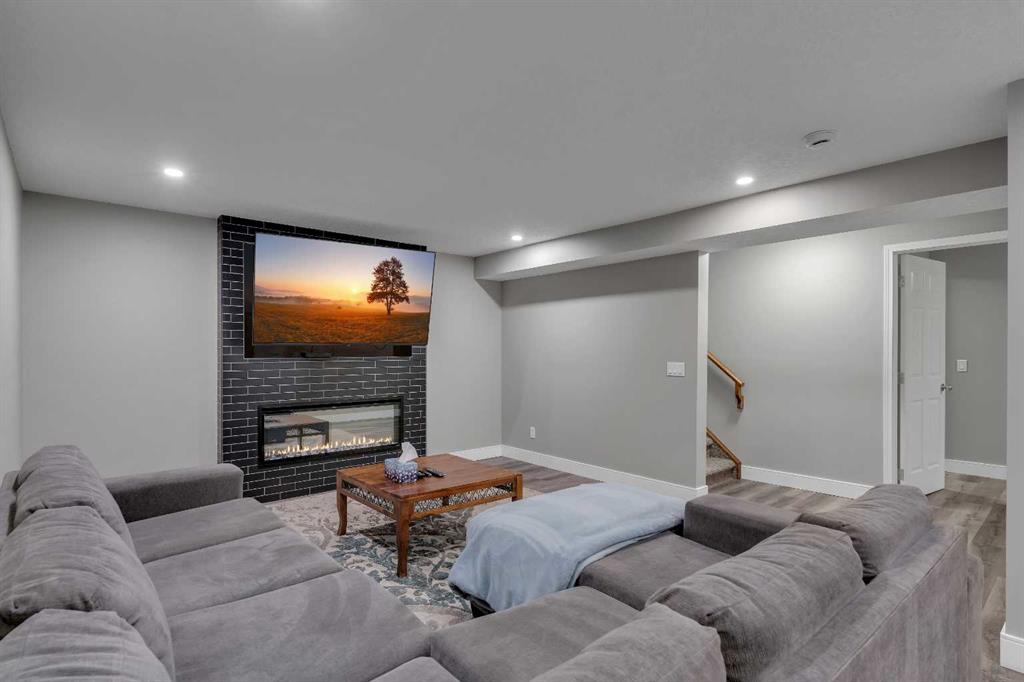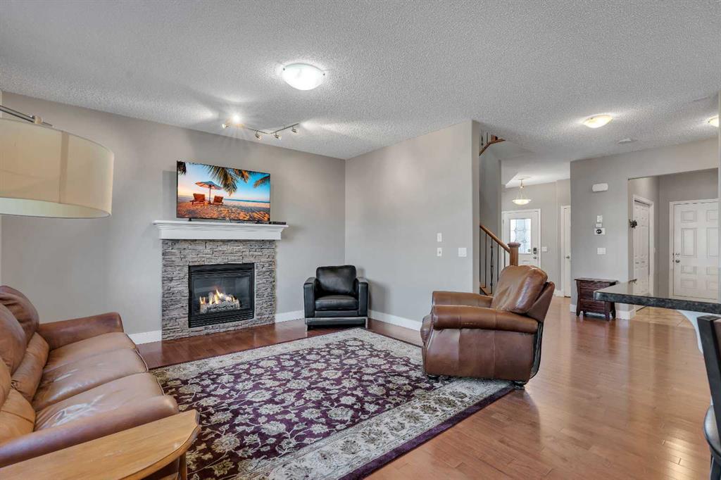 Welcome to 18 Silverado Skies Drive SW. Backing directly onto a green space and a walking path with, this fully updated Silverado home offers over 2,300 sq ft of developed living space with 4 bedrooms, a main floor office, and 3.5 bathrooms. The main floor is built for both everyday living and entertaining, featuring an open-concept layout with durable hardwood flooring throughout and a cozy gas fireplace anchoring the living room. The kitchen has been tastefully refreshed with crisp white cabinetry, modern black hardware, granite countertops, a central island with eating bar, corner pantry, and stainless steel appliances including a dual oven. A dedicated main floor office and laundry add function without sacrificing space. Upstairs, the vaulted bonus room creates an impressive second living area filled with natural light. The primary suite is spacious and well-designed, featuring a walk-in closet with added custom shelving and a 5-piece ensuite complete with dual sinks, a corner soaker tub, separate shower, and a private water closet. Two additional bedrooms and a full 4-piece bath and laundry room complete the upper level that has recently upgraded luxury vinyl plank flooring throughout. The fully developed basement (2020) expands your living space with a dry bar, electric fireplace, custom built-ins, a large bedroom with legal egress window, and a smart pass-through bathroom with heated floors. This home has seen major exterior and mechanical upgrades, including Hardie siding (2021), all new windows, and a hot water tank (2020). Out back, enjoy an expanded deck overlooking uninterrupted green space and direct access to walking paths. Finished with a double attached garage and located close to schools, parks, and shopping.