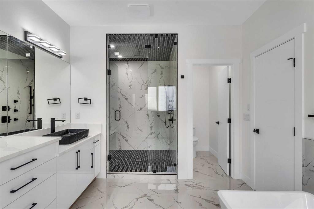 NEWLY BUILT!! 2-BED LEGAL BASEMENT SUITE!! SEPARATE ENTRANCE!! SEPARATE LAUNDRY!! OVER 4550 SQFT OF LIVING SPACE!! 7 BEDROOMS + 5 FULL BATHS!! TRIPLE ATTACHED GARAGE!! MAIN FLOOR BEDROOM & FULL BATH!! Step into this stunning new home offering luxury, space, and functionality in every corner. The main floor welcomes you with a spacious living area featuring a cozy fireplace, a beautiful kitchen with a large island, built-in appliances, and an additional spice kitchen for extra convenience. Abundant cabinetry and access to the backyard deck make it perfect for everyday living and entertaining. A main floor bedroom with a 3-piece bath adds flexibility as it can be used as office as well. Upstairs features 4 BEDROOMS and 3 FULL BATHS, including a PRIMARY BEDROOM with a 5PC ENSUITE BATH and walk-in closet. Two bedrooms share a stylish Jack & Jill 5PC BATH, while the fourth bedroom enjoys 4PC BATH. A bonus family room and open-to-below layout complete the upper level, along with laundry on the same floor for convenience. The LEGAL SUITE BASEMENT offers a SEPARATE ENTRANCE, 2 bedrooms, a 4-piece bath, a full kitchen, and a spacious rec room with ample storage, Laundry as well. Located close to Chestermere Lake, the Canal, schools, and shopping, this home combines comfort, style, and practicality in one incredible package. DON’T MISS THIS OPPORTUNITY TO OWN A HOME WITH LUXURY, SPACE, AND INCOME POTENTIAL!