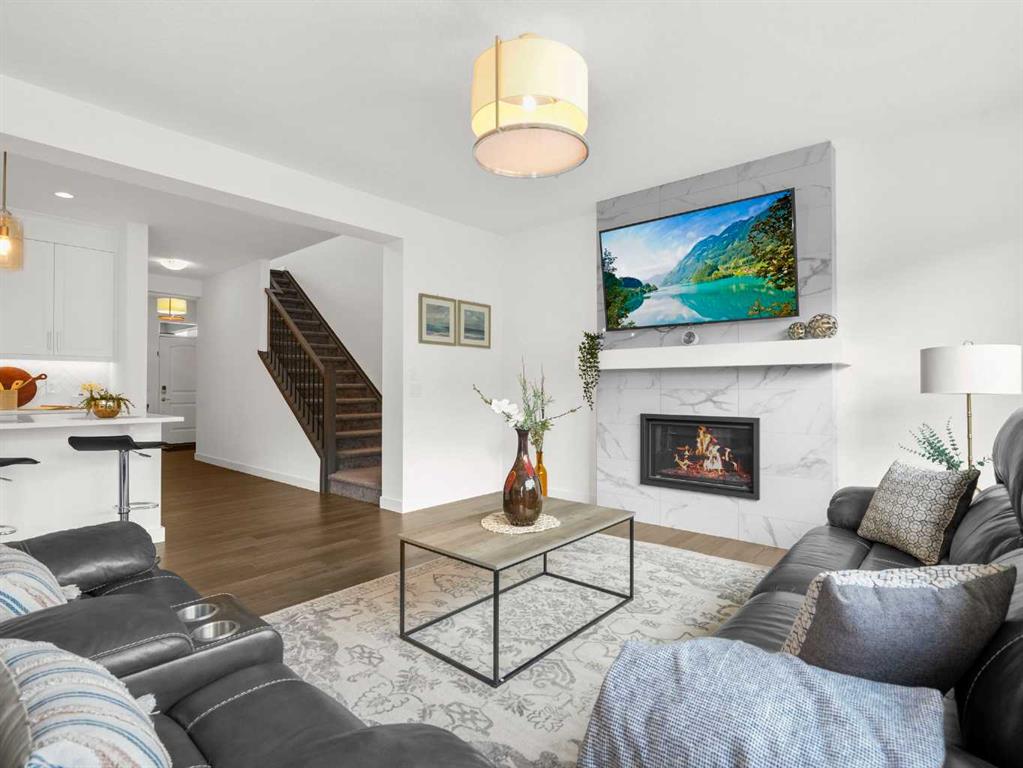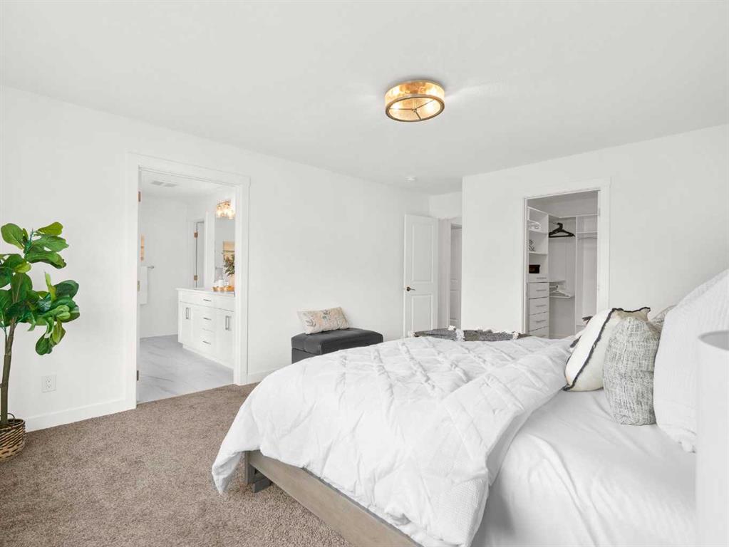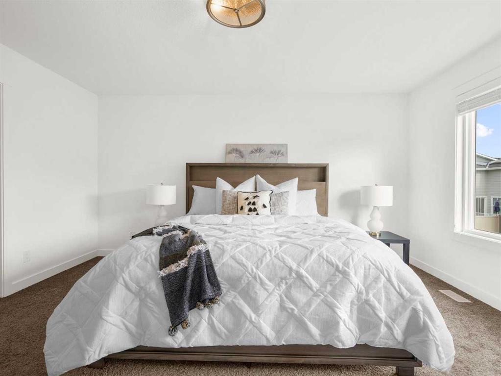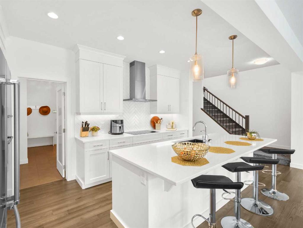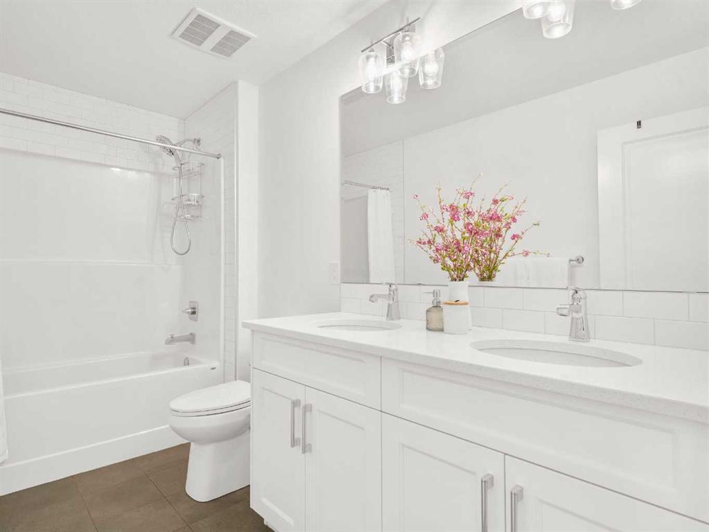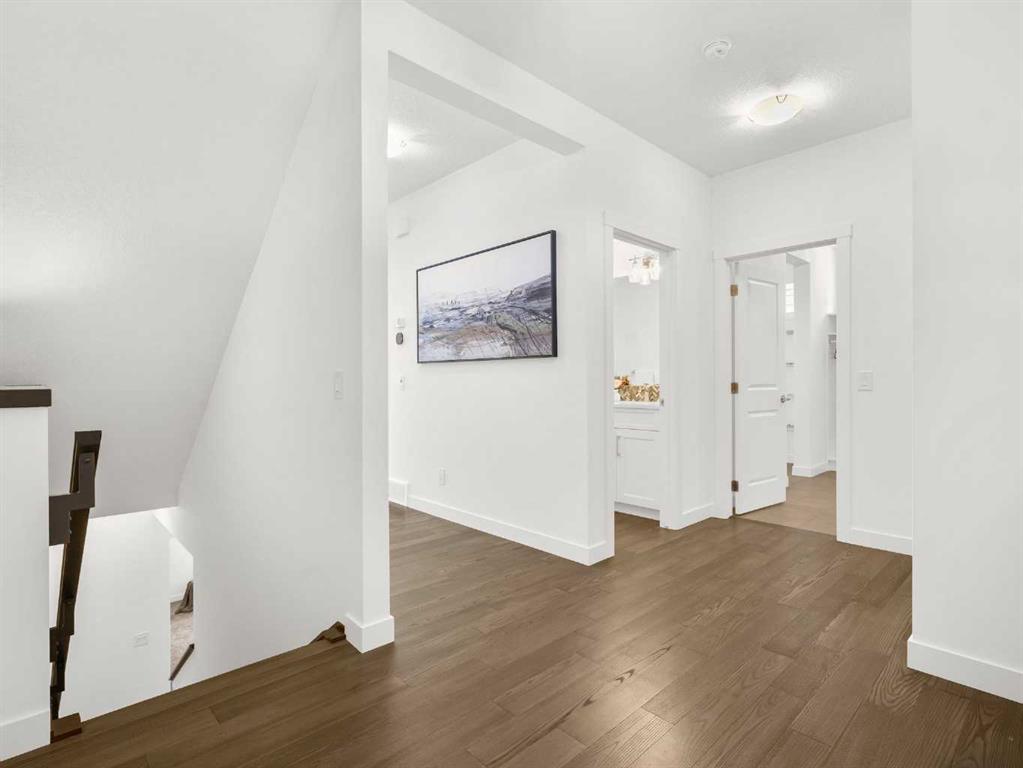 Premiere Video Tour available. Exceptional Value in Sought-After West Springs! This stunning, fully finished detached 2-storey home offers over 2,900 sq ft of thoughtfully designed living space. Located on a quiet cul-de-sac, it features a double attached garage and an additional 2-car driveway, complemented by exceptional curb appeal—from the inviting covered front porch to the refined interior layout with a vinyl deck and concrete patio. Step into the elegant foyer and flow into the expansive great room, anchored by a gas fireplace with floor-to-ceiling tile and a classic mantle—perfect for cozy evenings or entertaining guests. The chef’s gourmet kitchen is a standout, showcasing a walk-through pantry, island with eating bar, and abundant storage and prep space. It seamlessly connects to a bright dining area with direct access to the back patio, making indoor-outdoor living a breeze. A dedicated office, mudroom, and convenient half-bath complete the main floor. Upstairs, retreat to the luxurious executive primary suite, complete with a spa-inspired ensuite featuring a stand-alone soaker tub, elegant walk-in shower, upgraded double vanity, and a generous walk-in closet with upgraded shelving. Three additional bedrooms with upgraded shelving and a stylish full bathroom with double vanity provide comfort and space for a growing family. The 9 feet fully finished basement offers even more room to relax and play, with broad staircases, two spacious bedrooms, a full bathroom, and a large recreation room ideal for movies, games, or a home gym. Located in West Springs, this home is close to top-rated public and private schools including ST. JOAN OF ARC School, scenic parks, boutique shopping, and every amenity your family needs. Don’t miss your chance to own this incredible home—contact us today to schedule a private showing. It won’t last long! Here are extra bonuses: Kinetico Water Filtration Systems, Extended Garage width and Titanium Shelving upgrade throughout