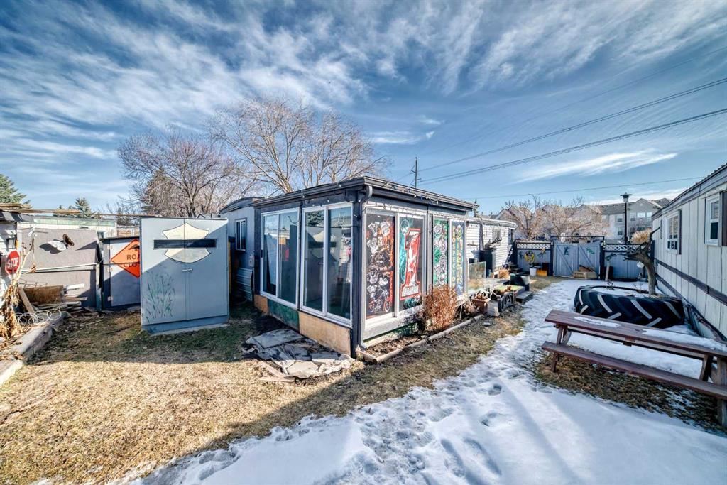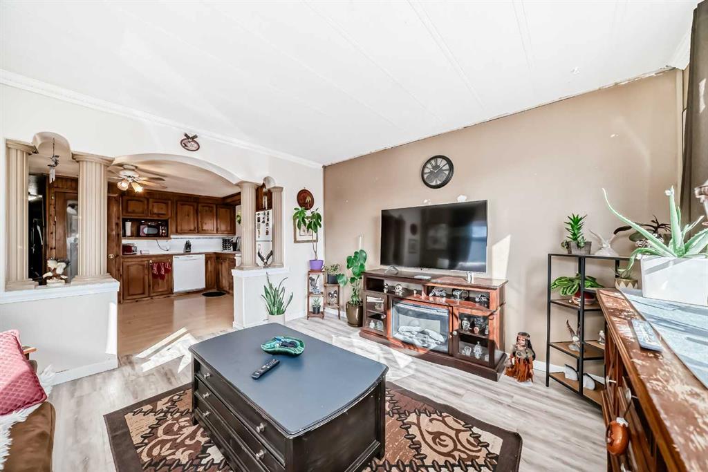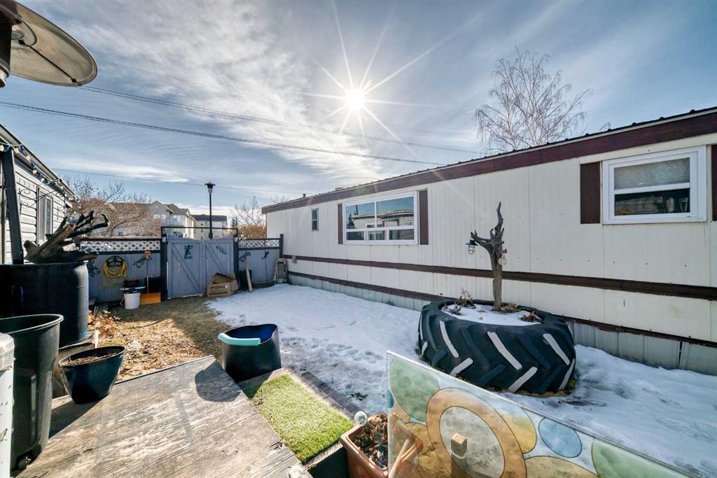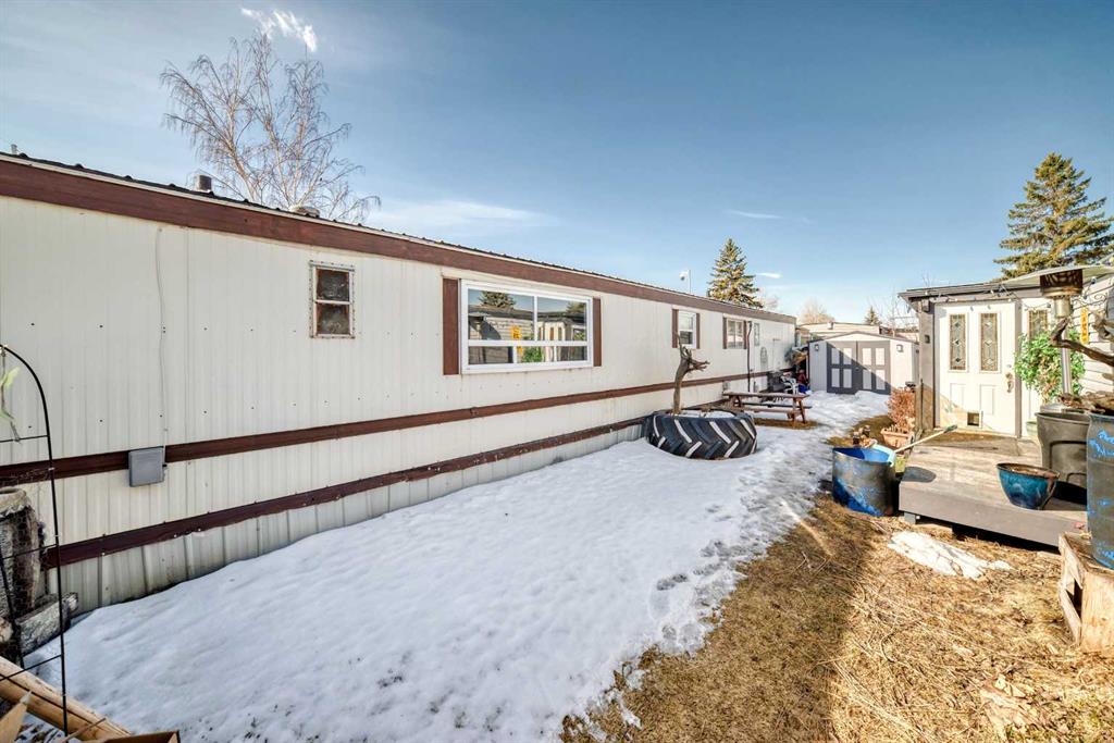 OPEN HOUSE SUNDAY APRIL 12, 2026, 12 pm – 2 pm…,.Built in 1978, well maintained mobile with 1082 sq.ft of living space is perfect for family who loves to entertain, this unit has, bright open floor plan with, 2-Bedrooms, 1 full bathroom, an inviting den area with light coming in during the day (a room by the back door). Large living room and kitchen with a dining area, plenty of cupboards, counter top space and storage. Vinyl windows (2021), well insulated for lower utility costs. South facing yard for lots of sun. Mountview is a clean well managed mobile home park, lot fee includes water, sewer, trash pick-up. New hot water tank 2025, metal roof, furnace redone 2023, new washer & dryer (2023). Great location no neighbors across, close to Eliston Park, bus rapid transit to downtown Calgary, Stoney Trail ring road, East Hills shopping centre with Costco, Walmart, Cineplex Cinema, all amenities. Two parking stalls and lots of street parking very close. Possession negotiable, well priced to sell, call today to view