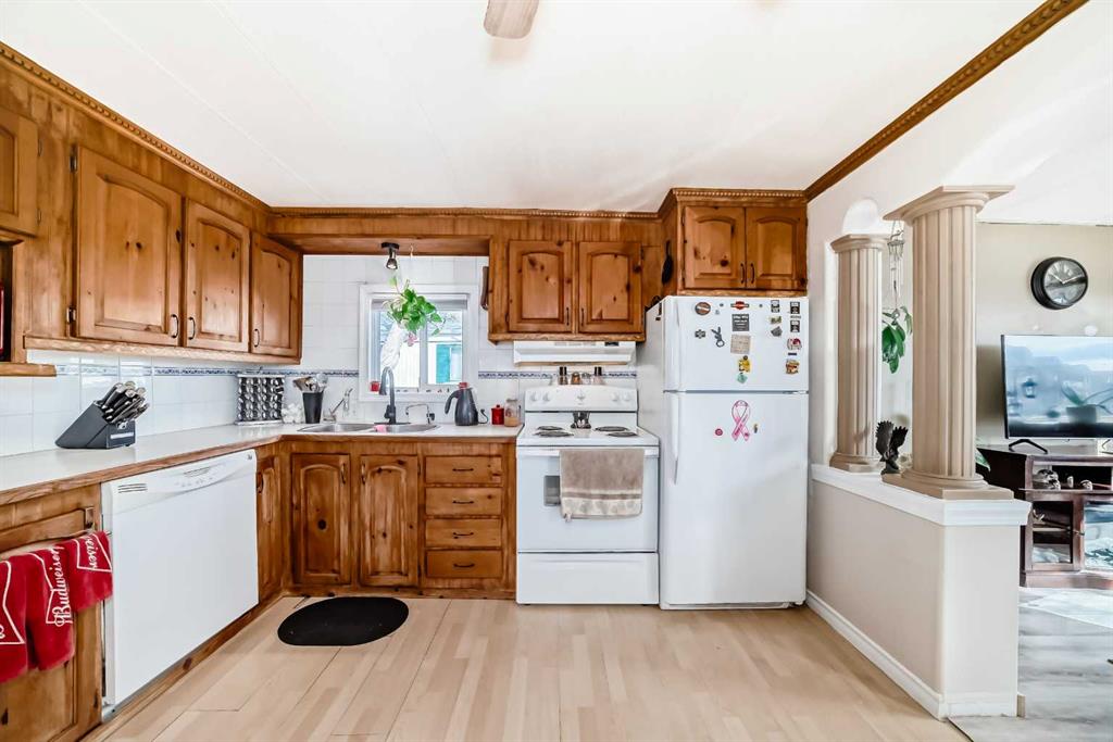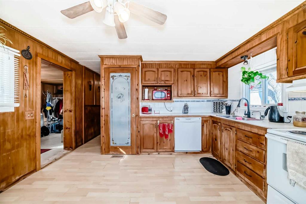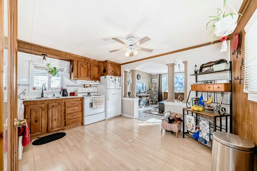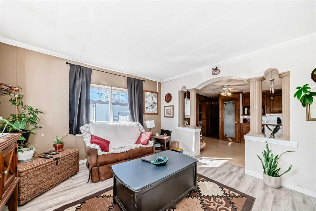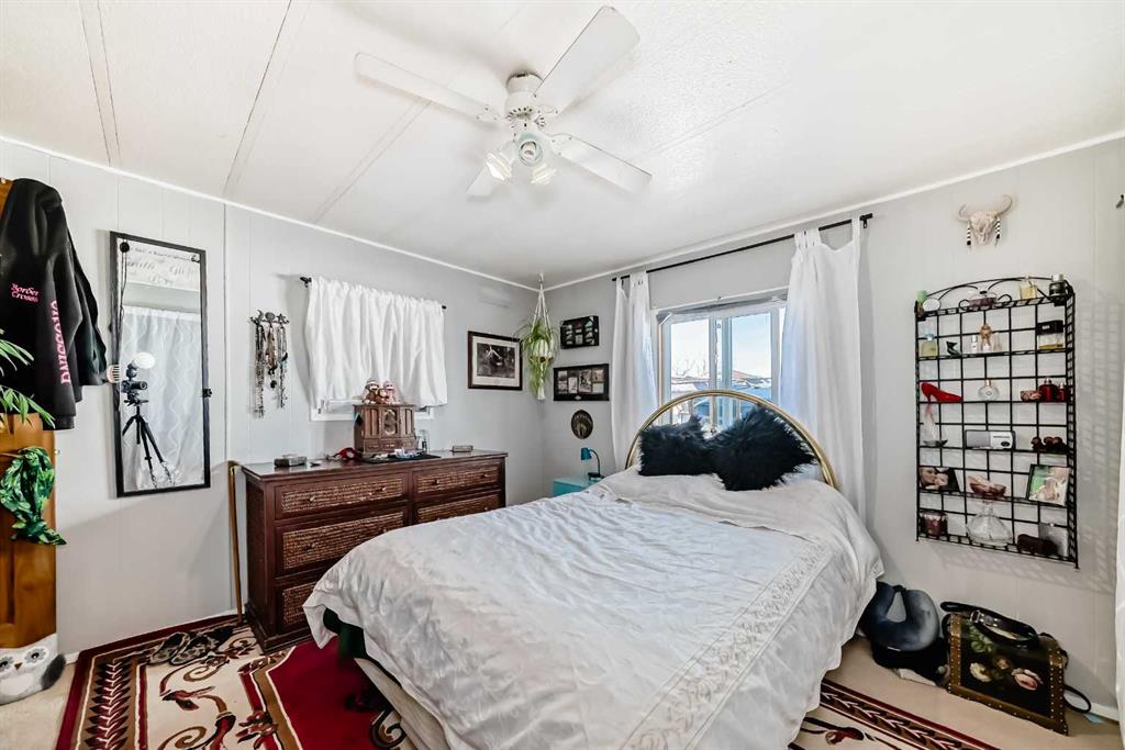 OPEN HOUSE SUNDAY APRIL 12, 2026, 12 pm – 2 pm…,.Built in 1978, well maintained mobile with 1082 sq.ft of living space is perfect for family who loves to entertain, this unit has, bright open floor plan with, 2-Bedrooms, 1 full bathroom, an inviting den area with light coming in during the day (a room by the back door). Large living room and kitchen with a dining area, plenty of cupboards, counter top space and storage. Vinyl windows (2021), well insulated for lower utility costs. South facing yard for lots of sun. Mountview is a clean well managed mobile home park, lot fee includes water, sewer, trash pick-up. New hot water tank 2025, metal roof, furnace redone 2023, new washer & dryer (2023). Great location no neighbors across, close to Eliston Park, bus rapid transit to downtown Calgary, Stoney Trail ring road, East Hills shopping centre with Costco, Walmart, Cineplex Cinema, all amenities. Two parking stalls and lots of street parking very close. Possession negotiable, well priced to sell, call today to view