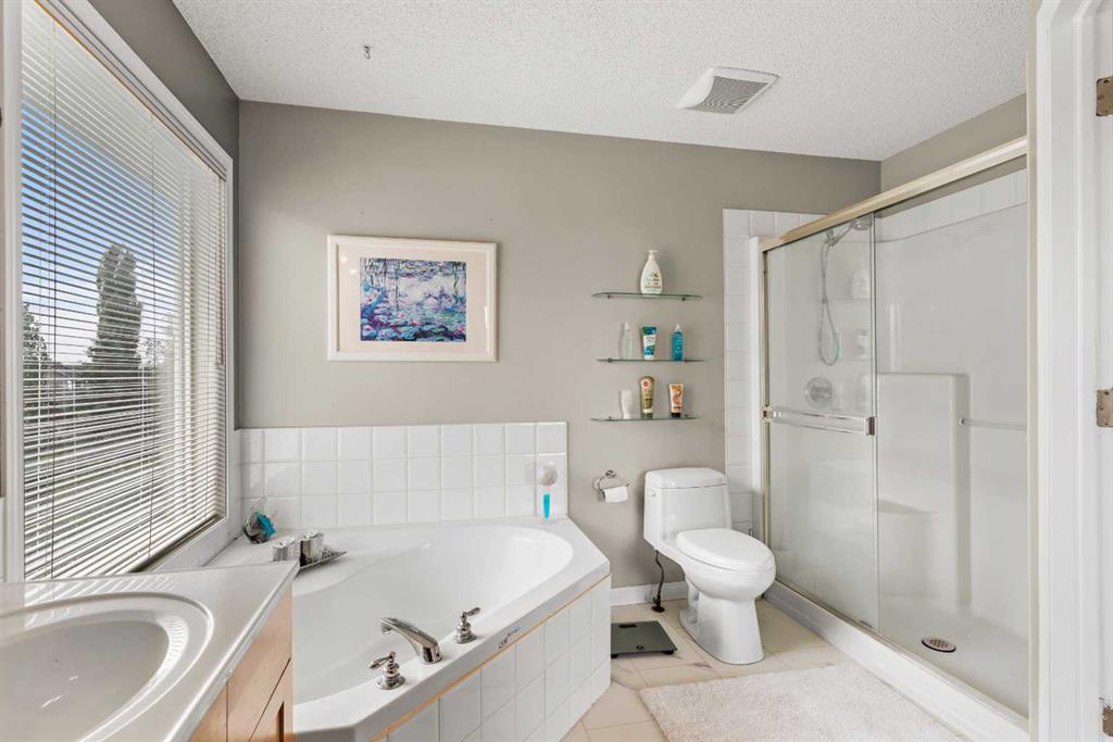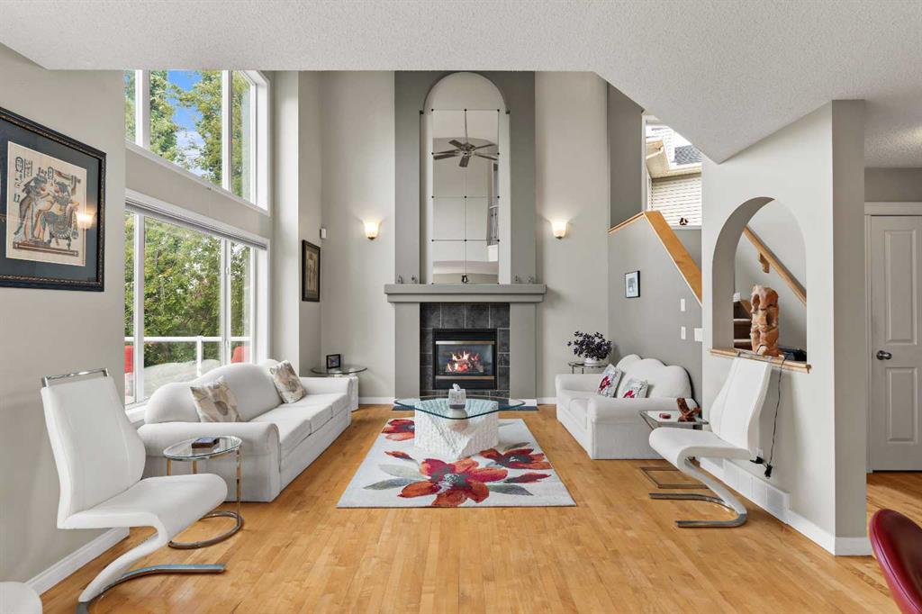 This rare 4-bedroom above-grade home offers around 3,000 sq. ft. of developed living space, including a fully finished walkout basement, and is ideally situated, backing onto walking paths with two playgrounds within view. The bright main floor features stunning white maple hardwood flooring, beautifully complemented by matching maple kitchen cabinetry. The living room boasts 18-foot ceilings with clerestory windows, filling the space with abundant natural light. Step onto the balcony to enjoy evening sunshine and views of the professionally landscaped backyard, complete with a gas BBQ hookup—perfect for outdoor entertaining. The upper level also offers panoramic views of the Rocky Mountains, adding to the home’s appeal. The primary bedroom features vaulted ceilings, a private ensuite, and a generously sized walk-in closet. Three additional well-proportioned bedrooms complete the upper level, two of which feature custom-built-in desks. The fully developed walkout basement extends your living space with a fifth bedroom, a dedicated office, a spacious family room with a second fireplace, and direct access to the ground-level patio. The basement bathroom was added in 2017, further enhancing the space’s functionality. This home has been thoughtfully updated over the years, including a new roof (2018), Rogers home security system (2018), central air conditioning (2019), and furnace replacement (2019). Additional upgrades include glass-panel deck railings (2020) and a garage door opener with a belt drive and MyQ wireless technology (2020), enhancing both comfort and convenience. This exceptional home offers the perfect blend of space, natural light, thoughtful upgrades, and a prime location—a rare opportunity you won’t want to miss. Call today to book your private viewing.