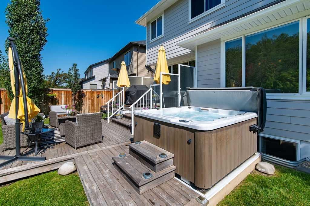 Nestled in the coveted Sheep River Cove of Okotoks and backing directly onto a breathtaking treed environmental reserve, this rare gem offers the privacy and natural connection you’ve been dreaming of—walking paths to the river, frequent wildlife sightings just beyond your backyard, and a country-living feel right in town. This fully finished 4-bedroom home offers nearly 2,600 sq ft of beautifully developed living space, thoughtfully designed and meticulously maintained throughout. Inside, large windows along the back flood the home with natural light and showcase the ever-changing views through all four seasons. The kitchen is a standout, featuring upgraded cabinetry, high-end appliances (many of which have been recently replaced), exotic granite countertops, and a timeless marble backsplash, while the functional mudroom includes built-in lockers that make everyday living easy and organized. Upstairs, the spacious primary retreat offers a walk-in closet, a luxurious 5-piece ensuite, and a private balcony—an ideal place to unwind in the evening—alongside two additional bedrooms, a bonus room with built-in surround sound, a full 4-piece bathroom, and convenient upper laundry. The fully finished basement provides even more living space with an additional bedroom, a large family room, and another full bathroom. The southwest-facing backyard is incredibly private and designed for both relaxing and entertaining, featuring a two-tiered deck with a gas line for your BBQ, hot tub, and plenty of sunshine throughout the day. And while the current season may not show it, exterior photos were thoughtfully captured in the summer to highlight just how beautiful this property is when everything is in full bloom. There have also been significant recent upgrades, including all new siding, soffits, and fascia in 2024, finished with durable and highly sought-after Hardie board—an investment of approximately $40,000—along with a heated oversized garage, air conditioning, and a new hot water tank in 2023. This is a true turnkey home in one of Okotoks’ most special pockets, where homes like this don’t come up often—be sure to explore the virtual tour for a closer look and book your private viewing today.
