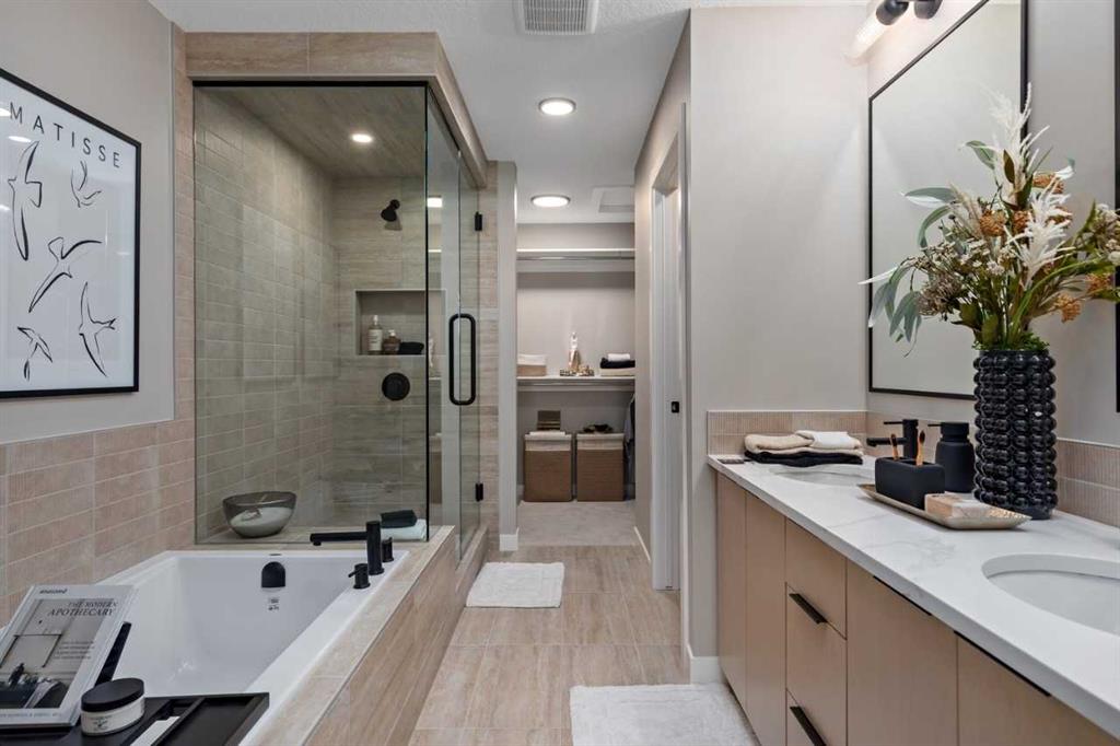 Built by a trusted builder with over 70 years of experience, this home showcases on-trend, designer-curated interior selections tailored for a home that feels personalized to you. Energy efficient and smart home features, plus moving concierge services included in each home. This stunning 2025 home offers a side entrance, 9’ basement walls, rear deck with BBQ gas line rough-in, and a main floor flex room. Enjoy an open-to-above great room with an electric fireplace featuring floor-to-ceiling tile, vaulted bonus room, paint grade railing with iron spindles, triple pane windows, and additional windows throughout. LVP spans the main floor, complemented by quartz countertops. The executive kitchen showcases built-in stainless steel appliances, gas cooktop, fridge with water and ice, Silgranit sink, waterfall island, pots and pans drawers, and a walk-in pantry. The 5-piece ensuite includes a soaker tub and tiled shower, plus tile flooring in wet areas and banks of drawers. This energy-efficient home is Built Green certified and includes triple-pane windows, a high-efficiency furnace, and a solar chase for a solar-ready setup. With blower door testing, plus an electric car charger rough-in, it’s designed for sustainable, future-forward living. Featuring a full range of smart home technology, this home includes a programmable thermostat, ring camera doorbell, smart front door lock, smart and motion-activated switches—all seamlessly controlled via an Amazon Alexa touchscreen hub. Photos are representative.