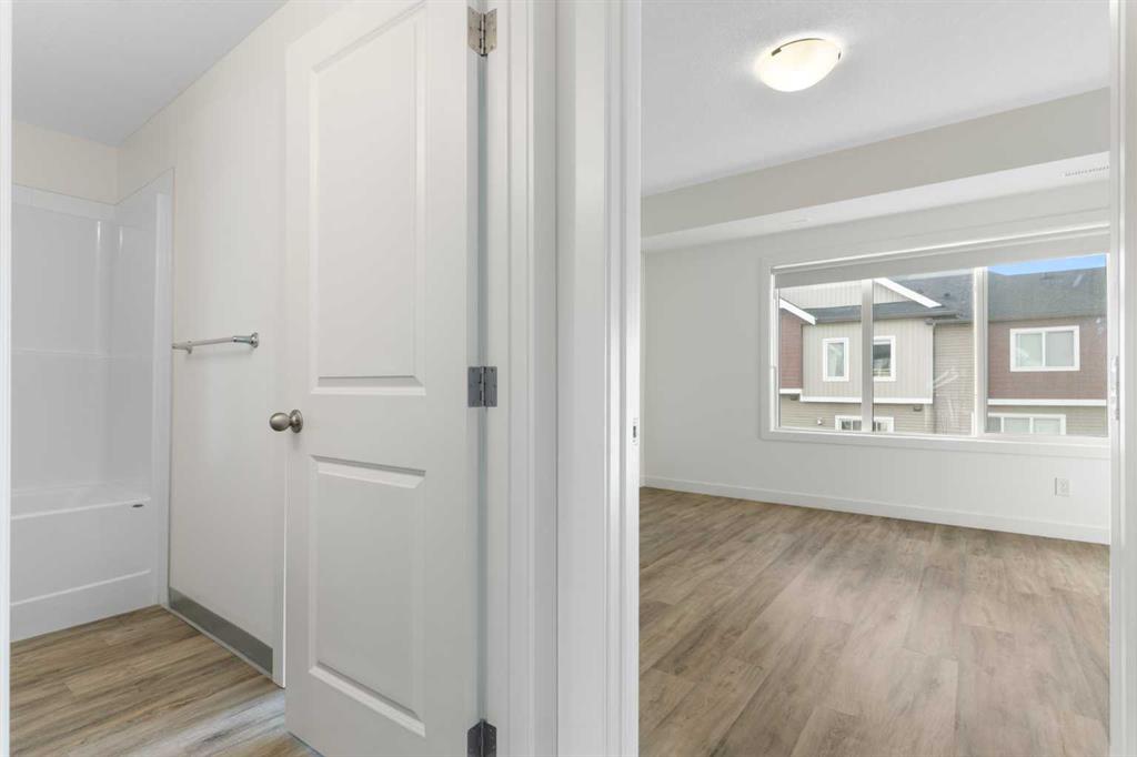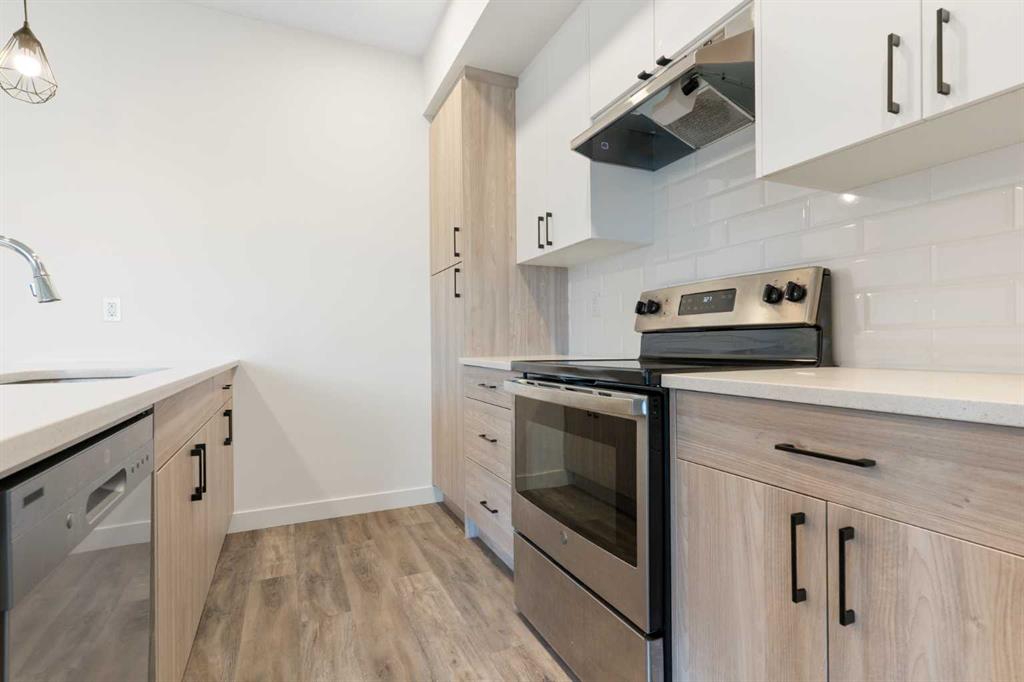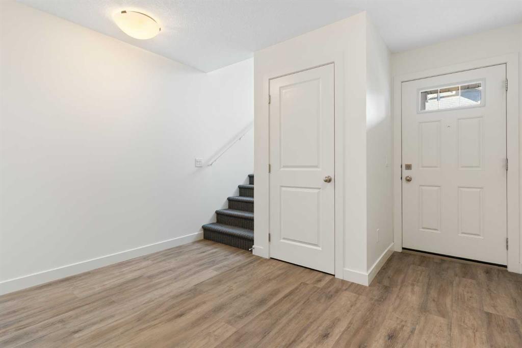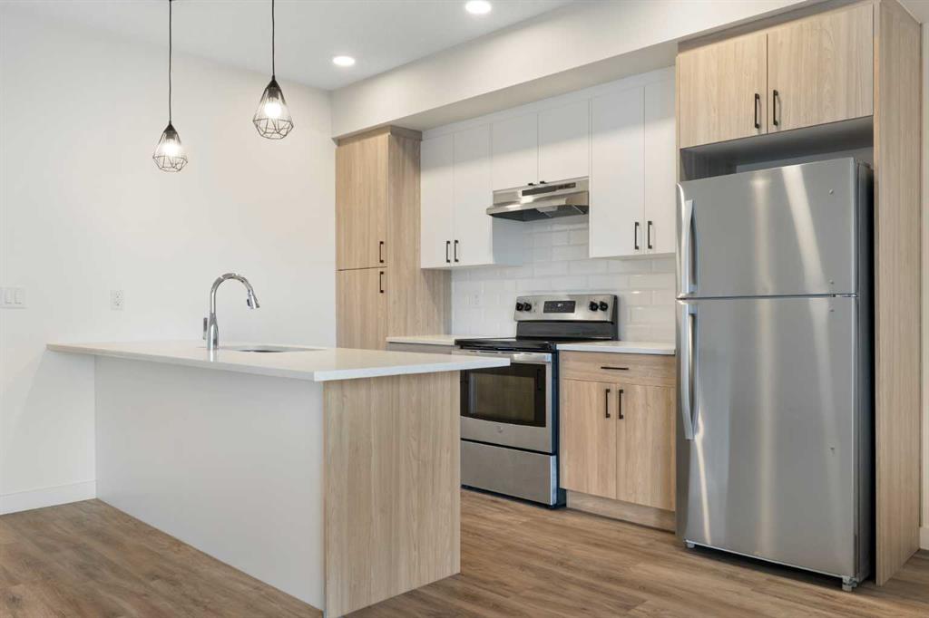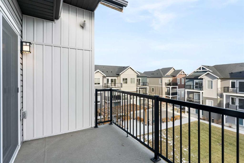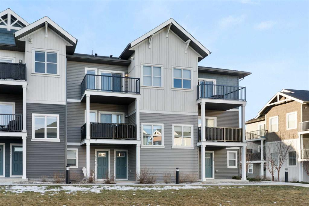 Check out this stunning top-floor stacked townhome that offers the perfect blend of style and function. Ready for immediate occupancy; this 1 bedroom 1 bath unit features over 1200 sq ft of thoughtfully designed living space, with most of the layout conveniently situated on a single level. Step inside and up to the main floor and you will discover an open-concept living area with a full kitchen that’s a home chef’s dream. The kitchen boasts elegant quartz countertops, soft-close drawers, and stylish two-tone cabinets highlighted by pendant lighting. An adjacent, flexible space is perfect for a spacious dining area or a home office. This home has an oversized bedroom and a full 4pc bathroom that doubles as an ensuite with its second access. A spacious laundry room adds to the convenience. This unique floorplan is designed to feel like a modern apartment but with the added benefits of a main floor storage/flex area and direct access to an oversized, extended single car GARAGE. This home is perfectly situated to offer the best of both convenience and community. It’s located right next to a future school site, with transit options directly at your doorstep for effortless commuting. Enjoy a short two-minute walk to Bow Valley High School, and a quick five-minute trip to the Spray Lakes Sports Centre for all your recreational needs. For bigger city amenities, you’re only 20 minutes from South Calgary, and the mountains are within easy reach, with Canmore just a 40-minute drive away.