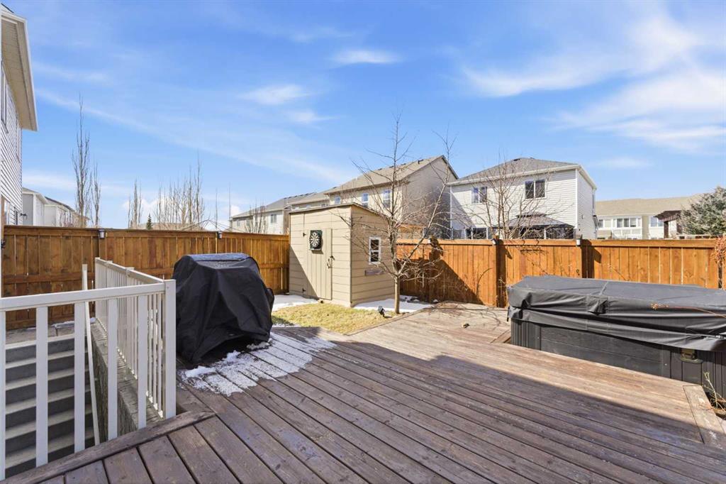 BACKYARD OASIS: Two-tiered deck, hot tub, storage shed.