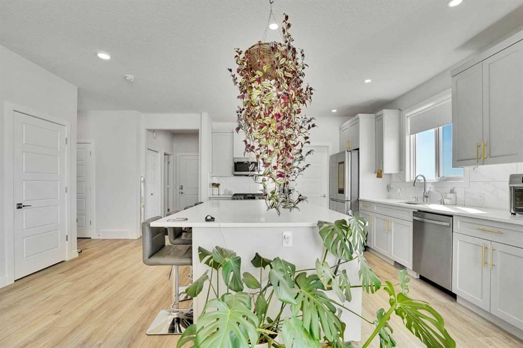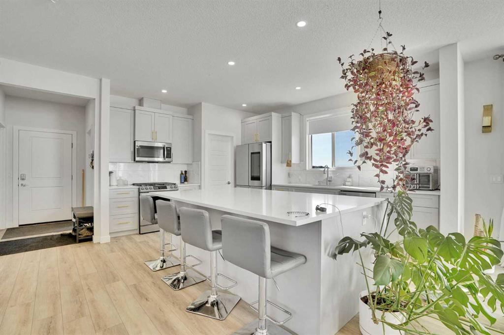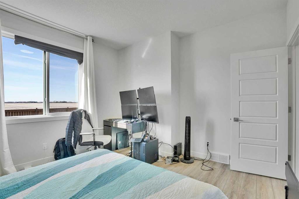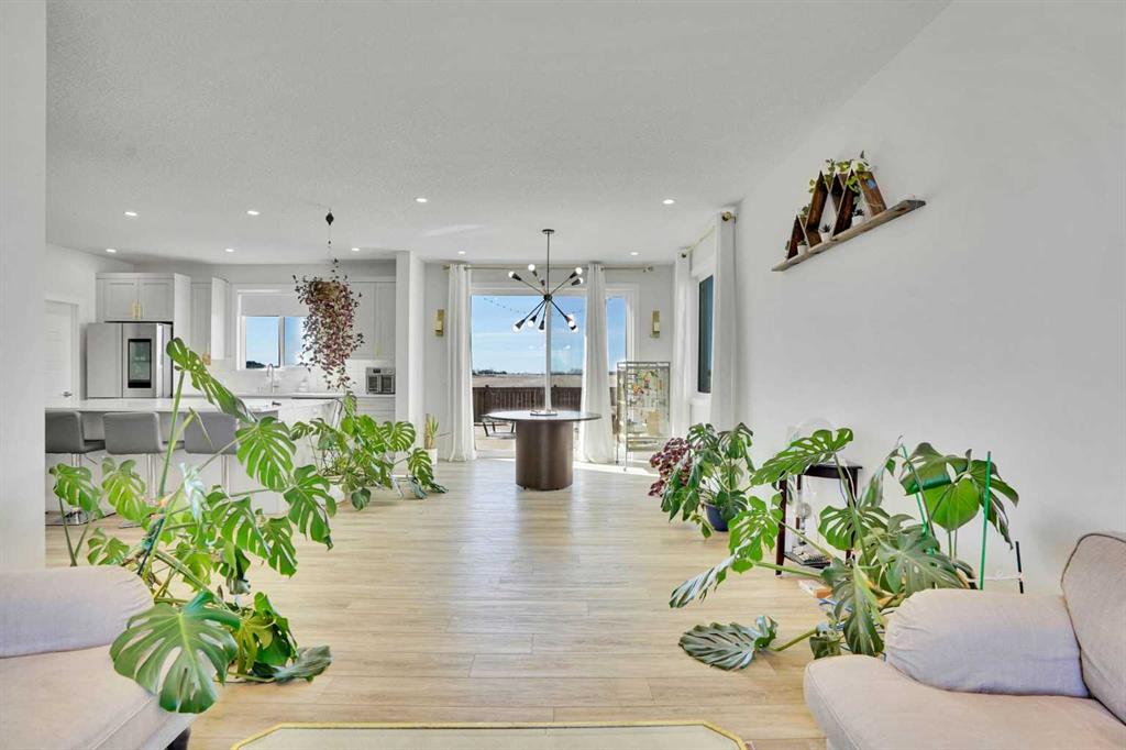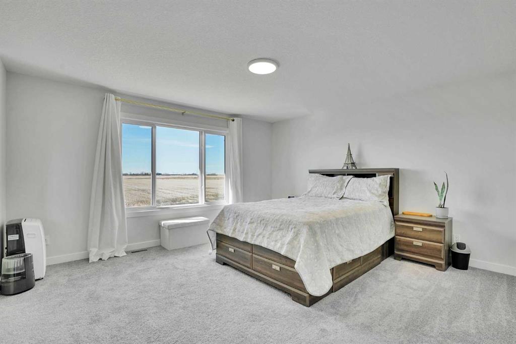 Welcome to this beautifully upgraded home in the charming Hamlet of Langdon, offering the perfect blend of small-town living with the convenience of being just a 15-minute commute to Calgary’s city limits. This stunning property features 4 spacious bedrooms, 3 of which have walk-in closets, and 3 full bathrooms—ideal for families or those looking for extra space. Upstairs, you’ll find a large bonus room, perfect for a cozy family area, home office, or playroom. The home is filled with natural light, creating a warm and inviting atmosphere throughout. The fully upgraded kitchen is a true showstopper, complete with a massive island, upgraded appliances, and ample storage—perfect for entertaining or everyday living. Enjoy the added value of over $55,000 in upgrades, including A/C for those warm summer months and solar panels installed in January 2026, helping you save on utility bills year-round. You’ll also appreciate the bonus of remaining new home warranty, without the hassle of completing landscaping or fencing—this home is truly turn key. Step outside to your private backyard with no neighbours behind, offering peace and privacy. The heated, oversized double garage with epoxy flooring and a Tesla charging port is perfect for vehicles, storage, or a workshop setup. Located close to schools, amenities, and golf courses, this home truly checks all the boxes for comfortable and convenient living in a welcoming community.