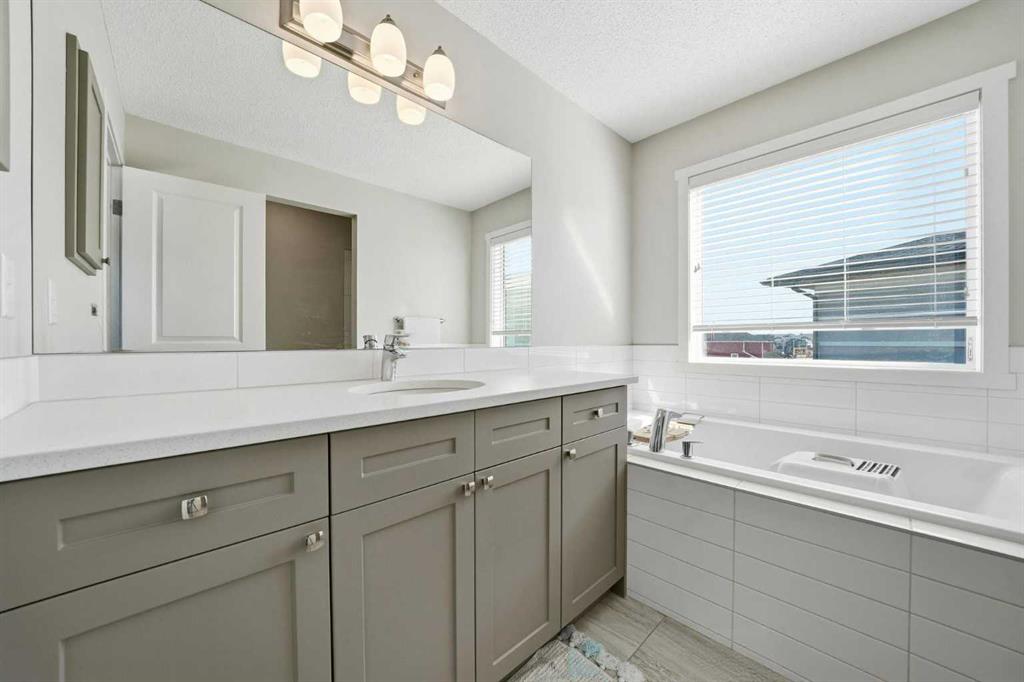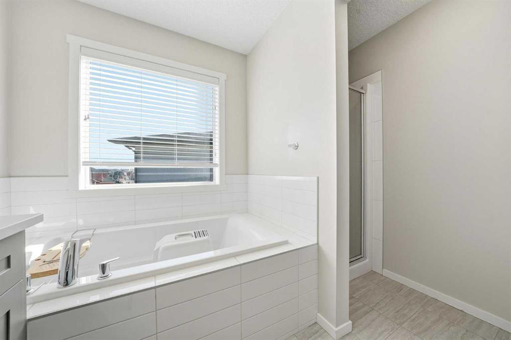 Upstairs, you’ll find three generously sized bedrooms, including a large primary retreat complete with a walk-in closet and a spa-inspired ensuite boasting a separate soaker tub and shower — a luxury typically reserved for much higher-end homes. Two additional spacious bedrooms, a full 4-piece bathroom, and the convenience of upper-level laundry round out this floor beautifully.
