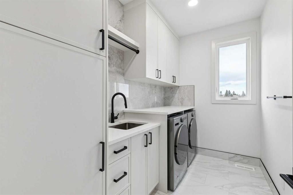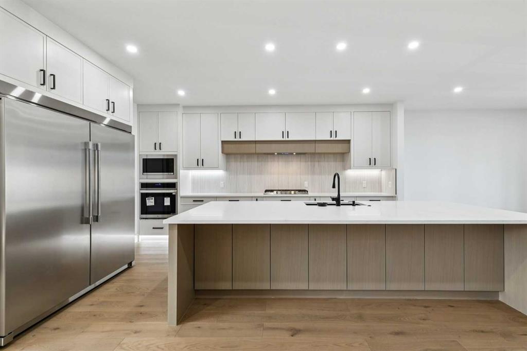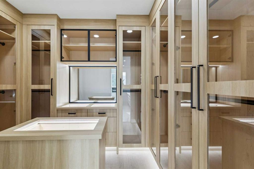 Soko Modern Homes presents this stunning custom-built luxury two storey walk-up home in popular Braeside. Exceptional craftsmanship, thoughtful design, and impressive attention to detail throughout! Featuring a total of 6 bedrooms, 4 of which are above grade including a convenient main floor bedroom with a full bathroom – perfect for those with mobility challenges, or to use as an office. Wide plank European oak engineered hardwood, smooth ceilings, 8’ doors, white oak railings and posts, and extensive custom LED lighting setting the tone. The open-concept main level is anchored by a chef-inspired kitchen featuring a massive white oak quartz island with a wine fridge, side-by-side refrigerator/freezer, gas cooktop, wall oven, microwave, abundant pot drawers, and a spacious walk-in pantry with custom built-ins. The adjoining dining area offers an ideal space for entertaining, while the sunny south-facing family room is a great spot to relax and unwind in front of the Napoleon linear gas fireplace. Upstairs, the vaulted primary retreat boasts large south-facing windows and a spa-inspired ensuite with a dual-sink floating vanity with LED lighting, luxurious towel warmer, freestanding tub, oversized custom shower, and private water closet, along with a stunning custom walk-in closet with LED lit island. Two additional oversized bedrooms each include their own 3-piece ensuites and walk-in closets, complemented by a convenient upper laundry room with quartz counter and sink. The fully developed walk-up basement is filled with natural light from oversized 3’x6’ windows and features LVP flooring, in-floor heating on two zones, two additional bedrooms, a 4-piece bath, custom bar with designer lighting, and excellent storage space. Extensive upgrades during construction and additional highlights include Lux triple-pane windows, zoned heating, central A/C, on-demand hot water, 200 amp service, and built-ins in every closet. The fully finished, heated and oversized 32’ wide triple garage offers 8’ high doors, two EV plugs, hot tub rough-in, and ample storage. Exterior details include extensive custom concrete work, a large front porch with heavy-duty wood grain metal soffit, front irrigation, low-maintenance rear yard, open under-deck storage, and camera rough-ins throughout. Choice location, walking distance to both public & separate elementary, public junior high, steps to Southland Leisure Centre and Braeside Community Centre. Minutes to shopping & restaurants at Glenmore Landing, JCC, Co-op, Costco, pathways at Glenmore Reservoir and Stoney Trail access. 10 year Alberta New Home Warranty. Braeside’s original show home street has it’s first new show home in 55 years! A truly exceptional home that must be seen to be appreciated!
