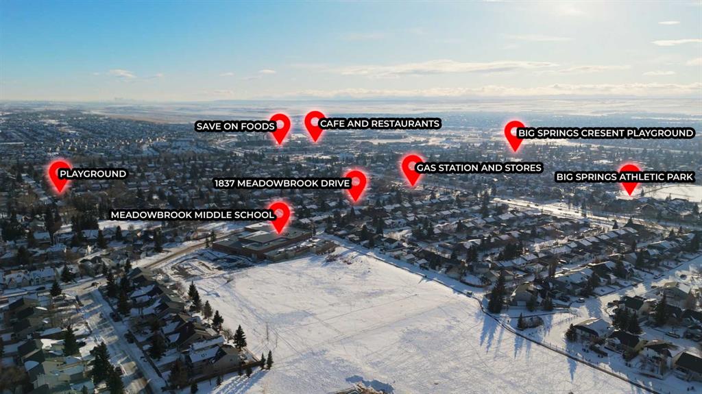 Open House! Sunday, March 1st, 2026, from 1:00 PM to 4:30 PM. Incredible 5 bedroom 2 bathroom BUNGALOW in family friendly Airdrie – Welcome home to 1837 Meadowbrook Drive. The main level showcases a bright, functional layout designed for easy living. Featuring 3 bedrooms and 1 full bathroom on main level & 2 additional bedrooms on the lower level. Outdoors you will find the sunny south-facing backyard with level grassy space perfect for all your recreation needs! The backyard is complete with deck, swing & firepit for further enjoyment. The fully finished basement is a standout feature, offering multiple options for working, living & playing! For the hobbyist or commuter, the detached double garage and additional parking pad offer plenty of room for vehicles and storage. Featuring a prime location walking distance to multiple schools (with the added bonus of school routes being prioritized for snow plowing!), local shopping, restaurants, parks & pathways. Book your viewing today!