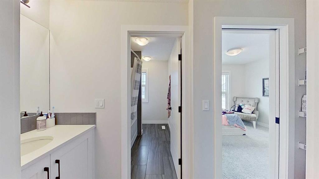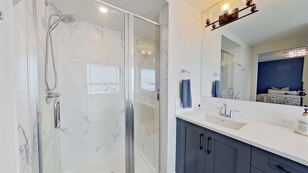 Welcome to 184 Emberside Place. This corner lot features a two story with a double attached garage and a fully finished basement. It also includes a additional oversized 2 car detached garage in the rear that backs on to an alleyway. (total 4 car garage) Above is a 684 sq ft carriage legal suite with its own separate utility room (hot water tank and furnace) , one bedroom, full bathroom with laundry, full kitchen and cozy living room. Great for kids looking to move out, in-laws, or a rental option to help cover the mortgage. Alongside the garage suite is a rock pad ideal for additional parking or RV parking. A cozy deck connects it all and a good sized yard on the side. The main house features a fully finished basement which includes a large bedroom, full bathroom and a large living room. The open concept entrance to the main floor connects the kitchen and living room area. Upstairs includes a beautiful bonus room, with Jack and Jill bedrooms and full bathroom. The large master bedroom features a walk in closet and elegant bathroom. Plenty of large windows throughout the Home.