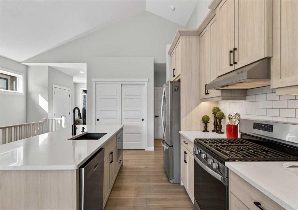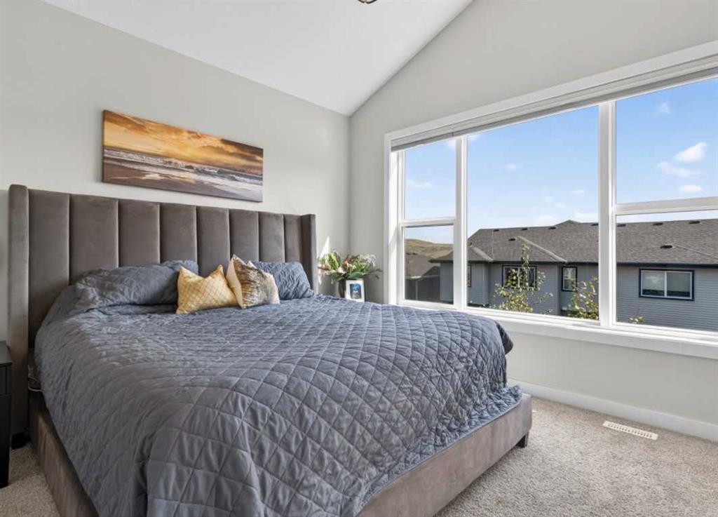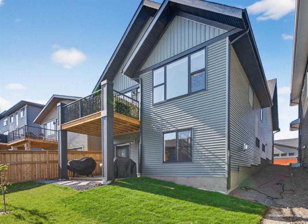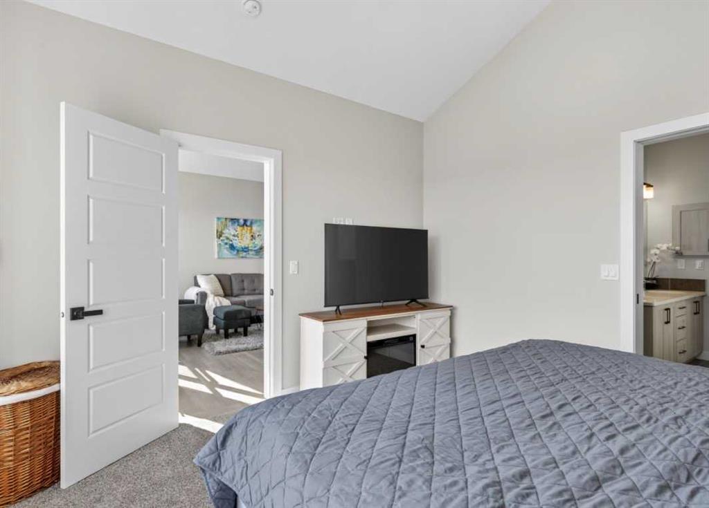 OPEN HOUSE Saturday Feb 14th 1-4pm ~Your NEW HOME awaits…. Stunning 2024 Trico Homes Wynwood 28 Vaulted Ceiling Bungalow with finished Walkout Basement Development by Basement Builders in Scenic Precedence area. This beautifully designed bungalow combines comfort, style, and breathtaking views in one exceptional package. As you step through the front door, you are WELCOMED into the heart of the HOME greeted by soaring VAULTED CEILINGS and an open, light-filled floor plan. The kitchen is a delight to cook in with a large island, gas range, and tall cabinetry with quartz countertops, and pantry. Continuing on the main level is the dining area, and living room with electric fireplace and flatscreen TV making this the perfect space for both everyday living and entertaining. Finishing off this level is the Vaulted Primary Bedroom with 5 piece ensuite with SPECTACULAR walk in shower, walk in closet, second bedroom/office, main bathroom, and laundry room. Another added bonus off the living room is the 10 by 14 deck with gas BBQ hook-up which overlooks the landscaped backyard and North East views of the Cochrane Hills, PLUS a double attached garage with high ceilings…..add more storage. Head downstairs to the beautifully fully finished walkout basement offering even more living space that has been thoughtfully designed for relaxation, entertainment or a man cave. A massive family room centres around a striking floor-to-ceiling stone gas fireplace with mantle, and 75 inch big screen TV with SURROUND SOUND. There are so many added BONUSES including a large BAR area making this level perfect for hosting gatherings. Finishing off the basement you will find two additional bedrooms and 4 piece bathroom plus utility room. The walkout door leads to a covered patio with beautifully landscaped yard, extending the living space outdoors, plus electric hook up for a future hot tub area. This HOME BLENDS a thoughtful layout with high-end finishes and stunning surroundings, making this bungalow the best of both worlds! A retreat like setting with easy access to Cochrane’s amenities, schools, and scenic trails. Whether you are entertaining friends or enjoying quiet evenings on the deck, this home truly has it all. DO NOT WAIT… make this HOME yours TODAY!