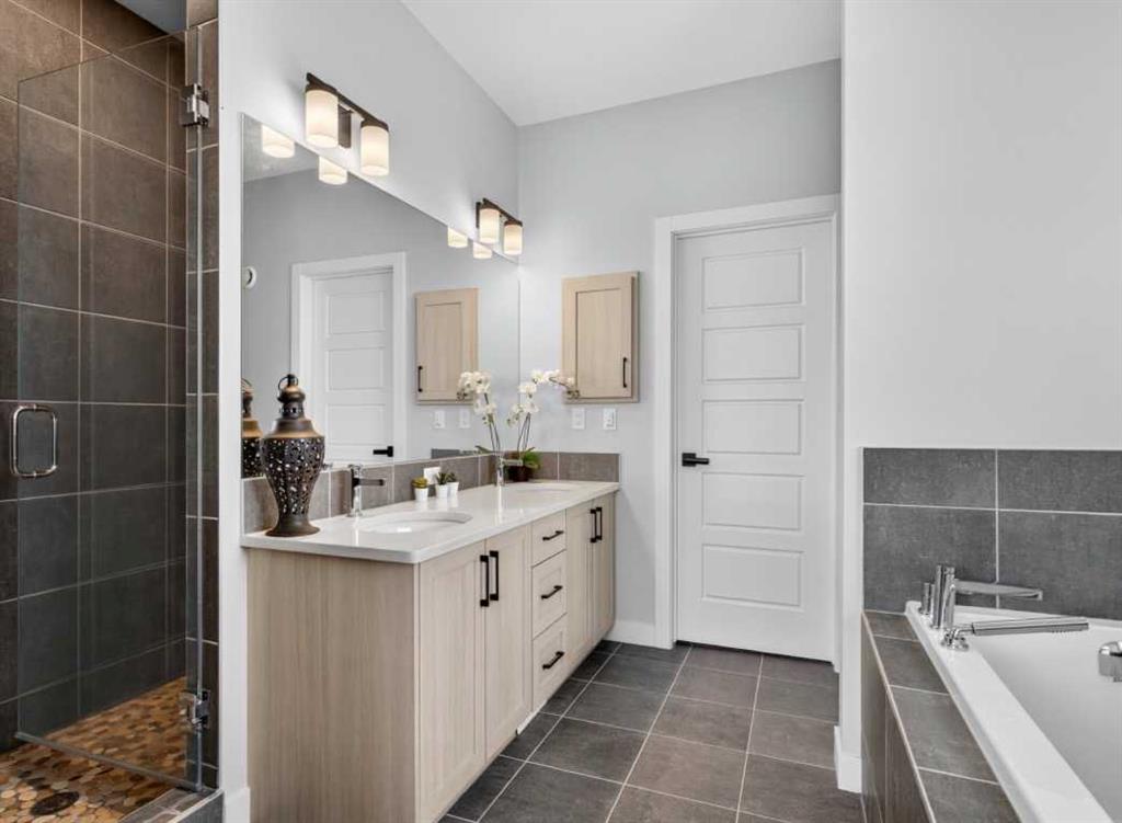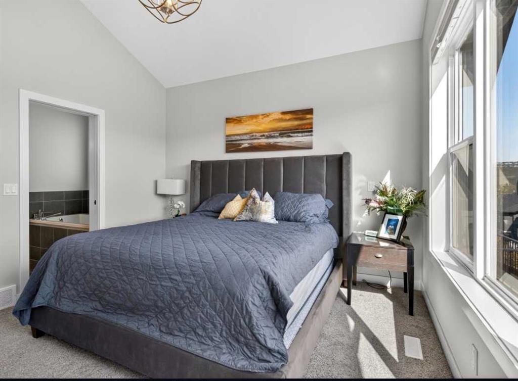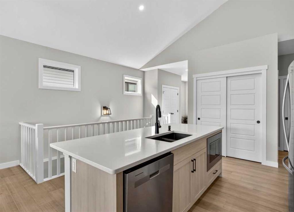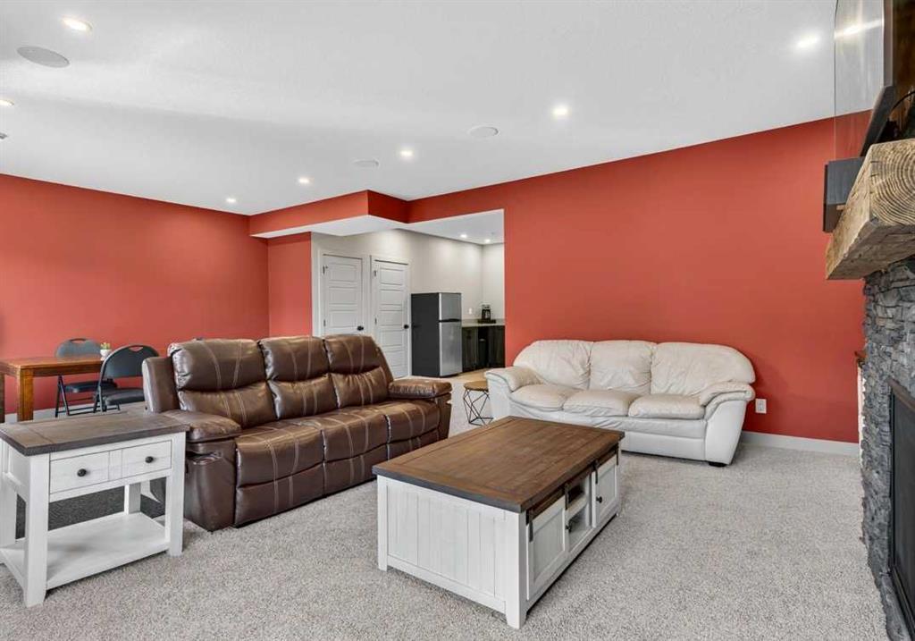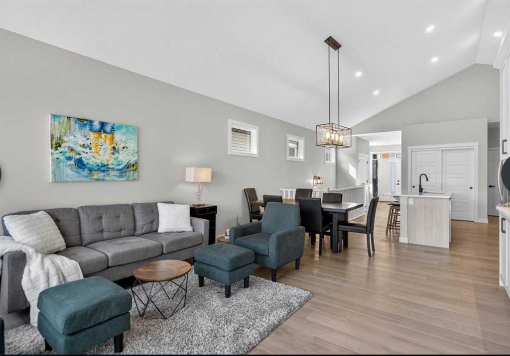 OPEN HOUSE Saturday Feb 14th 1-4pm ~Your NEW HOME awaits…. Stunning 2024 Trico Homes Wynwood 28 Vaulted Ceiling Bungalow with finished Walkout Basement Development by Basement Builders in Scenic Precedence area. This beautifully designed bungalow combines comfort, style, and breathtaking views in one exceptional package. As you step through the front door, you are WELCOMED into the heart of the HOME greeted by soaring VAULTED CEILINGS and an open, light-filled floor plan. The kitchen is a delight to cook in with a large island, gas range, and tall cabinetry with quartz countertops, and pantry. Continuing on the main level is the dining area, and living room with electric fireplace and flatscreen TV making this the perfect space for both everyday living and entertaining. Finishing off this level is the Vaulted Primary Bedroom with 5 piece ensuite with SPECTACULAR walk in shower, walk in closet, second bedroom/office, main bathroom, and laundry room. Another added bonus off the living room is the 10 by 14 deck with gas BBQ hook-up which overlooks the landscaped backyard and North East views of the Cochrane Hills, PLUS a double attached garage with high ceilings…..add more storage. Head downstairs to the beautifully fully finished walkout basement offering even more living space that has been thoughtfully designed for relaxation, entertainment or a man cave. A massive family room centres around a striking floor-to-ceiling stone gas fireplace with mantle, and 75 inch big screen TV with SURROUND SOUND. There are so many added BONUSES including a large BAR area making this level perfect for hosting gatherings. Finishing off the basement you will find two additional bedrooms and 4 piece bathroom plus utility room. The walkout door leads to a covered patio with beautifully landscaped yard, extending the living space outdoors, plus electric hook up for a future hot tub area. This HOME BLENDS a thoughtful layout with high-end finishes and stunning surroundings, making this bungalow the best of both worlds! A retreat like setting with easy access to Cochrane’s amenities, schools, and scenic trails. Whether you are entertaining friends or enjoying quiet evenings on the deck, this home truly has it all. DO NOT WAIT… make this HOME yours TODAY!