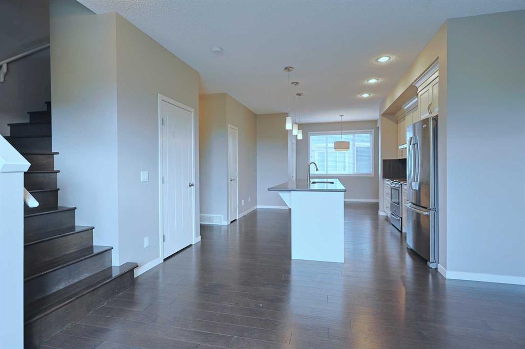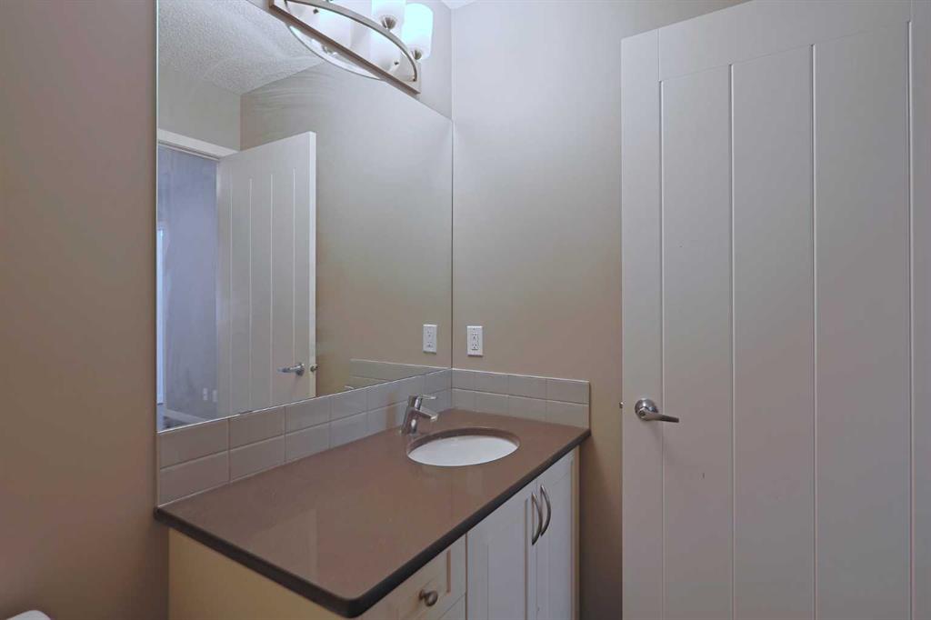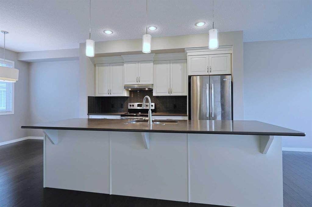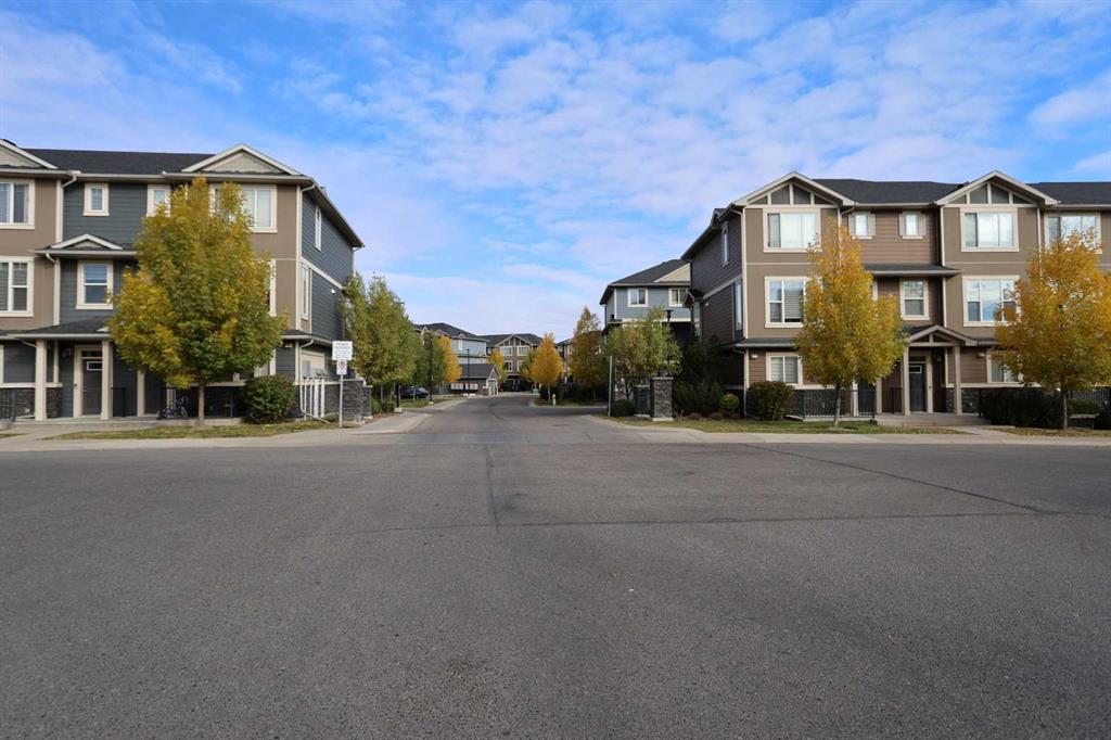 Don’t miss out on this chance to make your new home in this stylish townhome in THE ELEMENTS by Cedarglen, here in the popular family community of Panorama Hills. Available for quick possession, this fantastic 3 storey condo enjoys hardwood floors throughout, designer kitchen with quartz countertops, 2 bedrooms, 2.5 bathrooms & 2 car garage for your exclusive use. Complemented by 9ft ceilings, you’ll love the open concept main living area on the 2nd floor with its rich hardwood floors & big windows, South-facing living room with alcove for your home office, dining area with access onto the covered balcony & sleek kitchen with huge centre island & Frigidaire/Whirlpool stainless steel appliances. On the top floor there are 2 big bedrooms – each with walk-in closets & full ensuites. The ensuite in the North-facing bedroom has a shower/tub combo & the South-facing bedroom has partial downtown views & ensuite with walk-in shower. Between the bedrooms is a large walk-in closet & another closet for your linens & towels. On the ground floor is the laundry/utility room with stacking Maytag washer & dryer, & access into the 2 car garage. Additional features include Hunter Douglas blinds, tankless hot water system, quartz counters in the upper level bathrooms, natural gas line for a BBQ on the balcony, central vacuum system & front patio. Monthly condo fees include grass cutting & snow removal, & pets are okay on board approval. A park with sports court & playground is walking distance from your front door, & with its prime location you’ve got easy access to area schools & shopping, Country Hills Town Centre retail complex, VIVO Centre, Deerfoot & Stoney Trails.