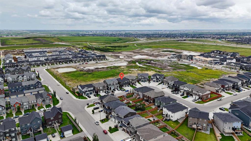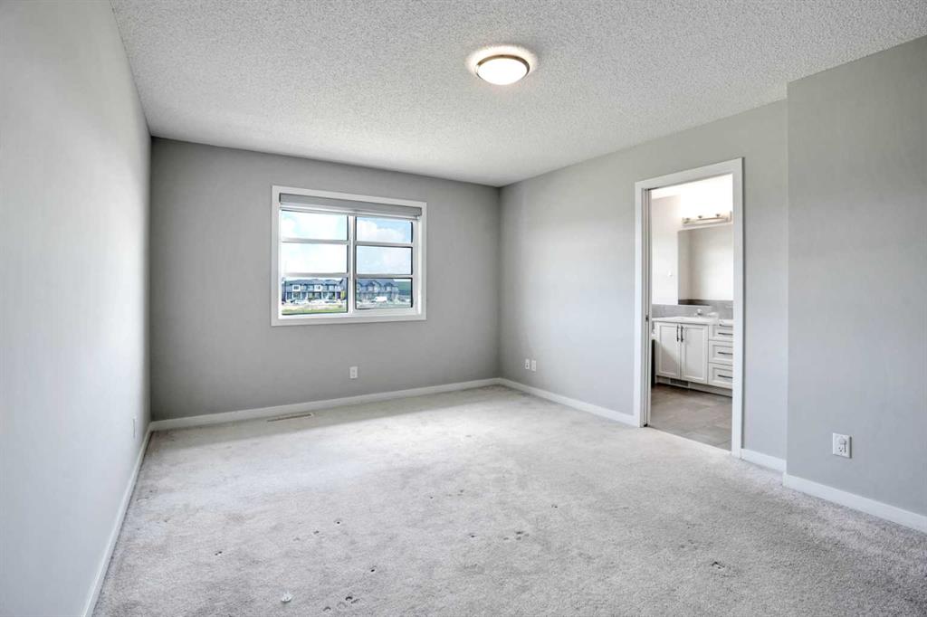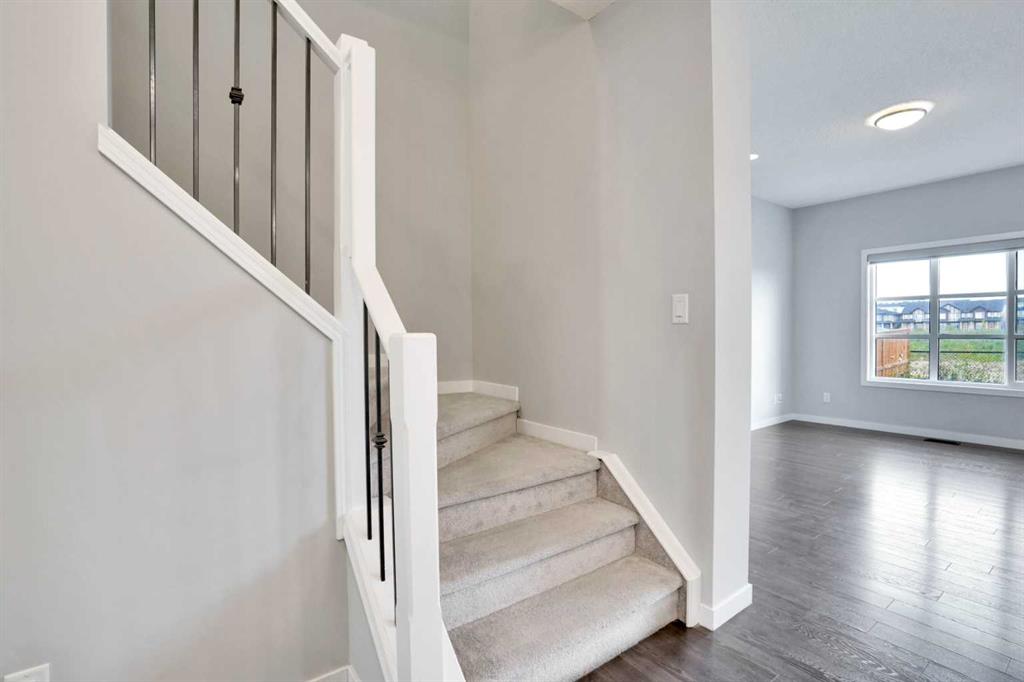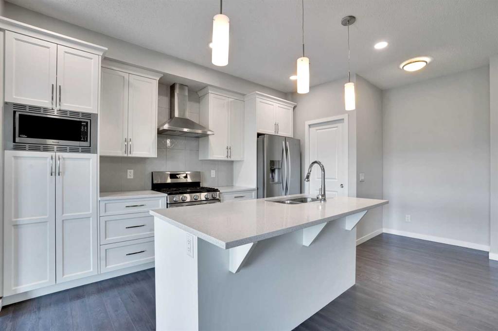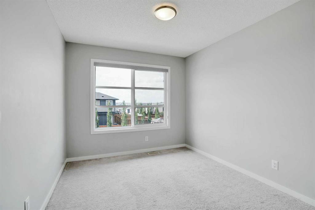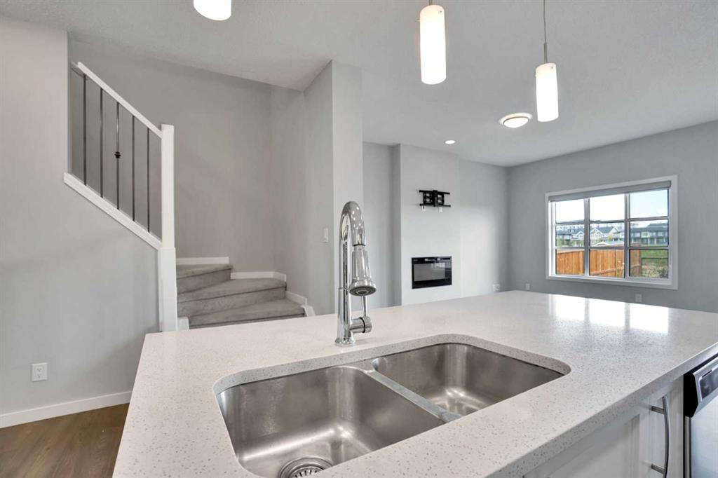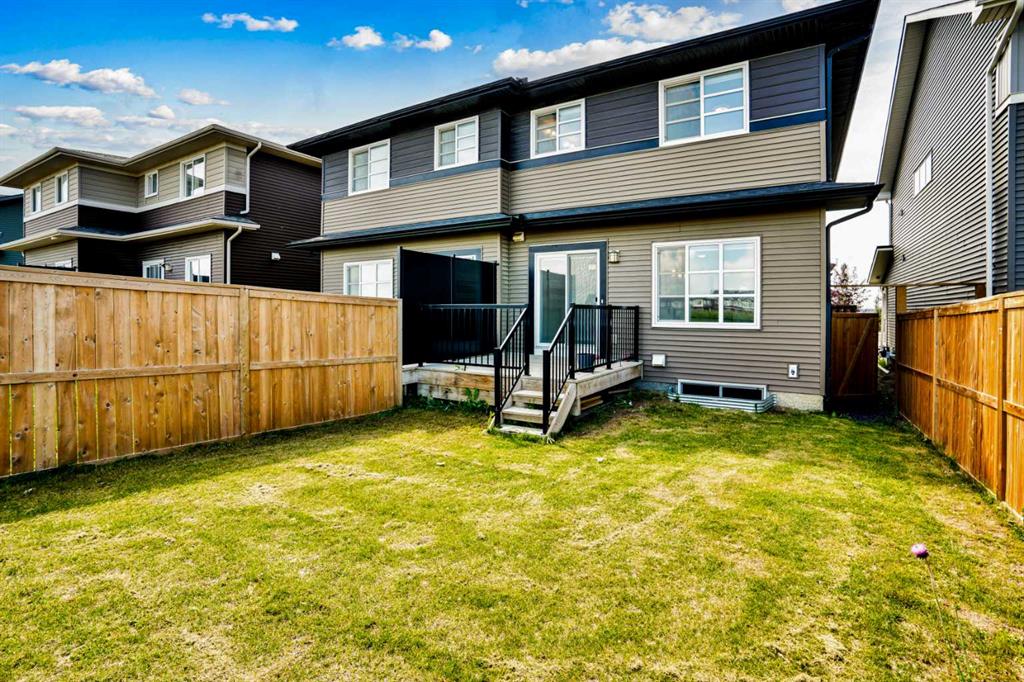Welcome to this beautifully finished semi-detached home in the tranquil community of Carrington. Backed onto a serene green space, this recently built property offers over 2,301 sq. ft. of total livable space, thoughtfully designed for comfort, style, and everyday living. Impeccably maintained and tastefully upgraded, the home combines modern elegance with practical functionality. The main floor welcomes you with 9-ft ceilings and an abundance of natural light through large windows and patio doors. The newly added gourmet kitchen features a chimney hood fan, built-in microwave, crown-molded cabinetry, stylish tile backsplash, a spacious walk-in pantry, and a functional island—perfect for both cooking and entertaining. The open-concept living and dining areas are enhanced by lovely laminate flooring, neutral grey tones with crisp white trim, and a cozy fireplace. A convenient half bath completes this level. Upstairs, the primary suite includes a generous walk-in closet and a luxurious 5-piece ensuite with a standing shower, double vanity, and soaker tub. Two additional bedrooms, a well-appointed 4-piece bathroom, and an upstairs laundry room offer both comfort and convenience for the whole family. The fully finished lower level expands your living options with a spacious multi-purpose room and a 4-piece bathroom – ideal as a home gym, media room, or guest space. Additional highlights include an oversized driveway, peaceful green space views, and a stylish, move-in-ready interior. Perfect for families seeking space, quality, and modern living, this home is ready to welcome its next chapter. Book your showing today!
