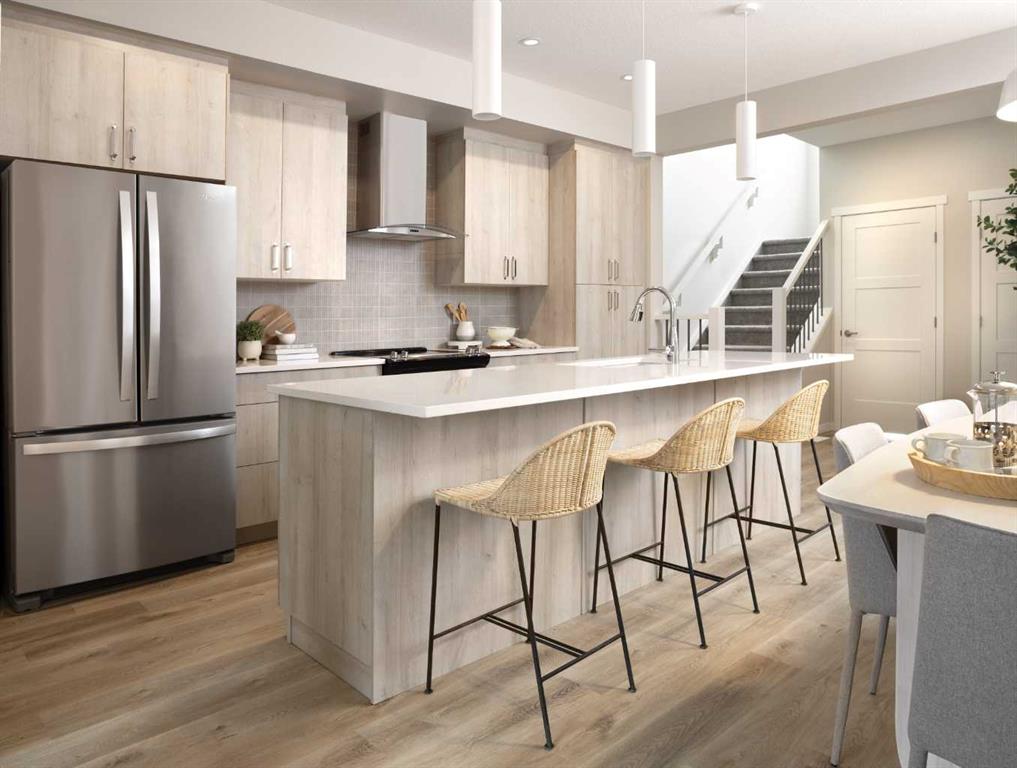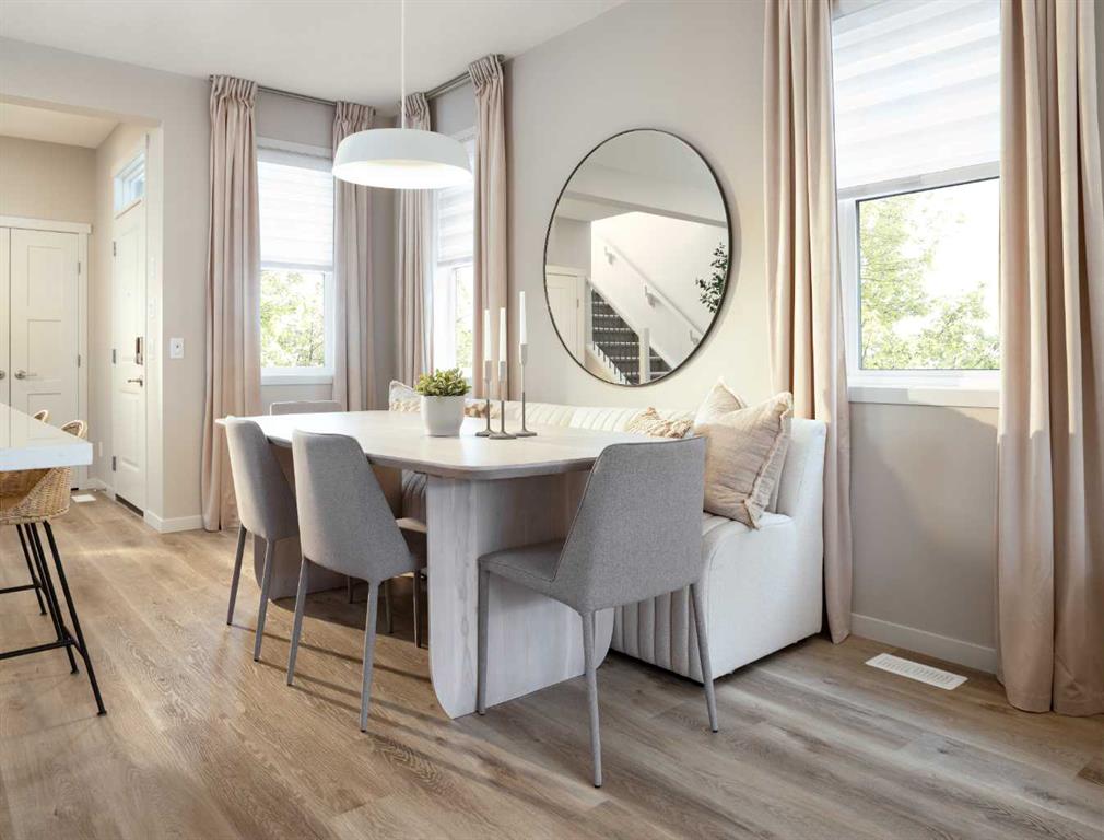 Here’s your chance to own a stunning, professionally designed showhome in the sought-after community of Sawgrass Park in Airdrie. Built by Hopewell Residential, this paired Myer model offers nearly 1,500 sq ft of beautifully curated living space, packed with upgrades and thoughtful touches throughout. This is a showhome leaseback opportunity, ideal for buyers looking to secure a future home now with guaranteed rental income from the builder during the lease term. Possession will be in approximately 18 to 24 months, allowing Hopewell to continue showcasing this home while you build equity. Inside, the open-concept main floor is warm and inviting, featuring a designer kitchen with quartz countertops, custom flat slab cabinetry in a soft Nizza tone, and a full-height backsplash. A stylish hood fan, Whirlpool stainless steel appliances, and oversized island create a perfect balance of function and flair. The adjacent dining and lifestyle areas are flooded with natural light, offering an ideal space for entertaining or cozy family evenings. Upstairs, the thoughtful layout continues with three bedrooms, a versatile central loft, and upper-floor laundry. The primary suite includes a generous walk-in closet and private ensuite, while additional bedrooms are perfect for kids, guests, or a home office. Throughout the home, you’ll find upgrades like knockdown ceilings, curated lighting with Leviton automation, gemstone exterior lights, window coverings, and central air conditioning. The triple-pane windows, 9′ foundation, and Hardie board siding enhance comfort and curb appeal. A detached garage is included, and the side entrance offers flexibility for future development. Located in a vibrant and growing Airdrie neighborhood, Sawgrass Park is perfect for families and close to future schools, parks, and amenities. Whether you’re looking for a smart investment or your future dream home, this leaseback showhome is a unique and rewarding opportunity.