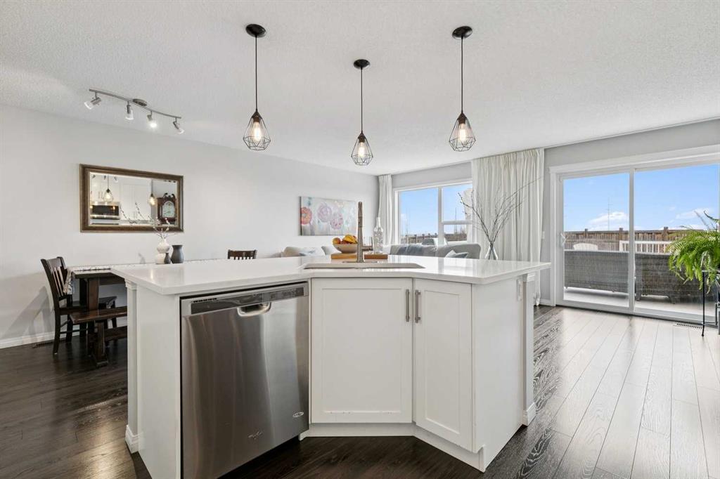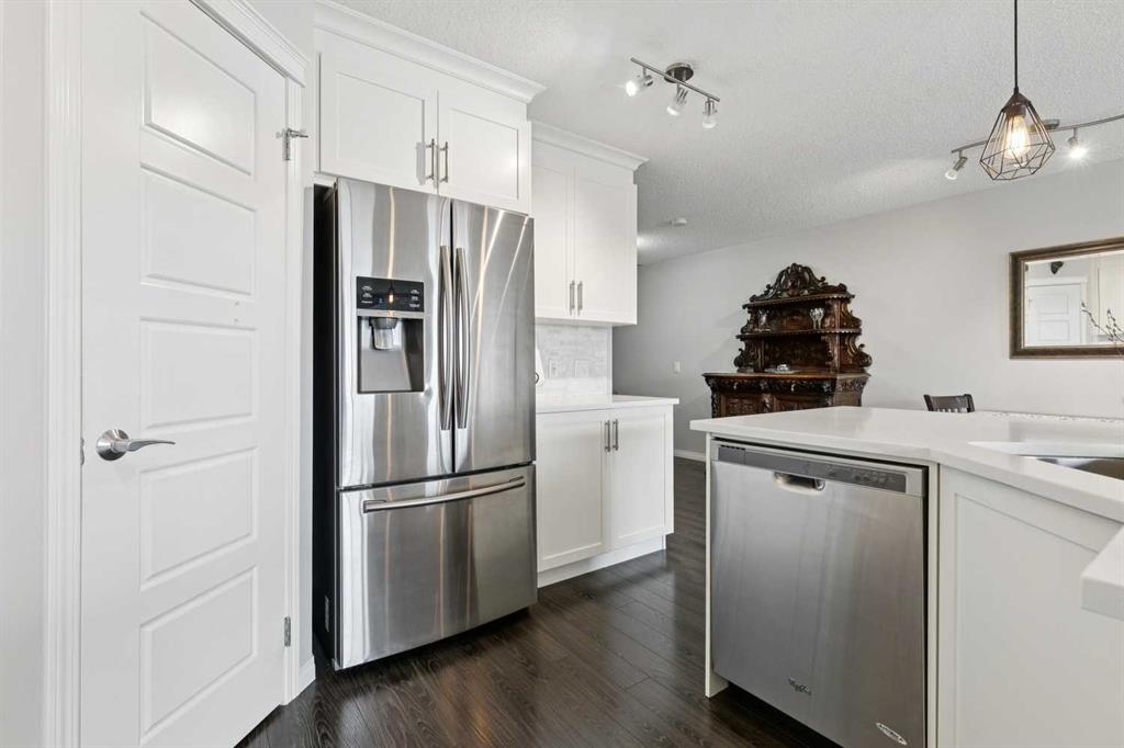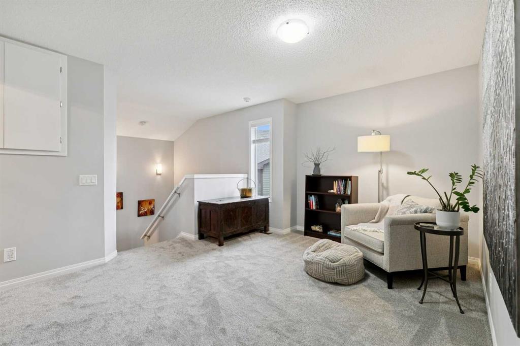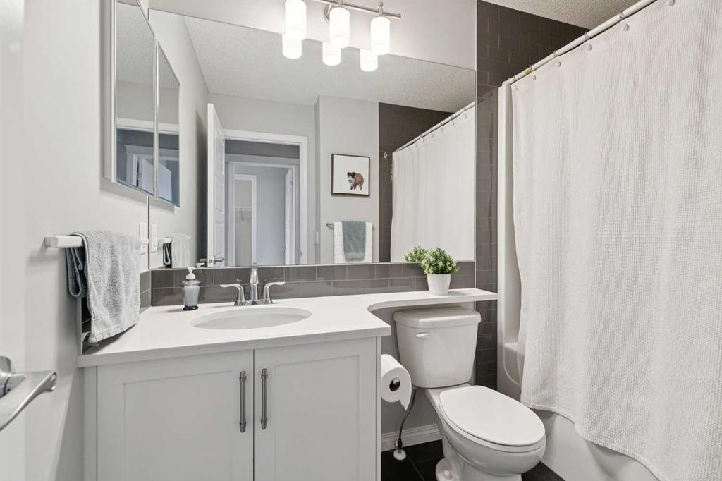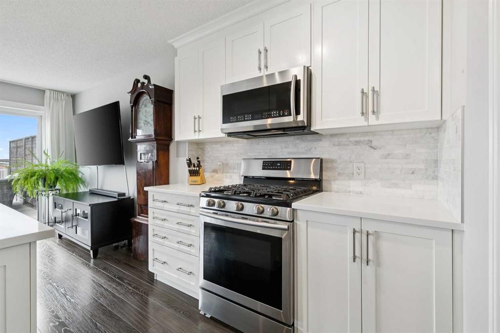 Huge pie lot on a cul-de-sac, backing onto a greenspace, in a lake community, mountain and city views, and air conditioning…..When I say it is all here I am not kidding!!! This home was built by Brookfield and features vinyl plank flooring, upgraded carpet, quartz countertop throughout including the upper level laundry room, and matching tile in the front entry, laundry room and all the bathrooms. The main level offers a living room that is very bright and ideal for the young family. There is a good size dining area for hosting the holidays. The kitchen offers a large pantry, huge island with breakfast bar, stainless steel appliances, gas stove, quartz countertops, feature backsplash and sliding doors to the 20×20 cedar deck for the bbq season. There is a nice size bonus room up by the 2 spare bedrooms that could be used as a children’s play area, tv room or workout area. Basement has a family room and a full bathroom. There is an egress window allowing this area to also be used as a teenager bedroom with ensuite. Primary bedroom offers vaulted ceilings, walk-in closet with custom organizer and a 4pc bathroom with linen closet. Two spare bedrooms are a great size with views of downtown and the greenspace. One of them has a large walk in closet. Fully fenced pie shaped backyard has had $20,000 worth of landscaping done and the 20×20 cedar deck has aluminum railing for no maintenance. Backing onto a huge off leash dog park with ponds to add to your enjoyment. Full lake access and a short drive or walk to the shopping areas.