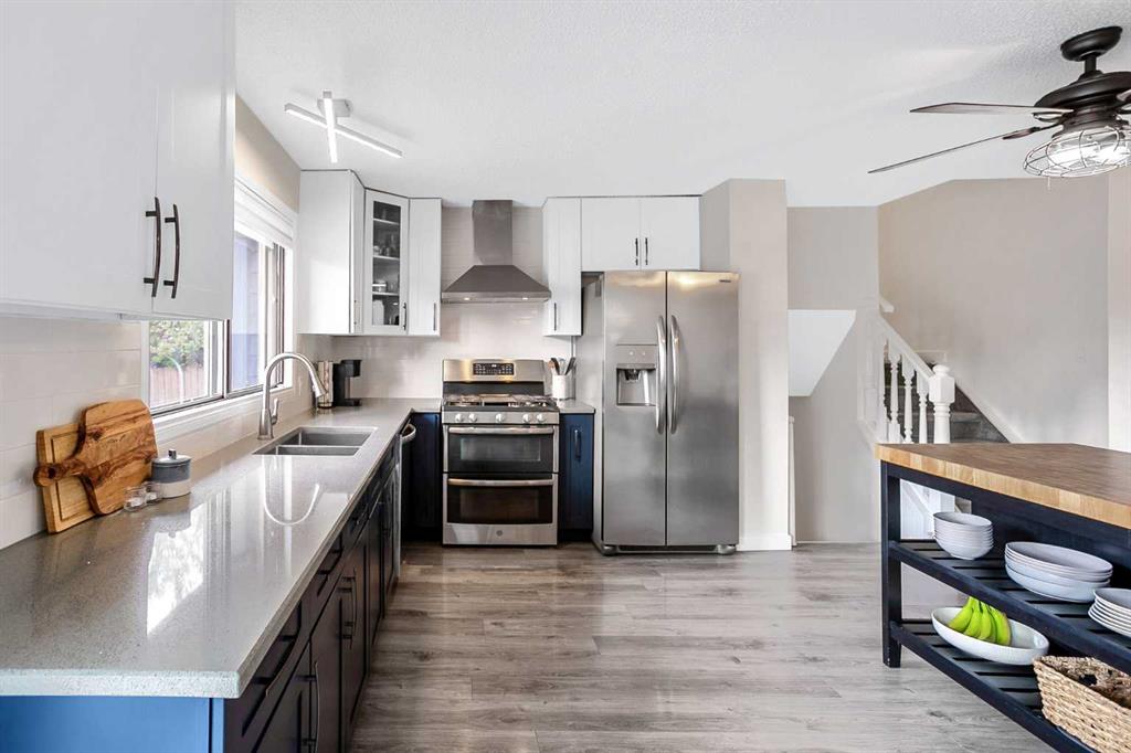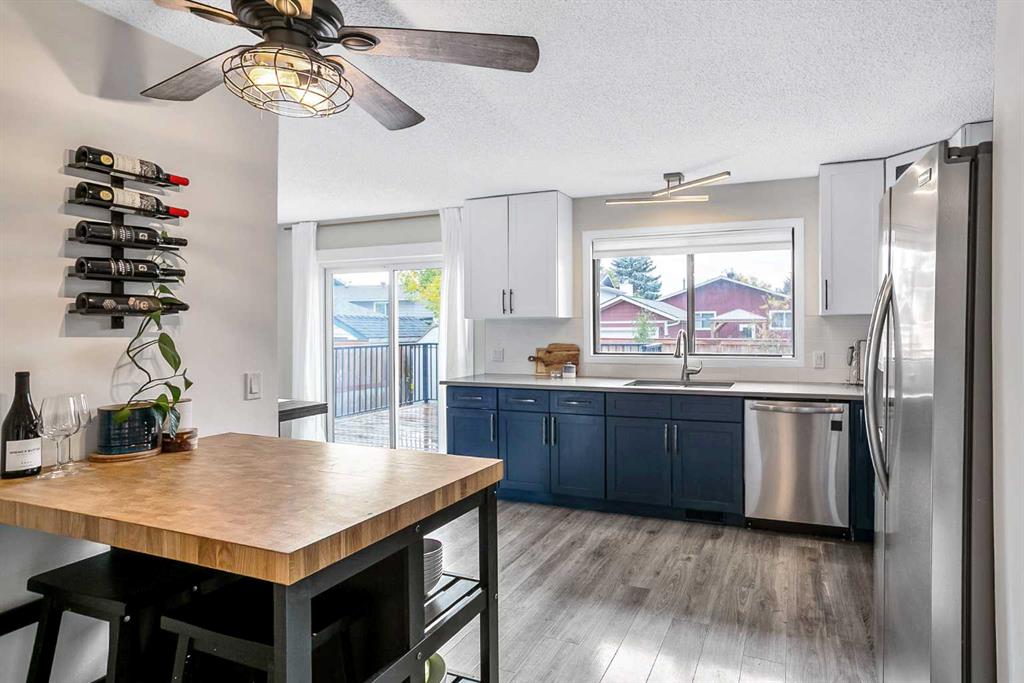 Welcome to this tastefully updated 4-level split with a fully finished walk-up basement in the highly desirable lake community of Sundance. Step inside to an inviting living room that flows into the spacious dining area with direct access to the backyard, perfect for entertaining. The beautifully updated kitchen features two-toned cabinetry, quartz countertops, stainless steel appliances, and a gas range. Upstairs, you’ll find three generously sized bedrooms, a 4-piece bathroom, and convenient linen storage. The primary retreat easily accommodates king-sized furniture and includes a gorgeous 3-piece ensuite. The third level offers additional living space with a cozy family room featuring a gas fireplace, a 3-piece bathroom, and a versatile office nook. The fully finished walk-up basement includes the laundry area and two additional rooms that could easily be converted into bedrooms with the addition of windows, providing great flexibility for growing families or guests. Outside, enjoy the sunny west-facing backyard, complete with a large 2-tiered deck, storage shed, full fencing, and alley access. The front double garage offers plenty of space to keep your vehicles and toys secure. Recent mechanical updates include a new furnace (October 2025), new dishwasher (2024) and hot water tank (2021), offering added peace of mind. Located in the sought-after community of Sundance, you’ll love having access to the private 4-season lake, nearby amenities, established schools, and quick access to major roadways. This is a fantastic opportunity to enjoy the best of lake community living.