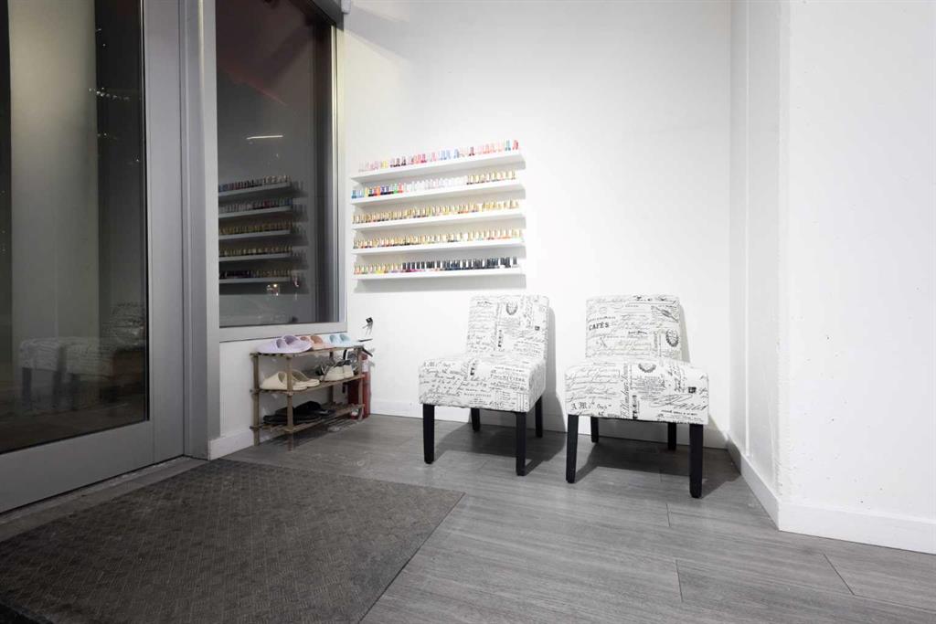 The salon also includes a private treatment room currently equipped for lashes, waxing, and esthetic services, opening multiple additional revenue streams beyond nail care. An extensive wall-mounted gel polish display with 100+ colours is available, a fully stocked back-of-house prep and storage area, in-suite washer/dryer, and a clean accessible washroom complete this exceptional package.
