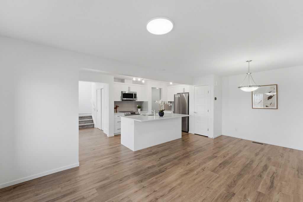 Welcome to this beautifully designed 3-bedroom, 2.5-bathroom corner five-plex townhouse in the vibrant Carrington community—offering comfort, style, and the added bonus of no condo or HOA fees. As a desirable corner unit, this home is filled with natural light thanks to an abundance of large windows throughout. Step onto the inviting front porch and into a bright, open-concept main floor that seamlessly connects the living, dining, and kitchen areas—creating a spacious and welcoming atmosphere perfect for both everyday living and entertaining. The chef-inspired kitchen features stainless steel appliances, a big functional island, and generous counter space to meet all your culinary needs. Upstairs, the spacious primary bedroom serves as a private retreat, complete with a walk-in closet and a 3-piece ensuite. Two additional well-sized bedrooms and another full 3-piece bathroom provide plenty of space for family or guests. Step outside to enjoy the huge rear balcony—ideal for summer BBQs, relaxing evenings, or morning coffee. The basement offers 650 sq. ft. of undeveloped space, ready for your custom design and future expansion. The oversized attached double garage provides excellent storage and vehicle protection from winter snow and summer heat, plus there is extra parking outside—perfect for guests or additional vehicles. Ideally located in sought-after Carrington, you’ll enjoy easy access to schools, parks, shopping, and essential amenities. Don’t miss your opportunity to call 1893 Carrington Blvd NW home—this exceptional property won’t last long!