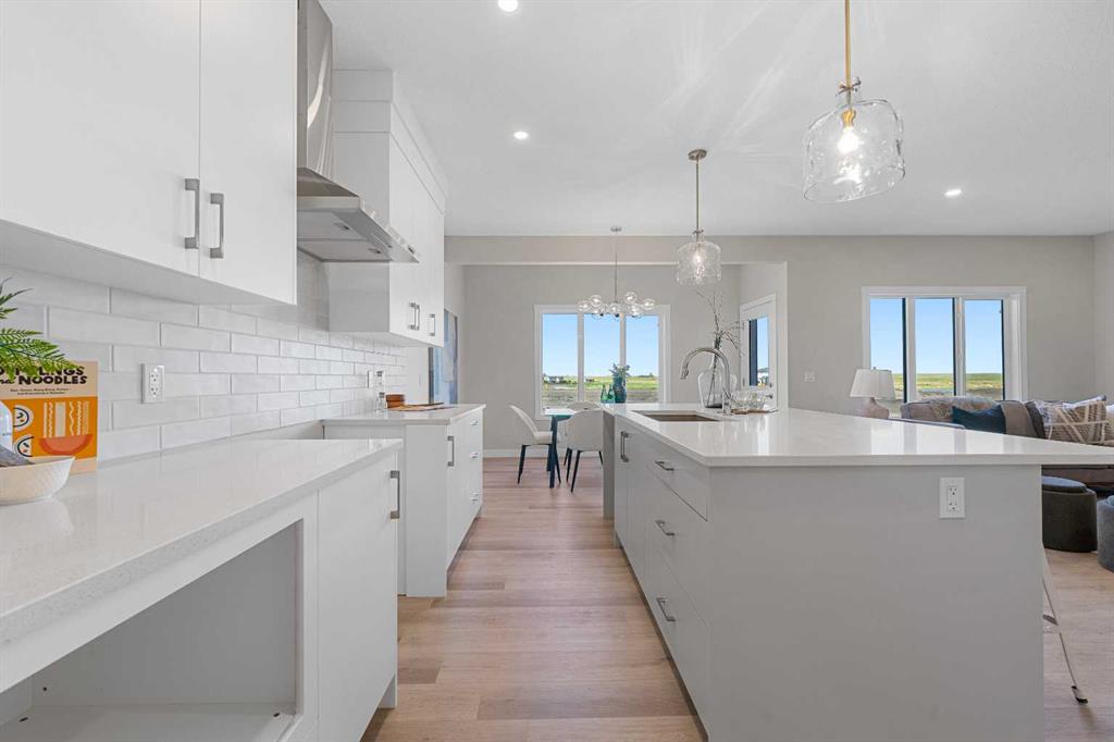 Brand New Genesis Home | The Jordan | Stunning Finishes | 2,136 SqFt | 3 Beds | 2.5 baths | Electric Fireplace | Gas Line to BBQ | Gas Line to Range | Built in Kitchen Appliances | Chimney Hood Fan | Quartz Countertops Throughout | Tray Ceiling in Upper Level Loft | Primary 5pc Ensuite with Double Vanity Sinks & Soaking Tub | Spindle Railing | 9Ft Basement Ceilings | Great Size Backyard | Front Attached Double Garage | Extended Driveway. Welcome home to your stunning brand new home built by Genesis Homes. This 2-storey family home boasts 2,136 SqFt throughout the main and upper levels with an additional 811 SqFt in the unfinished basement. The front door opens to a grand foyer with closet storage and space for bench seating. The main level has a welcoming open floor plan with high ceilings and large windows that emphasize the natural light that fills the home. The sparkling kitchen is outfitted with quartz countertops, built-in appliances, a chimney hood fan and a centre island with barstool seating space. The walkthrough pantry connects the mud room and the kitchen making your grocery drops easy! The dining area is framed with large windows that overlook the backyard and a door that leads to the backyard where you have a BBQ Gas line. The living room is centred with an electric fireplace adding both style and comfort to the space. The main level is complete with a 2pc powder room. The interior is complemented by metal spindle railings, adding a touch of sophistication and durability to the stairways. Upstairs has plush carpet flooring throughout the 3 bedrooms and bonus room. The central bonus room has tray ceilings and is the perfect space to unwind in the evenings with the family. The primary bedroom is a luxurious retreat paired with a deep walk-in closet and private 5pc ensuite bath. The ensuite has a deep soaking tub, walk-in shower with tiles to the ceiling and a double vanity. Bedrooms 2 & 3 are both a great size and share the main 4pc bath with a tub/shower combo. The upper level laundry room is every home owner’s dream as its located near all the bedrooms! Downstairs, the unfinished basement is a blank canvas to be designed as your family needs. The large backyard gives you a great outdoor entertainment space when you host in the warm summer months. The Smart Home package provided to you is an added bonus to your convenience. The front attached double garage and driveway provide you with parking for 4 vehicles at any time. Located just 20 minutes from the heart of Calgary – the Clearwater community resides in the beautiful city of Chestermere. Benefiting from it’s quiet location, multiple recreation and retail amenities and it’s acclaimed lake with beaches and motor vehicle access. Book your showing at this gorgeous Genesis Home today!