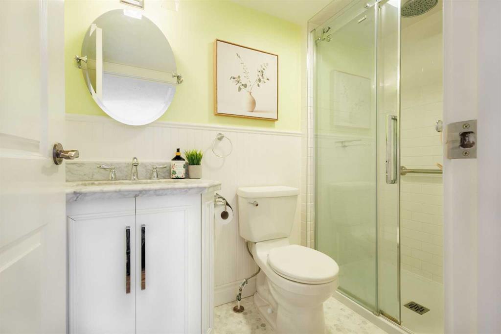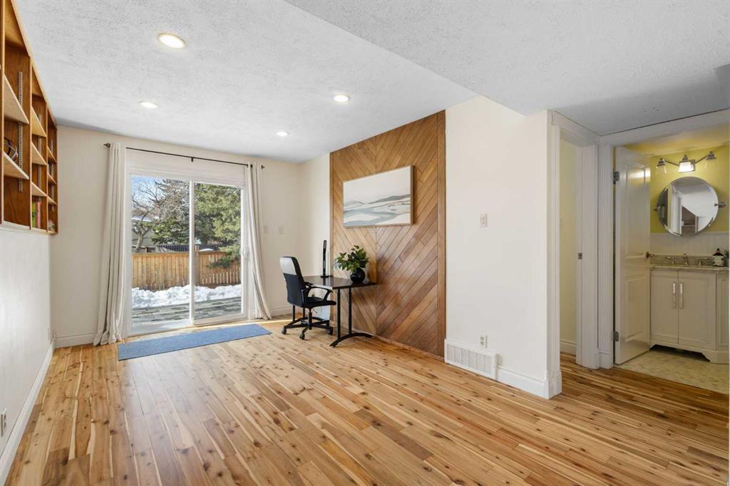 Upstairs, you’ll find a full bathroom and two generous bedrooms, including a spacious primary retreat with a walk-in closet. Just a few steps down, the bright 3rd-level walkout offers large windows, customized built-in shelving, a third bedroom, and a beautifully renovated bathroom complete with a stand-up shower, dual shower heads, designer subway and hexagon tile, a stylish vanity, and classic wainscotting. Sliding glass doors provide direct access to the patio and the beautifully landscaped southwest backyard.
