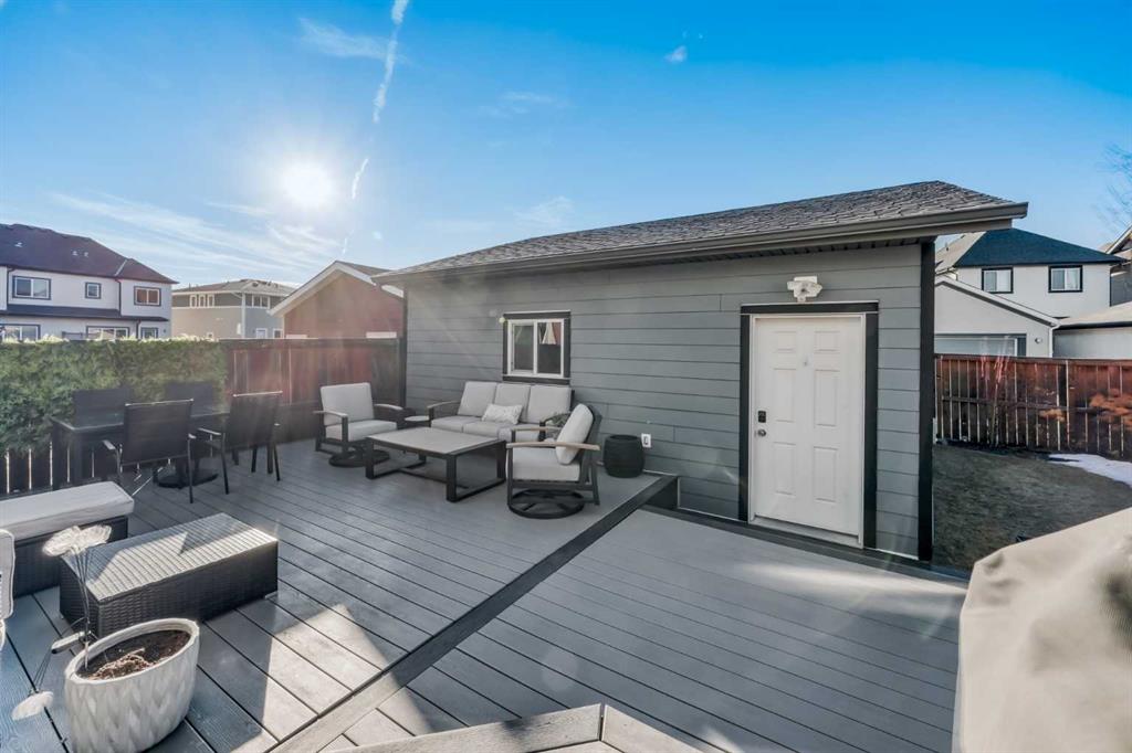 Welcome to this beautifully finished home in the highly desirable lake community of Mahogany! Located just two blocks from the stunning 22-acre wetlands and close to schools, playgrounds and the lake—an ideal setting for families and outdoor enthusiasts. Thoughtfully upgraded throughout, the home features modern lighting, stylish countertops, and built-in fireplace. The main floor offers one of the most sought-after layouts, complete with two inviting sitting areas, a spacious dining room perfect for gatherings, and a huge kitchen island that serves as the heart of the home. Upstairs, the serene master retreat provides a peaceful escape with its walk-in closet and luxurious 5-piece ensuite. Two additional bedrooms, a bathroom and upstairs laundry complete the upper level, providing flexible space for family or guests. The newly finished basement (2024) enhances the home with a bright rec room/flex space, an additional bedroom, and a contemporary 3-piece bathroom—ideal for hosting visitors, hobbies, or movie nights. Outside, enjoy sunny afternoons on the oversized composite deck, perfect for entertaining or relaxing. Additional value comes from the oversized heated garage with 8′ door. Full roof replacement completed in 2021 with hail-resistant shingles—an upgrade that offers peace of mind. With its thoughtful upgrades, functional layout, and exceptional location near natural amenities and community conveniences, this home presents an outstanding opportunity in one of Calgary’s most sought-after neighborhoods. Call your favorite realtor, and come see this wonderful family home today!