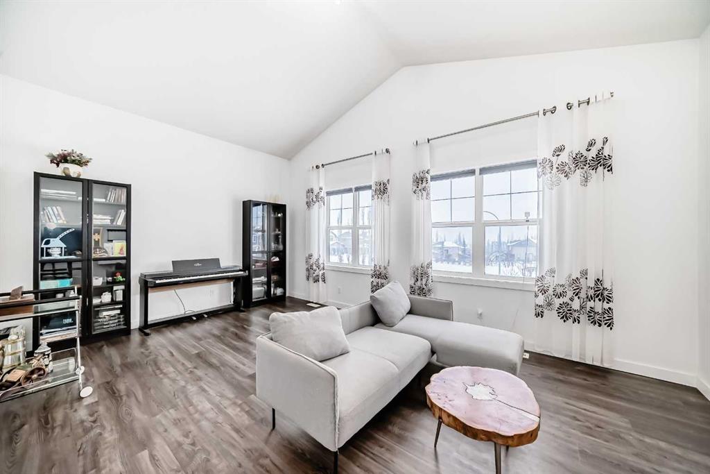 **OPEN HOUSE: February 21st 1-3pm**Step into this architecturally striking two-storey home, where style meets everyday living. Boasting 4 bedrooms, 4 full bathrooms, a vaulted bonus room, main-floor office, PERMITTED basement development, and a finished heated garage with abundant storage, this home is thoughtfully designed for modern family life, with central vacuum rough-in already in place.