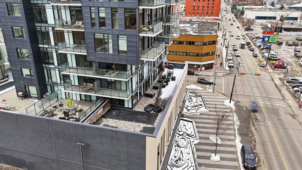Welcome to 6th and Tenth, where stylish design, elevated living, and exceptional investment potential come together in one of Calgary’s most vibrant locations. Perched on the 19th floor, this striking end unit offers breathtaking panoramic views, enhanced privacy, and an abundance of natural light through dramatic floor-to-ceiling windows. Inside, the space is a true showpiece, featuring a sleek, modern interior with exposed concrete ceilings and feature walls, vinyl plank flooring, and tall ceilings, all creating a sophisticated, loft-inspired feel. The open-concept layout is both functional and beautiful, anchored by a designer kitchen with stone countertops, stainless steel appliances, and a gas cooktop, seamlessly flowing into the living and dining areas. Step out onto the expansive private deck and take in the incredible city skyline and mountain views – the perfect backdrop for morning coffee or evening cocktails. Urban living at its most impressive! Offered FULLY FURNISHED, this is a rare turnkey Airbnb opportunity – ready to generate income from day one or serve as your own luxurious city retreat. Additional features include in-suite laundry, central air conditioning, titled underground parking and titled storage unit. Residents of 6th and Tenth enjoy an exceptional lifestyle with access to premium amenities including a fitness centre, outdoor pool and sky lounge, concierge service, and a beautifully designed social room for entertaining. The building also offers the added convenience of garbage chutes on every floor. Located steps from Calgary’s best restaurants, cafés, shopping, transit, and the Stampede grounds, this is sophisticated inner-city living with unmatched energy, style, and flexibility. Don’t miss out on this amazing opportunity! Click on the 3D tour icon to view the floor plan.