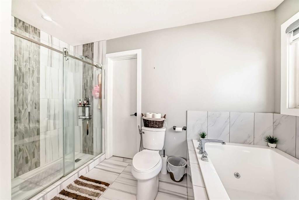 ***BEAUTIFUL FAMILY HOME WITH 4 BEDROOMS ON UPPER LEVEL + 2 BEDROOM LEGAL BASEMENT SUITE TOTAL OF 3251 SQFT LIVING SPACE *** Welcome to this stunning and spacious family home located in the highly sought-after community of Bayside in Airdrie. Thoughtfully designed and better than new, this property offers exceptional comfort and functionality with a total of four bathrooms and eye-catching stucco exterior. The main floor features a versatile office/den, a convenient 3-piece full bathroom, and a beautifully upgraded gourmet kitchen complete with a gas stove, stainless steel appliances, modern fixtures, and a well-organized pantry. The dining area opens onto a generously sized deck, perfect for entertaining. The living room showcases a cozy gas fireplace with a built-in entertainment feature, creating a warm and inviting space. Upstairs, a striking skylight fills the home with natural light. You’ll also find a spacious bonus room, a bright laundry area with stainless steel washer and dryer, and a large primary bedroom featuring a walk-in closet and a luxurious 5-piece ensuite. The oversized double attached garage provides ample room for parking and additional storage. Exterior upgrades include Gemstone lighting, adding both style and convenience. The fully developed LEGAL basement offers a separate entrance leading to a well-designed, self-contained 2-bedroom legal suite with its own separate furnace system (city-approved). Whether used as a mortgage helper or for extended family, the possibilities are endless. With a fully landscaped and fenced yard, this move-in-ready home truly has it all—just unpack and enjoy.