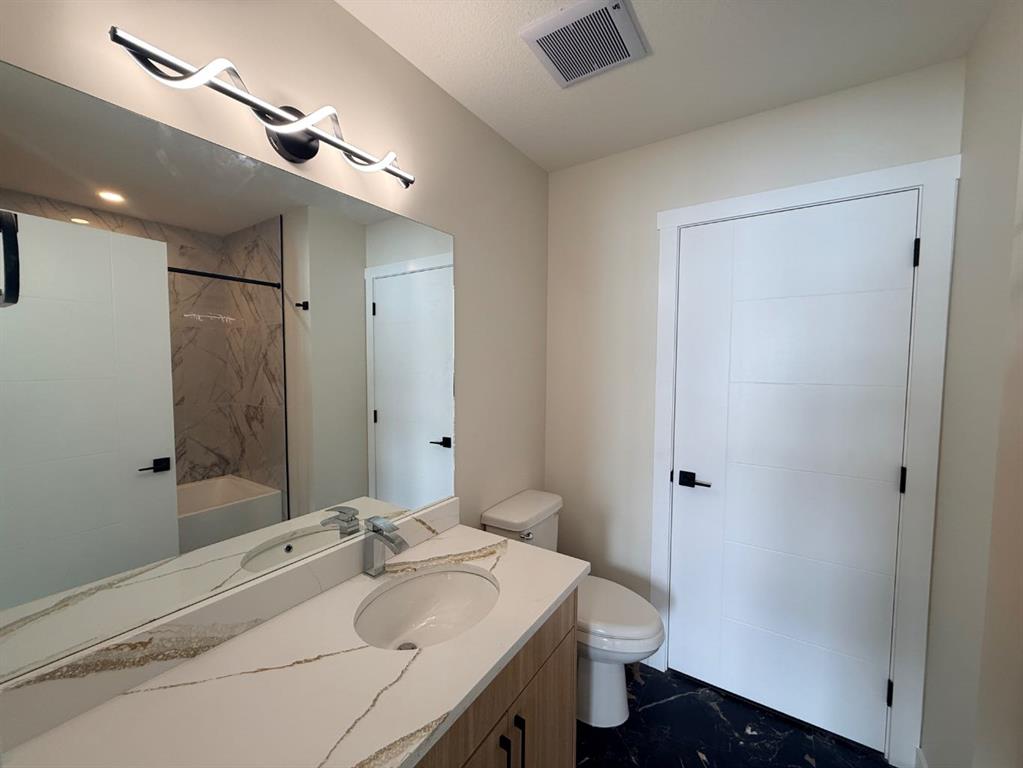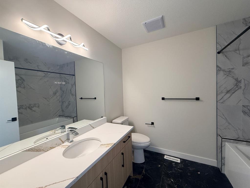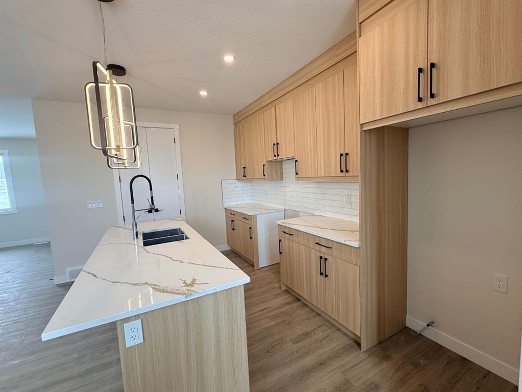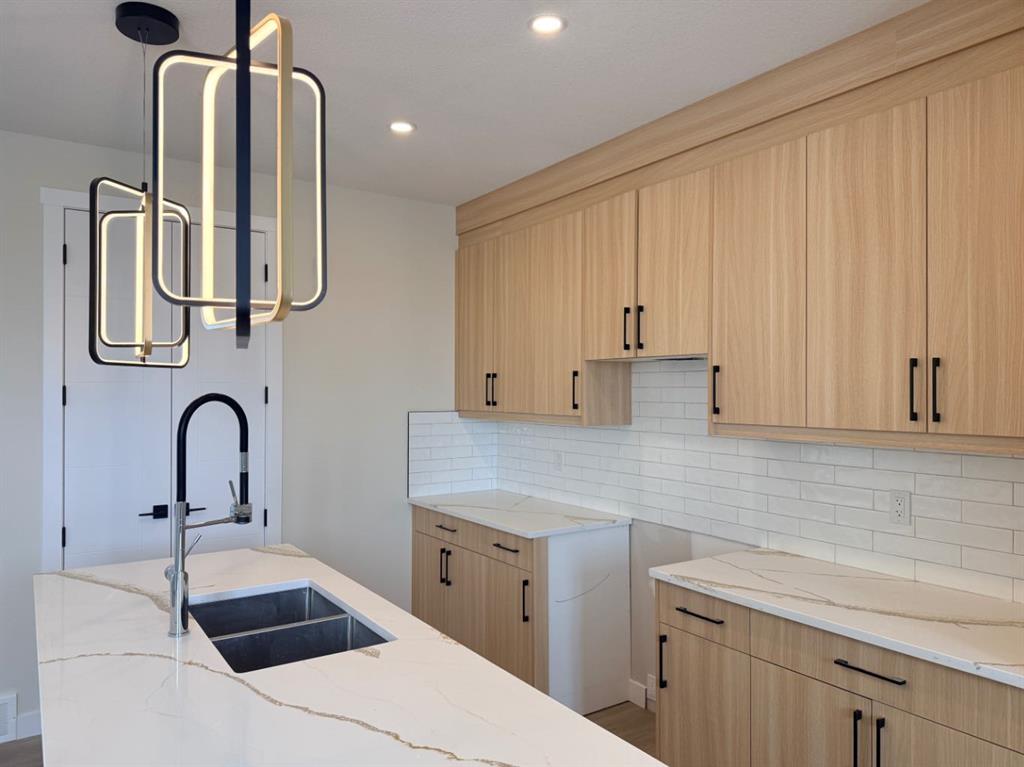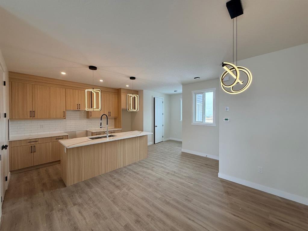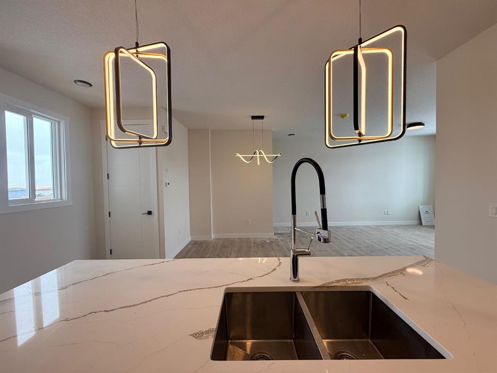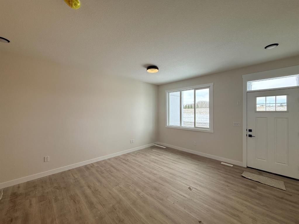 NO Condo Fee! This new built home has spacious 3 bedrooms and 2 full bathrooms upstairs and a half-bathroom on the main floor, one main floor den-ideal for a home office, modern kitchen, quartz countertops and island, front porch, back yard and a sun deck. Well designed living space with modern appliances and custom finishes, 9 feet ceiling on the main floor and basement. Rear lane access and 2 car concrete parking pad. Walkout basement with separate entrance. Crossfield is a quiet and rapidly growing town which has well rated one elementary and one high school, day care, golf course, parks, playgrounds, and other amenities. Strategically located near Airdrie that’s 10 minutes drive to Superstore, 15 minutes to Balzac, 25 minutes to Calgary Airport and close to Highway 2 for fast and easy commuting. Don’t miss the opportunity – book you’re showing today!