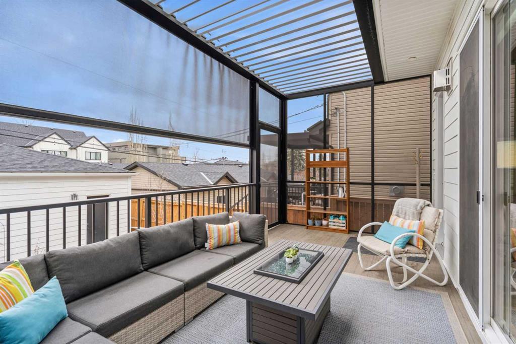 This exceptional, modern farmhouse style home, where architectural refinement & timeless design converge on a quiet, tree-lined street in the heart of Altadore. With 2,836 sq ft of curated living space, this stunning four-bedroom, 3.5 bath residence seamlessly blends upscale finishes with thoughtful functionality. Soaring 10 foot flat ceilings, engineered white oak wood flooring throughout, & striking 8 foot doors enhance the sense of openness & grandeur. Expansive windows flood the open concept main floor with natural light, illuminating a front dining area adorned with a detailed feature wall that flows effortlessly into the chef-inspired kitchen. The kitchen is designed for both everyday living & elegant entertaining & features custom, full height white cabinetry, subway tile backsplash, quartz countertops, a massive two-toned island with an eating bar & premium appliances, including a Bertazzoni gas range, dual full-sized fridge & freezer & drawer style microwave. The inviting living room offers a warm refined atmosphere, with a modern gas fireplace & custom built-ins. Large patio doors open to an expansive rear deck with a Suncoast enclosure featuring a motorized louvre roof and retractable screens – offering all-season outdoor living with adjustable sun, shade, and airflow. The mudroom with custom built-ins & a stylish powder room complete the main level. A dramatic architectural staircase with extra wide wood treads & sleek glass walls leads to the upper floor. The primary suite showcases a tray ceiling and a spacious walk-in closet. A sliding barn door leads to the spa-inspired ensuite, which offers in-floor heating, dual vanities, a freestanding soaker tub, an oversized glass-enclosed shower & a private water closet, delivering a serene experience. Two additional bedrooms, one with a walk-in closet, share a beautiful bathroom, while a dedicated laundry room with cabinetry & sink ensures everyday convenience. The fully finished basement is designed for both relaxation & entertaining, featuring in floor heating, a generous family room, a designer wet bar complete with open shelving, upper & lower cabinetry, & beverage fridge area, plus a fourth bedroom with a large walk-in closet & full bathroom. Enjoy seamless outdoor living with a private front patio, perfect for summer evenings & entertaining. Features include central air conditioning, in-ceiling speakers, custom blinds with blackout in the upstairs bedrooms, plus a fully insulated, drywalled, heated double detached garage with a paved lane. Perfectly positioned in one of Calgary’s most sought-after communities, this residence offers an unmatched lifestyle with exceptional walkability. Enjoy being just moments from River Park, Sandy Beach Park, Monogram Coffee, the vibrant shops, restaurants & cafes of Marda Loop. Quick access to Crowchild, Glenmore & Stoney Trail. This is a meticulously crafted home that delivers sophistication, comfort, and distinction at every turn.