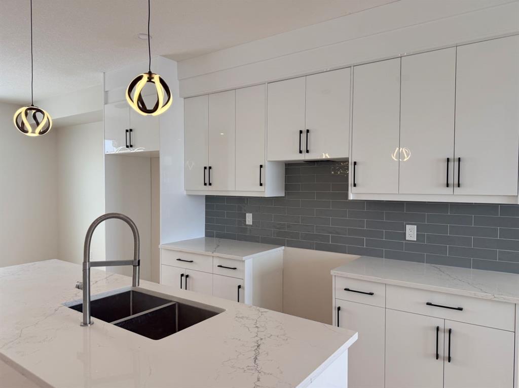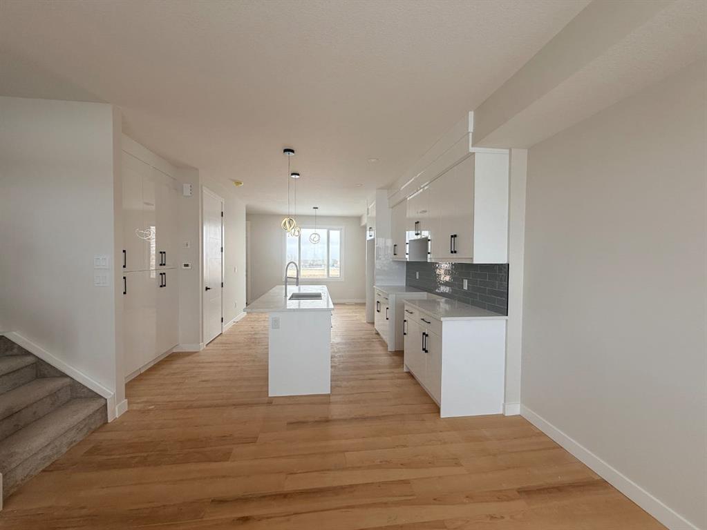 NO Condo Fee! This new built home has spacious 3 bedrooms and 2 full bathrooms upstairs and a half-bathroom on the main floor, modern kitchen, quartz countertops and island, front porch, back yard and a sun deck. Well designed living space with custom finishes and modern appliances, 9 feet ceiling on the main floor and basement. Rear lane access and 2 car concrete parking pad. Walkout basement with separate entrance and side alley access. Crossfield is a quiet and rapidly growing town which has well rated one elementary and one high school, day care, golf course, parks, playgrounds, and other amenities. Strategically located near Airdrie that’s 10 minutes drive to Superstore, 15 minutes to Balzac, 25 minutes to Calgary Airport and close to Highway 2 for fast and easy commuting. An ideal opportunity for first time buyers or investors – book you’re showing today!