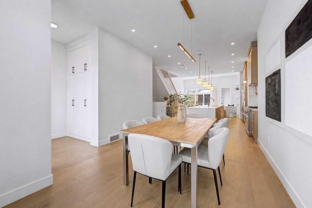 Absolutely STUNNING CURB APPEAL on this 2000 SQ. FT. two-storey (2800 total) in desirable ALTADORE! Classic FULL-BRICK facing & TURRETED roofline, BRICK WINDOW LEDGES, BLACK WINDOWS and MATCHING BLACK METAL ROOFING complete this gorgeous front elevation! Tell your guests to pull up to the nicest-looking house on the street & ring the doorbell! Come see 1935 43 Ave SW! Built in 2022, this home is beautiful and move-in ready! Mature trees grace this community and this front lawn, plus a paver patio, perfect for summer socializing with the neighbours. Step in the front door and you will instantly appreciate 10′ CEILINGS, 8′ interior doors and extensive ENGINEERED HARDWOOD flooring (running through the main level, upper level & both staircases)! Do you like to entertain? How about an ISLAND THAT IS ROUGHLY 16′ LONG with stylish STONE COUNTERS, completed by ‘WATERFALL’ end panels! Plenty of room at the island, and in the SPACIOUS EATING AREA where you can comfortably seat the entire family! Fantastic kitchen, with perimeter CABINETS TO THE CEILING, ELEGANT CROWN MOULD DETAILING, UNDER-CABINET LIGHTING, plus STAINLESS-STEEL APPLIANCES including a fantastic SIX-BURNER GAS-STOVE for those delicious meals you like to serve. HUGE FRIDGE, WALL OVEN and BUILT IN MICROWAVE! The kitchen also features a CUSTOM VENTED HOOD over the stove, SOFT-CLOSE drawers, PULL-OUT SHELVES and an ADDED SERVING COUNTER with beverage fridge adjacent to the staircase. Enjoy a quiet evening in the living room with a cozy gas fireplace or step out the triple panel slider doors to your back deck for a summer BBQ (also accessible through the mudroom). When you park in the double garage – enter through the back mudroom (with BUILT-IN LOCKER units). For a game or an evening movie, head downstairs. The lower level has another bedroom and full bathroom, office space (with built-in shelving) and a bar area siding onto the rec room. IN-SLAB HEAT keeps your basement toasty all year round! The upper floor of this beautiful home has three spacious bedrooms, laundry and two bathrooms. The primary bedroom is three steps up, giving separation from the rest of the upper level. It also boasts a spa-like ensuite, with deep soaker tub and fully tiled steam shower (with inset wall niche for organization), plus walk-in closet with organizers. You will love the south-facing balcony off the primary bedroom for a quiet start to your day, or some sunshine in the afternoon. This home is beautifully finished with ‘rose-gold’ accents on the plumbing and light fixtures. Generous built-ins and added cabinetry storage spaces throughout the home. Large windows for plenty of natural lighting. The community of Altadore borders east & south to vast greenspaces, connecting you to river pathways, Glenmore Athletic Park, Glenmore Aquatic & Fitness Centre plus reservoir pathways where you can walk or cycle as much as you please! Perfectly located and beautifully finished. Book your showing today!