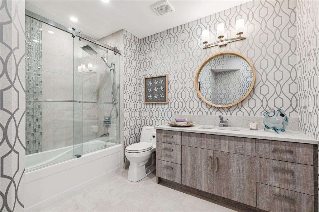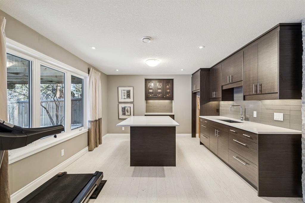 The fully finished walkout basement expands your living space with a fifth bedroom with custom cabinetry built ins, a spa-inspired bathroom with a walk in shower, a generous recreation area, and a full second kitchen offering modern custom cabinetry throughout and custom quartz countertops. — offering excellent flexibility for extended family or future potential (subject to city approval and permitting).