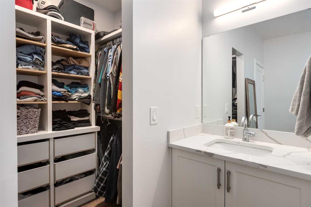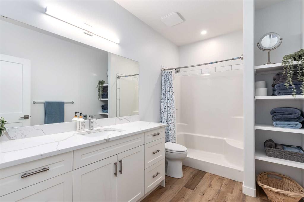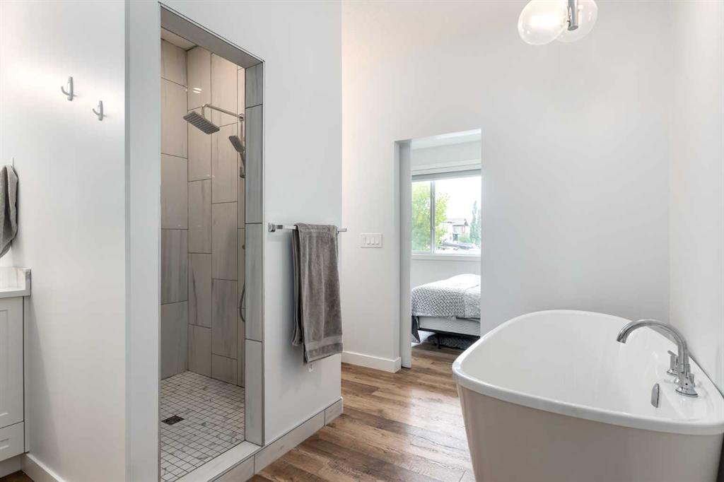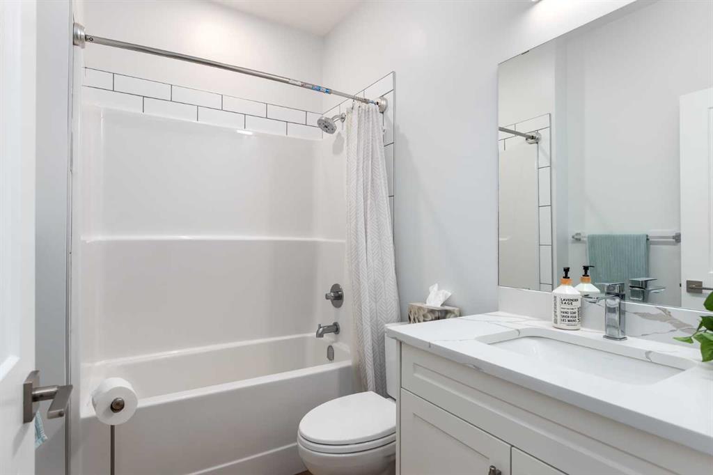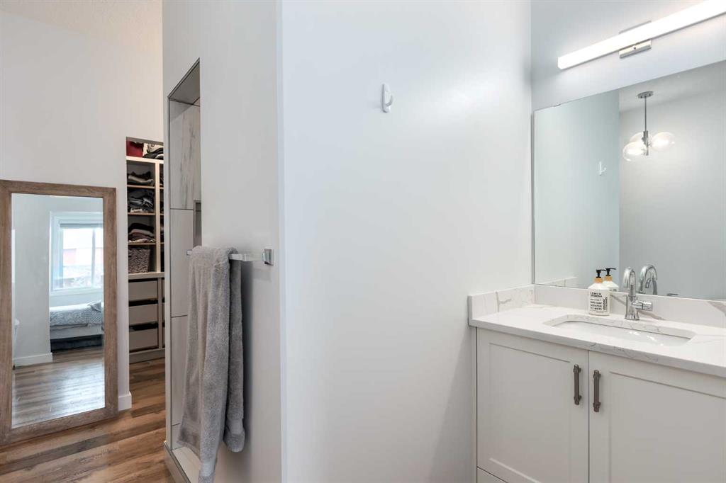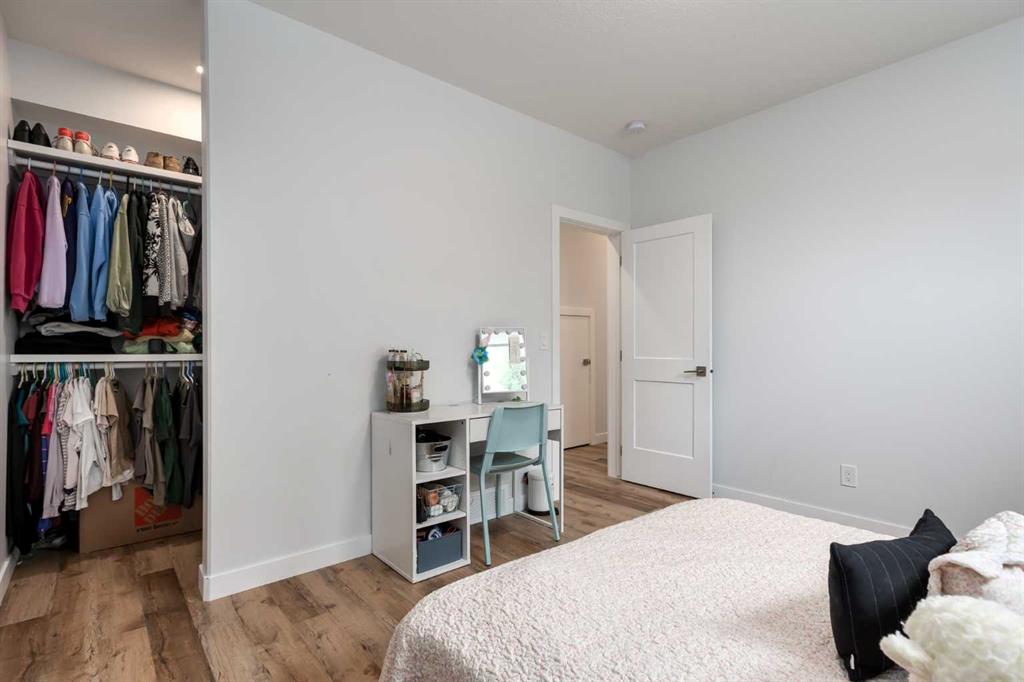 Five bedroom, 1400 sq ft high quality bungalow designed for a family. This home has an exceptional kitchen with beautiful high-end finishes, quartz counters and backsplash, large island, and an over-the-stove pot tap. The home is flooded with natural light and the dining room opens onto a private, covered upper deck. This level also has two bedrooms, including the spacious primary bedroom with a 5-piece ensuite and walk-in closet. Also on the main floor are the living room with cozy gas fireplace, 4-piece bathroom and a laundry room with built in cabinets. In the fully finished walk-out are 3 more bedrooms, 3-piece bathroom, and a 22′ x 17’ family room. The yard has a large patio, is fully fenced, private, low maintenance, and has alley access. There is an oversized 32’ x 24’ garage that is insulated, painted, and has excellent lighting. Extras in this home include in-floor heating, central air conditioning, high efficiency boiler, and a water softener. Please click the multimedia tab for an interactive virtual 3D tour and floor plans.