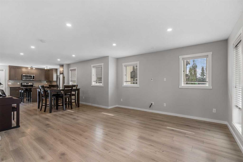 Inside, the open-concept main floor includes a spacious living area, an eat-in kitchen, and a separate dining space — ideal for a young family or professionals. Upstairs, the primary bedroom features a walk-in closet and a 4-piece ensuite, with two additional bedrooms, a full bathroom, and laundry completing the second level. Large windows fill the home with natural light, enhancing the clean, modern aesthetic.
