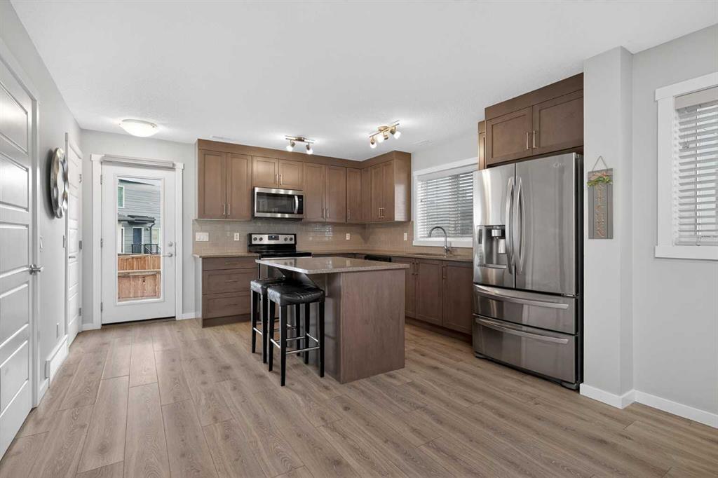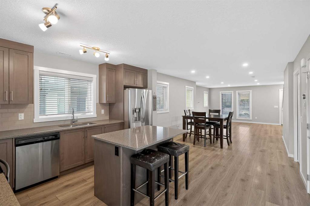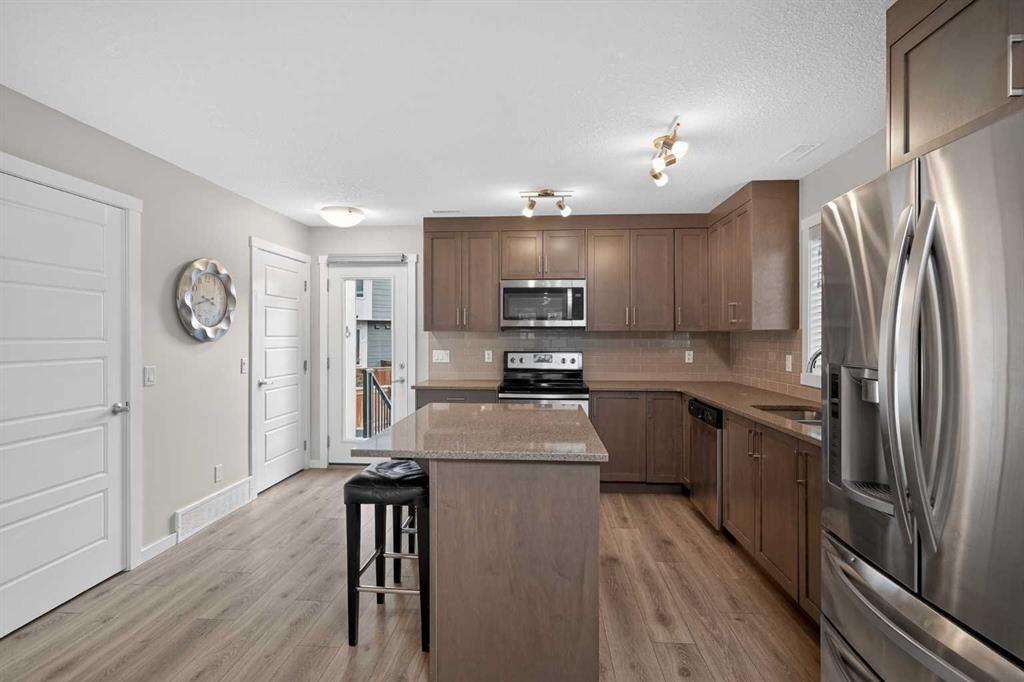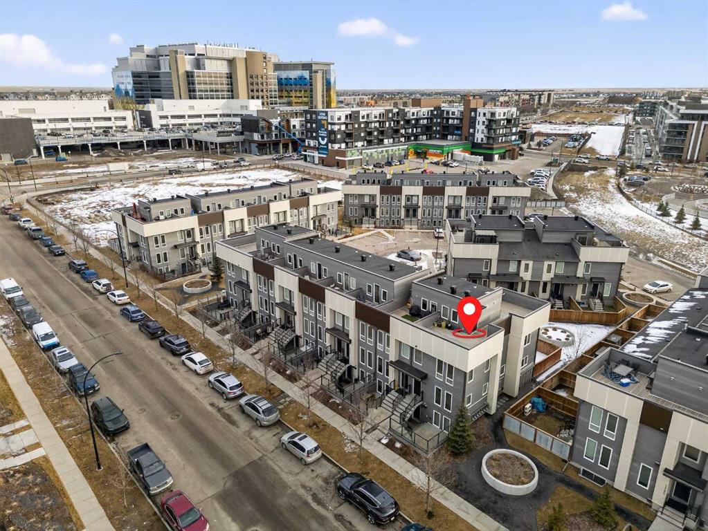 Welcome to Zen Urban District in Seton. This home is truly one of the most unique offerings in Calgary right now. A 600 square foot ROOF TOP PATIO WITH MOUNTAIN VIEWS sits atop a gorgeous END UNIT townhome that offers the best of urban living. Landscaped curb appeal welcomes you in to your open floor plan with beautiful vinyl plank floors that span throughout the main floor. Your living rooms is surrounded by large windows bringing in a ton of natural light and connects with your dining space and into your kitchen. Your chef inspired kitchen is adorned with granite counter tops, stainless steel appliances including a new fridge and stove as well as a large amount of cabinetry and drawers for storage. With the completely open concept you have the perfect space for entertaining or quiet nights at home with the family. A half bathroom finishes off the main level before heading upstairs. Your primary suite is huge and will easily fit a king size bed, additional bedroom furniture, and includes a walk-in closet and 4 piece ensuite. The second and third bedrooms are also a great size and overlook your backyard. A large 4 piece bathroom completes the 2nd level before heading the top level with flex room and your amazing rooftop patio. This rooftop patio is spectacular with the best of both worlds, one side facing east for morning coffee in the sun and one facing west with MOUNTAIN VIEWS and evening sunsets that will take your breath away. A fully fence backyard backing on to a small green space is something you do not find with townhomes often and gives you another space to enjoy the outdoors or for the kids to play. Seton is one of Calgary’s most desired communities with great schools, parks, pathways and the worlds largest YMCA at your doorstep. Do not miss out on your opportunity to own this amazing home!