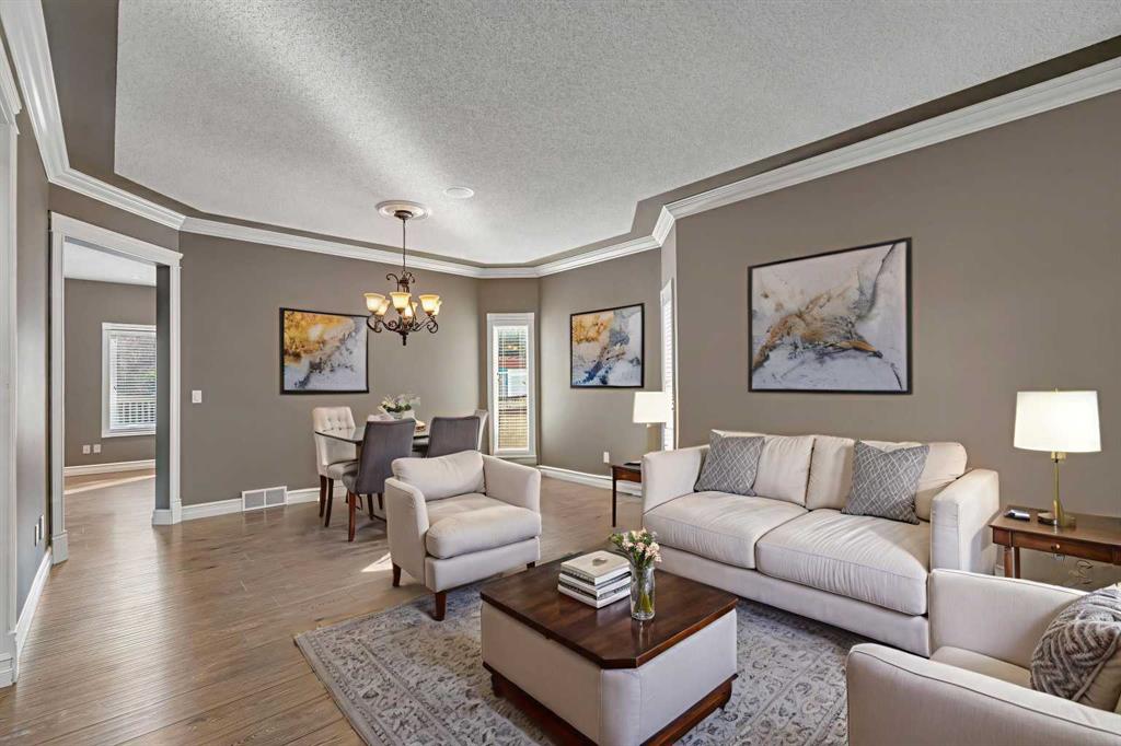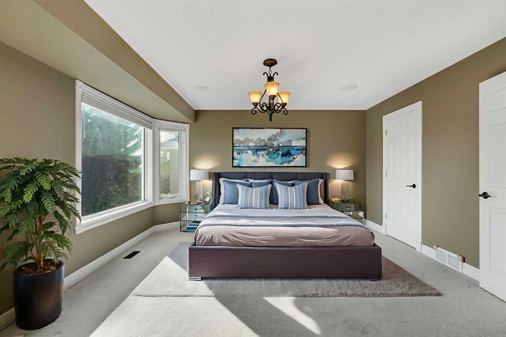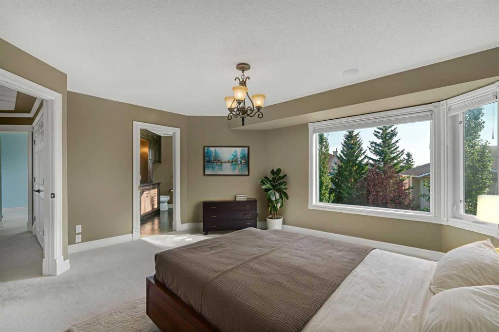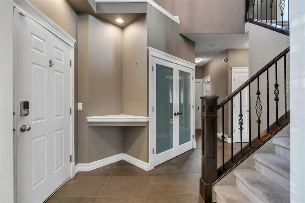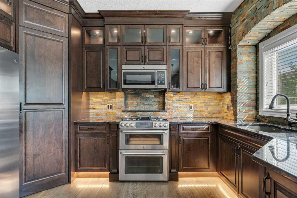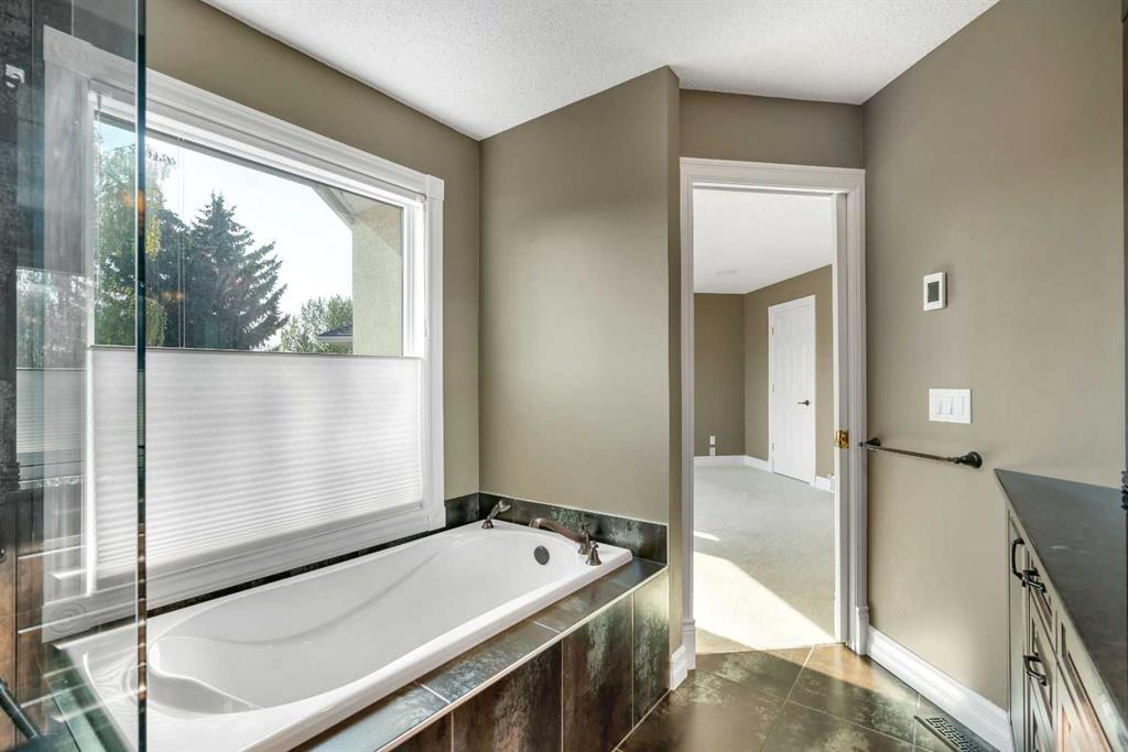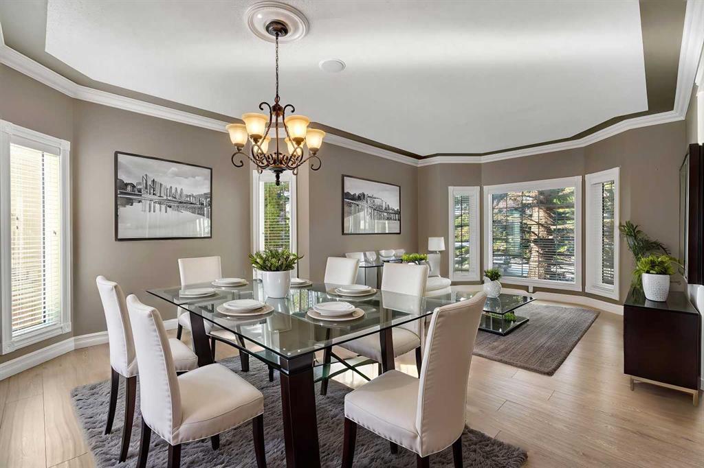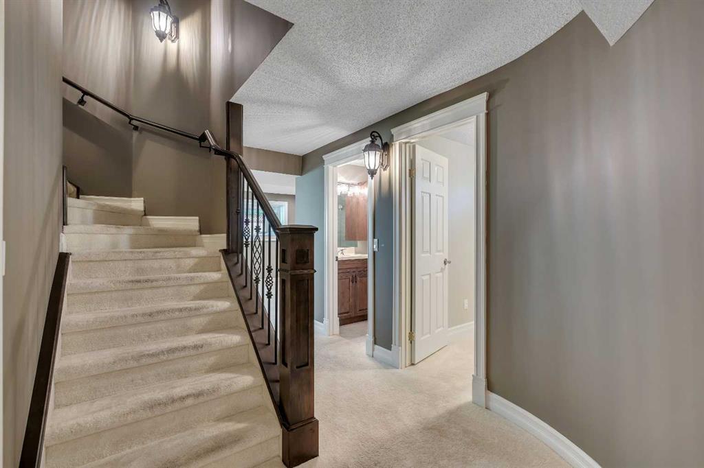 Welcome to this beautifully appointed estate home in the sought-after community of Christie Park. With 4+1 bedrooms, 3.5 bathrooms, and a fully finished basement, this property combines timeless design with generous living spaces, offering the perfect balance of elegance and everyday comfort. A tiled foyer sets the tone as you step inside, leading into the spacious formal living and dining room. Here, hardwood floors, crown moulding, and classic detailing create a refined setting for entertaining or hosting family gatherings. Beyond this space, the home opens into the heart of the main floor—the kitchen and family room. The kitchen impresses with rich, dark cabinetry, granite counters, full-height cabinets, under-cabinet lighting, stainless steel appliances, a corner pantry, and a striking stone feature wall. A sunny breakfast nook offers everyday dining with direct access to the large deck, where you can enjoy views of the south-facing backyard. The adjoining family room exudes warmth, with its floor-to-ceiling stone fireplace flanked by custom built-ins. A convenient 2-piece powder room completes the main level. Upstairs, you’ll find four generous bedrooms, including the expansive primary retreat. This luxurious suite features a walk-in closet and a spa-inspired ensuite with glass shower and soaker tub. A second 4-piece bath and upper-level laundry add to the thoughtful design. The fully finished basement offers an abundance of additional living space, with a sprawling recreation room anchored by a second fireplace, a fifth bedroom, a 3-piece bath, and plenty of storage. The exterior is just as inviting, with an oversized back yard highlighted by mature trees, an immaculate lawn, and a sense of privacy. Additional features include central A/C, elegant iron railings, and the rich tones throughout the home that contribute to its luxurious feel. Christie Park is one of SW Calgary’s most desirable communities, known for its quiet streets, parks, and pathways. Multiple schools are nearby, and you’ll enjoy quick access to Sarcee Trail, Westhills Shopping Centre, and Stoney Trail for easy commuting. This home is a true blend of sophistication, comfort, and convenience—perfect for families seeking an established neighborhood with estate-level living.