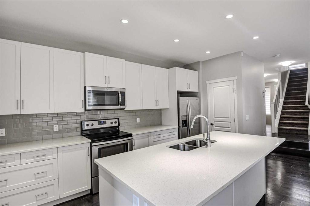 Opportunity knocks to own a beautiful & spacious house at an affordable price in a most sought after lake community of Mahogany. Over 2100 sq ft of living space! The front porch and stucco/stone exterior create a beautiful curb appeal to the house. Greeted by an oversized foyer, this home has an immediate feeling of comfort in an open design main floor with the focal lifestyle room showcasing a gas fireplace framed by two drop down beams. Bright & spacious living room and dinning room. Kitchen has a large quartz island, quartz counter tops & stainless steel appliances. The upper floor boasts a front bonus room, convenient laundry, two great sized bedrooms, and huge primary bedroom ( full ensuite and a huge walk-in-closet) situated at the back for a private & quite setting. Big side yard for outdoor entertaining, BBQ gas line and for kids and pets to play. Basement has a high ceiling, partitioned, drywalled and has an unfinished 3-pc bath. Have all the spaces to your creative ideas. The rear attached garage (25′ x 20′) is huge and insulated. This home is walking distance to the wetlands and the main beach. Mahogany is housed with both Public and Catholic schools. Mahogany School (K-5). Divine Mercy School (K-6)