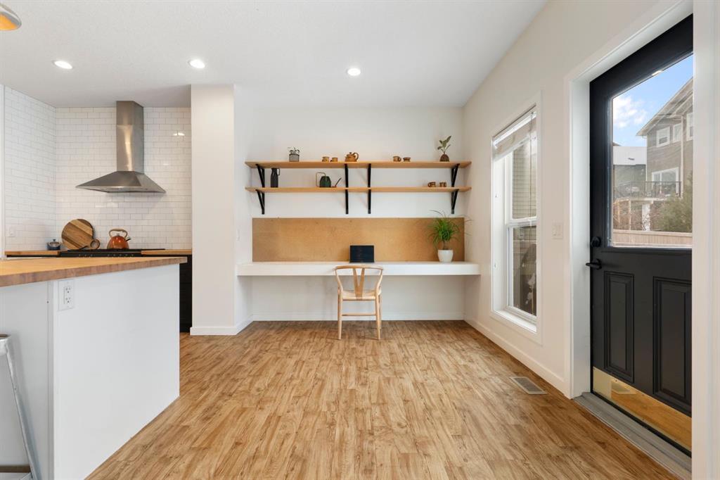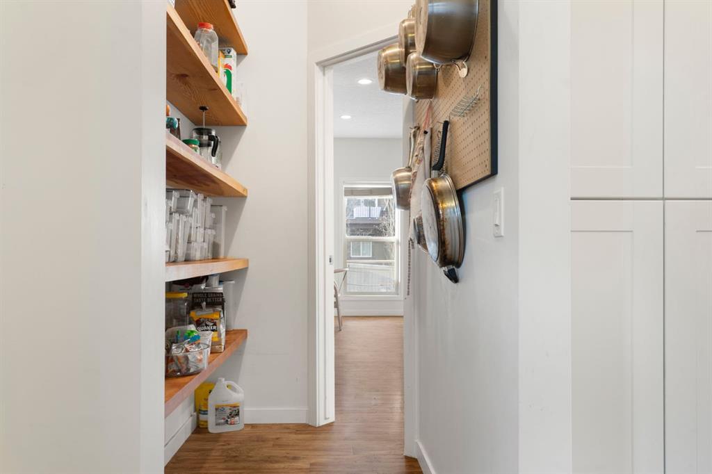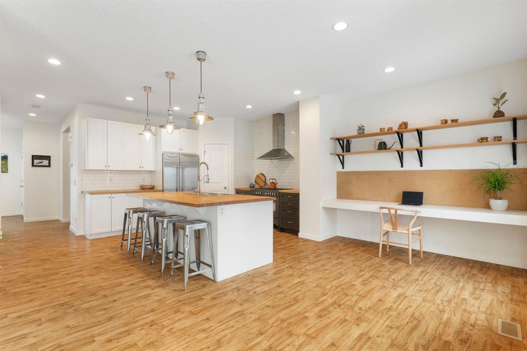 Step inside to an open-concept main floor inspired by clean Scandinavian design, featuring custom built-in cabinetry with integrated lockers—ideal for busy family life and effortless organization. The heart of the home is an entertainer’s dream, with a thoughtfully designed kitchen showcasing butcher block countertops, a six burner gas stove, stylish two-tone cabinetry, an elegant subway tile backsplash, and a convenient walk-through pantry.
