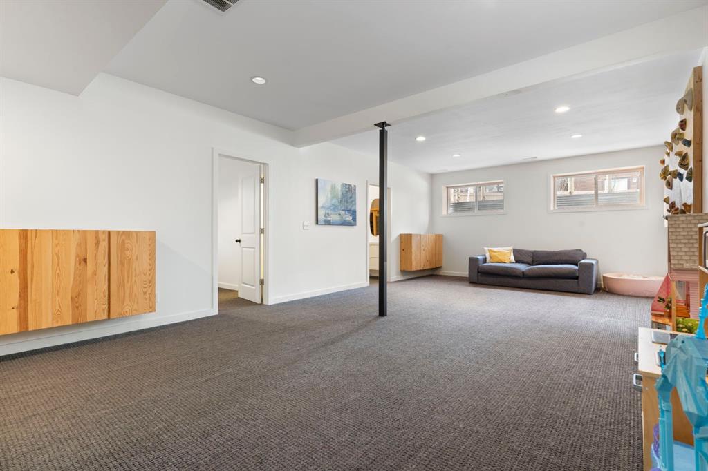 The fully developed basement offers a second open-concept entertainment space, an additional bedroom, and a three-piece bathroom complete with a sauna—perfect for relaxation or hosting guests.