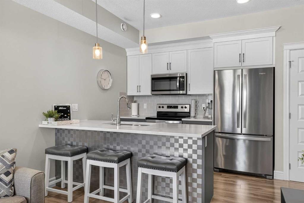 Proudly presenting 19613 45 St SE in the heart of Seton. This beautifully maintained unit shows like new and is currently operating as a successful Airbnb with approval in place for short term rentals, offering immediate income potential or flexible living. Located within walking distance to Seton’s vibrant Urban District, this modern and inviting home features a thoughtfully designed open concept layout with a calming colour palette and warm luxury vinyl plank flooring throughout. The stylish kitchen showcases two toned cabinetry, quartz countertops, stainless steel appliances, perfect for entertaining or everyday use. The spacious bedroom comfortably fits a queen sized bed with room for side tables while the bathroom is finished with a quartz vanity and a deep soaker tub creating a relaxing retreat. Additional highlights include titled parking, in suite laundry, storage and affordable condo fees. Seton is one of Calgary’s most desirable communities known for its walkability and access to top tier amenities including the YMCA, South Health Campus, grocery stores, restaurants, cinemas and transit. Whether you are looking for a turnkey Airbnb investment or a stylish place to call home, this property offers exceptional value in a prime location.