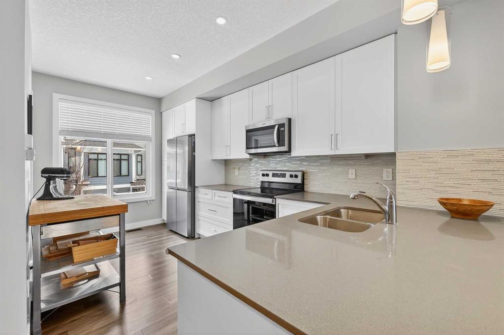 QUICK POSSESSION | DUAL PRIMARY SUITES | INDOOR PARKING – PLUS MAIN FLOOR DEN This trendy and spacious three-storey townhome in the desirable community of Seton offers outstanding value, a stylish modern design, and a convenient location close to transit, shopping, schools, walking paths, green spaces, dog parks, YMCA and more. Designed for both comfort and functionality, this home is ideal for professionals, families, or investors looking for low-maintenance living in a vibrant urban setting. The entry-level welcomes you with a large front foyer, a versatile hobby room or home office, extra storage space, and convenient access to the attached garage. The upper main level features an open-concept living space with luxury vinyl plank flooring and abundant natural light, creating a warm and inviting atmosphere. The spacious living room flows seamlessly into the well-appointed kitchen and dining area, making this home perfect for relaxing evenings or entertaining guests. The kitchen is a true standout, featuring white shaker-style cabinetry, quartz countertops, a stunning tile backsplash, upgraded stainless steel appliances, and a dramatic peninsula island with a flush eating bar and undermount sink. Just off the dining area, a sizeable west-facing balcony offers the ideal space for outdoor enjoyment with a covered BBQ area and peaceful mountain views. Upstairs, the home continues to impress with two generously sized primary bedrooms with private en-suites, a laundry closet with a stacked washer and dryer. The main primary suite is thoughtfully designed and includes a large walk-in closet and a luxurious private ensuite featuring quartz countertops and a glass-enclosed walk-in shower. This beautiful home combines contemporary aesthetics with everyday practicality, showcasing a modern décor palette, smart layout, and quality finishings throughout. With low-maintenance living, thoughtful upgrades, and unbeatable convenience, this property offers a fantastic opportunity to move into a vibrant and growing community. Seton is more than a neighbourhood—it’s a lifestyle. Live healthy and connected in a thriving, walkable community where you’re minutes from the South Health Campus, the world’s largest YMCA, green spaces, transit, and the upcoming LRT extension. Whether you’re commuting, working remotely, or enjoying your downtime, Seton offers it all. A spring 2026 possession date is available—don’t miss your chance to make this stylish townhome your own. Contact your friendly REALTOR® today to arrange your private showing and experience all that this home and Seton have to offer!