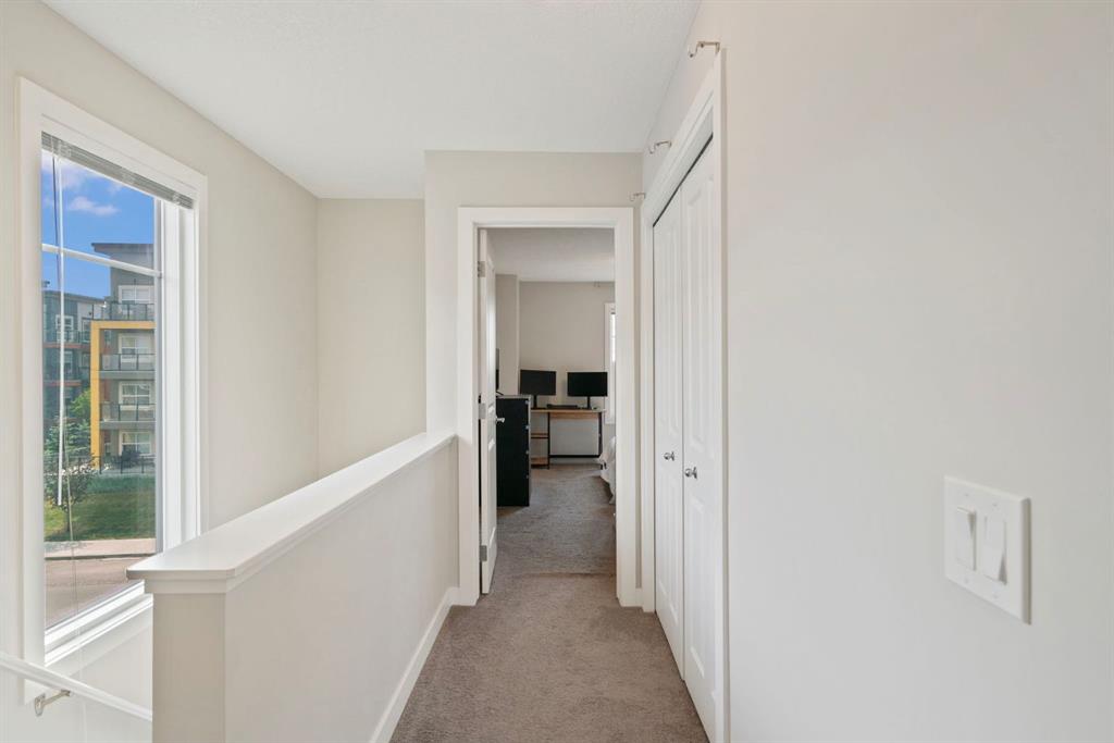 Welcome to this bright and stylish 2-bedroom, 2.5-bathroom townhome in the vibrant community of Seton. Offering approximately 1,300 sq ft of modern living space, this beautifully maintained home features an open-concept main floor that is perfect for both daily living and entertaining. The kitchen impresses with sleek dark cabinetry, stainless steel appliances, and a large island with seating. The spacious living and dining areas are flooded with natural light from oversized windows and open onto a private balcony—ideal for your morning coffee or summer BBQs. Upstairs, you’ll find two generously sized bedrooms, each with its own ensuite, providing the perfect setup for roommates, guests, or a home office. Upper floor laundry completes the upstairs level. The main floor also includes a convenient powder room, and the home offers the added benefit of an attached garage for secure parking and extra storage. Located just steps from South Health Campus, the YMCA, shopping, restaurants, and with easy access to major roadways, this home offers unbeatable convenience in one of Calgary’s fastest-growing neighbourhoods. Move in and enjoy everything Seton has to offer!