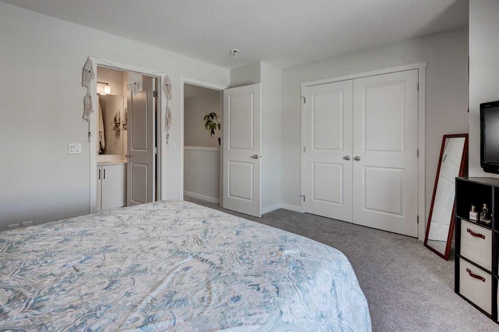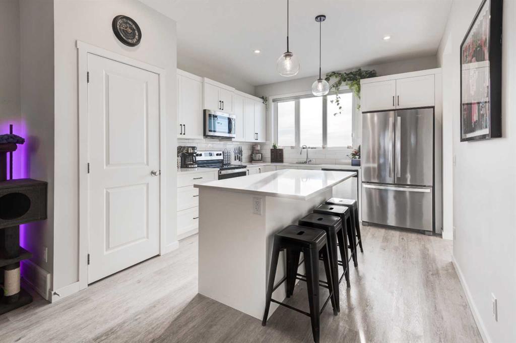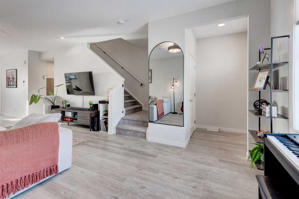 HOME SWEET HOME! Welcome to this beautifully designed CUSTOM-BUILT 2022 SEMI-DETACHED HOME offering modern style, thoughtful finishes, and exceptional community living in one of Southeast Calgary’s most exciting and newer neighbourhoods, Rangeview! This 3 bedroom, 2.5 bathroom home with _____ spectacular SQFT showcases a bright open-concept main floor ideal for both everyday living and entertaining. 9 foot ceilings, stylish designer lighting, and warm wood-tone laminate flooring create a welcoming and contemporary atmosphere, expansive windows flood the living and dining areas with natural light, enhancing the spacious feel throughout. The gourmet chef’s kitchen is both elegant and functional, featuring crisp white cabinetry, quartz countertops, spacious, central quartz island with a breakfast bar and newer, premium stainless steel appliances A convenient 2 piece powder room completes the main level. Upstairs, plush carpeting adds comfort to the private living spaces. The generous primary bedroom easily accommodates a king-sized bed and offers a large closet, a 4-piece spa-like ensuite bathroom, and north-facing windows with city views. Two additional great-sized bedrooms, a full 4-piece bathroom, and a dedicated upper-floor laundry room provide excellent functionality for families or professionals alike. The home is finished in a neutral, modern colour palette, ready for your personal style and décor. The unfinished basement offers you an amazing space to showcase your vision for future development with a roughed-in bathroom. Enjoy added privacy with no rear neighbours, creating a peaceful backyard retreat ideal for relaxing or entertaining. There is also a parking pad that can accommodate at least 2 vehicles. Located in Rangeview, a thoughtfully designed and sustainable community steps from community gardens abundant walking paths, scenic wetlands, beautifully planned parks and green spaces, minutes from the South Health Campus, the largest YMCA in the world, and the vibrant Urban Village offering shopping and dining options. Rangeview offers a lifestyle that blends modern convenience with outdoor living and true neighbourhood charm. Don’t miss out on this GEM, book your private viewing today!