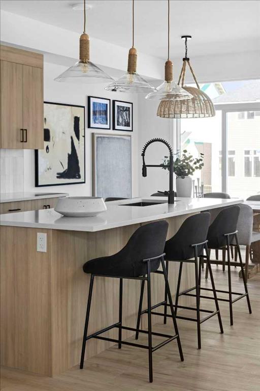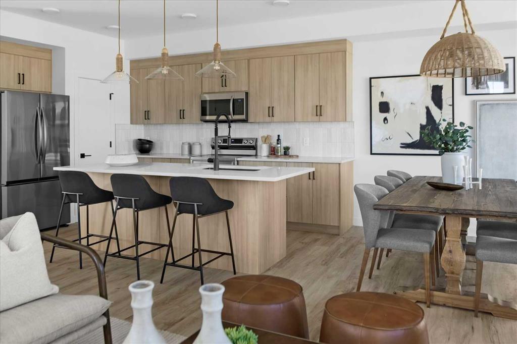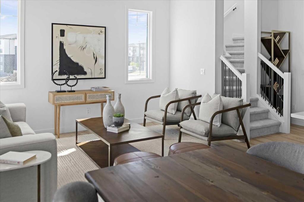 ** Open House at Greystone Show Home – 498 River Ave, Cochrane – April 10th 2 to 5 pm, April 11th 11 to 5 pm, and April 12th 1 to 4 pm ** This beautifully crafted Landon model by Rohit Homes offers a modern, functional layout in the vibrant, rapidly growing community of Greystone, Cochrane. Designed for families or first-time buyers, this brand-new duplex features a bright, open-concept main floor with 9′ ceilings and a seamless connection between the kitchen, dining, and living areas. The contemporary kitchen serves as a focal point, complete with quartz countertops, a central island, and modern cabinetry.