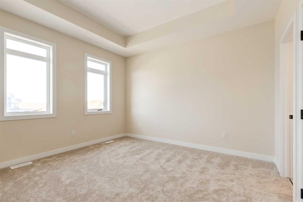 Experience the beauty of this custom-crafted Exquisite Home, set in the peaceful surroundings of Crossfield. This stunning pre-construction laned home offers 1,443 square feet of thoughtfully designed space across two stories, with soaring 9FT CEILINGS on every level to amplify its open feel. Ideal for enjoying the outdoors, the home features a charming front porch and a spacious backyard deck, perfect for hosting family gatherings on warm summer days. Inside, the main floor’s open-concept design harmonizes style with practicality. The modern kitchen is fully equipped with a breakfast bar, elegant quartz countertops, stainless steel appliances, and textured cabinets. Sunlight fills the bright great room, which is highlighted by a contemporary linear electric fireplace for a cozy ambiance. High-quality vinyl plank (LVP) flooring, sophisticated maple accents, and bold black exterior dual-pane windows add refined touches throughout the home. Completing the main floor is a conveniently located 2-piece powder room, designed for easy access and practicality. Upstairs, the inviting master suite provides a tranquil retreat with a luxurious 4-piece ensuite and a spacious walk-in closet. Two additional bedrooms offer ample space for family or guests, with another full bathroom and a practical laundry room with a sink enhancing daily convenience. Outside, a double detached garage, fully landscaped private backyard, and roughed-in basement with a separate side entrance allow for future customization and expansion. Bespoke finishing options are available, so you can personalize this home to suit your taste. Located in Crossfield’s welcoming Iron Landing community, this home is close to parks, playgrounds, shopping, and dining, as well as top-rated schools like Crossfield Elementary and W.G. Murdoch School, both just a short walk away. This peaceful neighborhood provides the best of small-town living while being under 10 minutes from Airdrie, 25 minutes from Calgary, and minutes from Highway 2 for easy commuting. Set for completion in March 2025, this Exquisite Home combines luxury, functionality, and affordability. Please note that photos are from a previous project, with our latest show home currently under construction. Don’t wait—reach out to make this incredible property yours today!